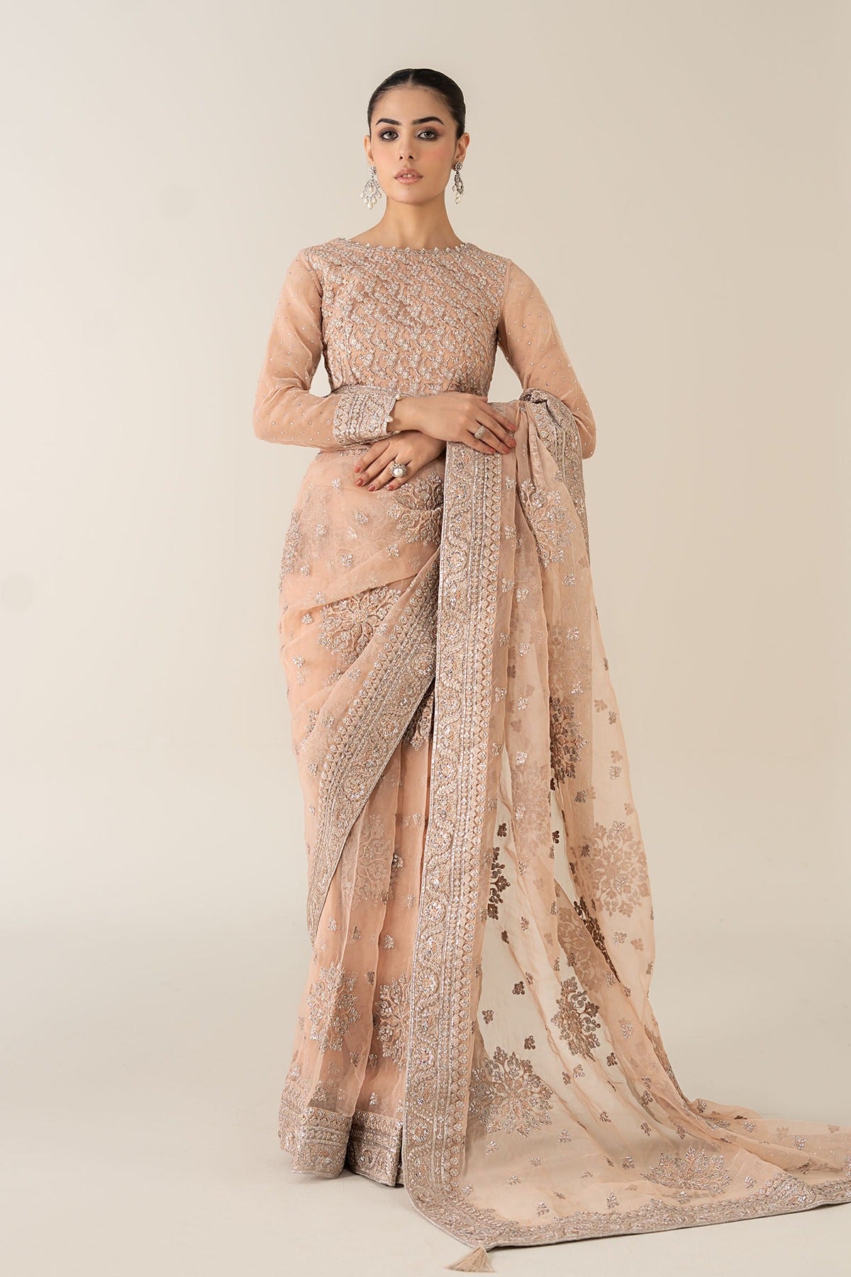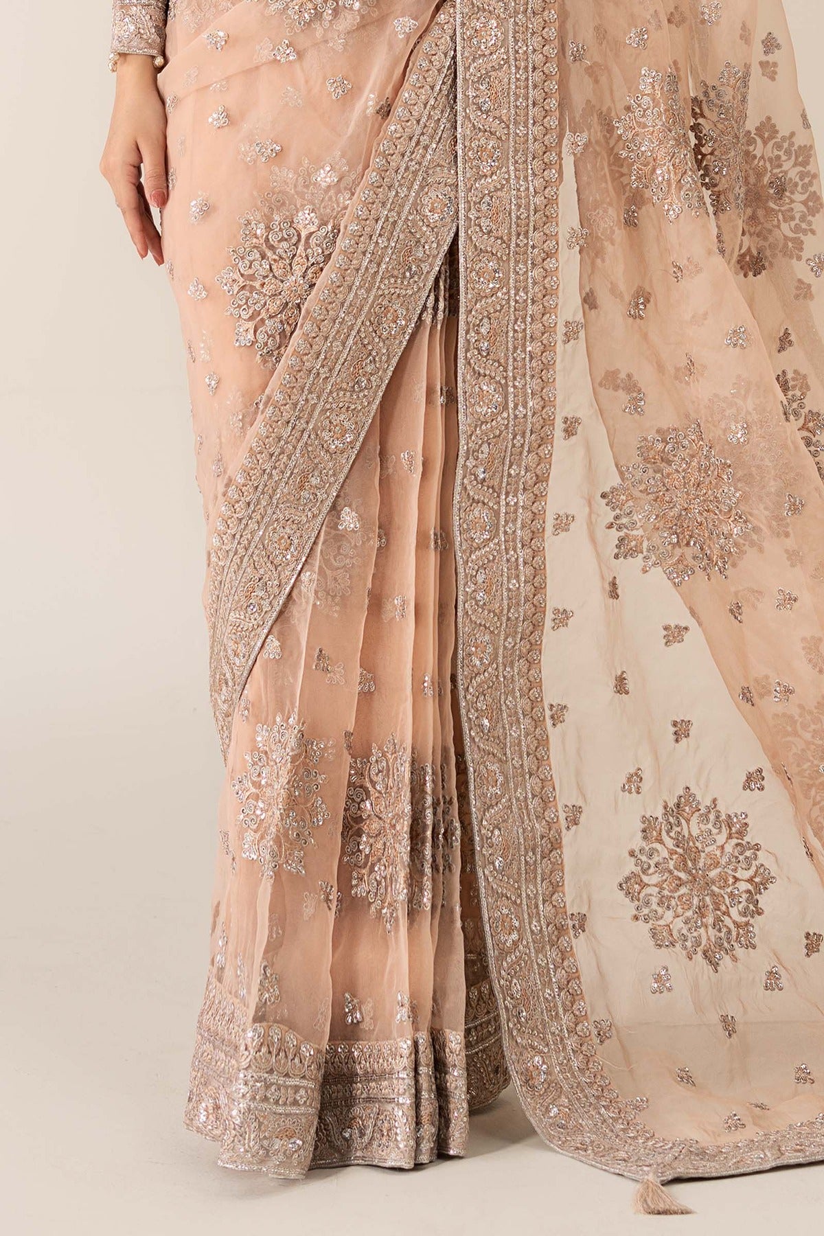 MARIA B | LUXURY FORMALS | EMBROIDERED ORGANZA SAREE | SF-PF25-14-PEACH