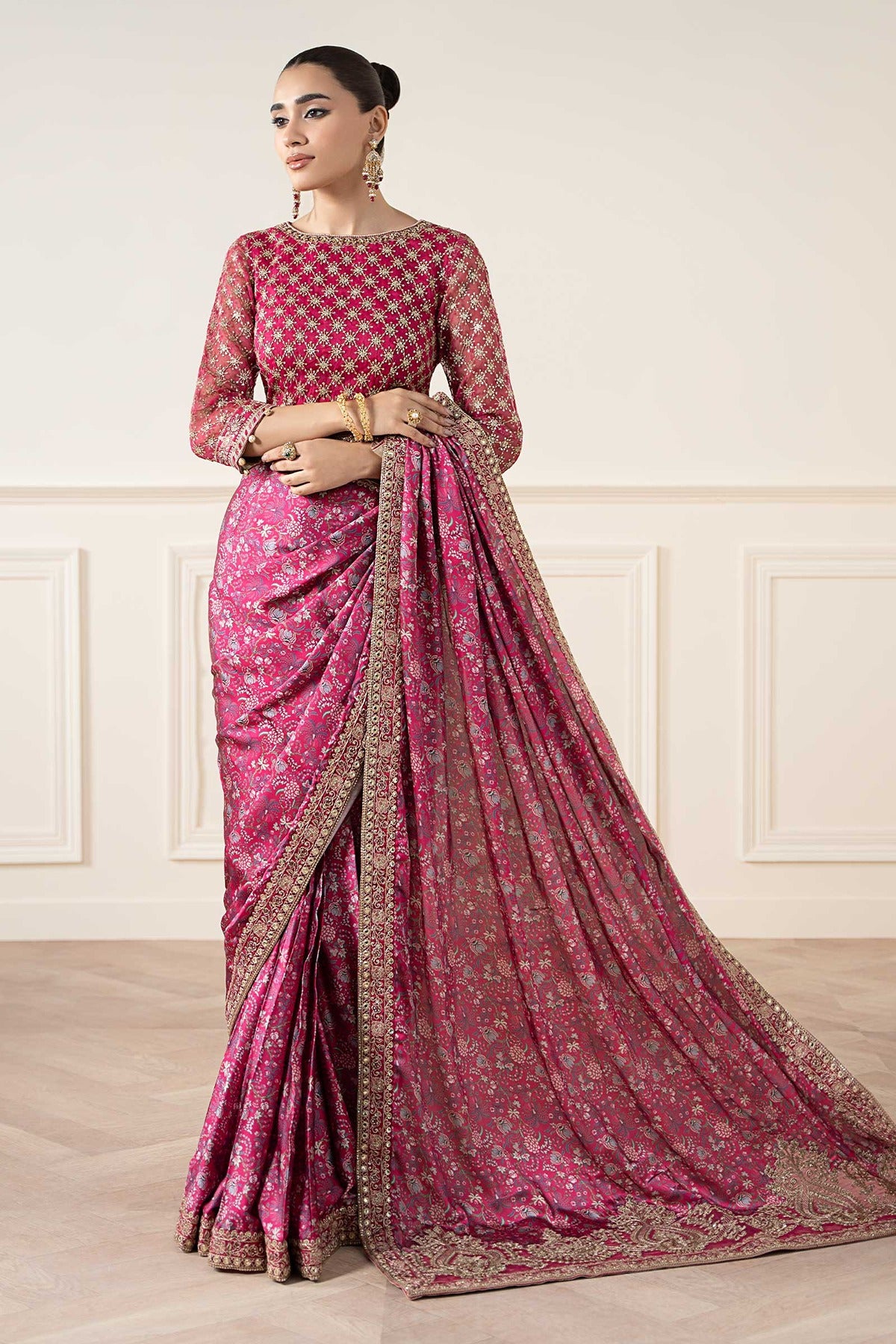 MARIA B | LUXURY FORMALS | EMBROIDERED SILK SAREE | SF-EA25-12-PINK