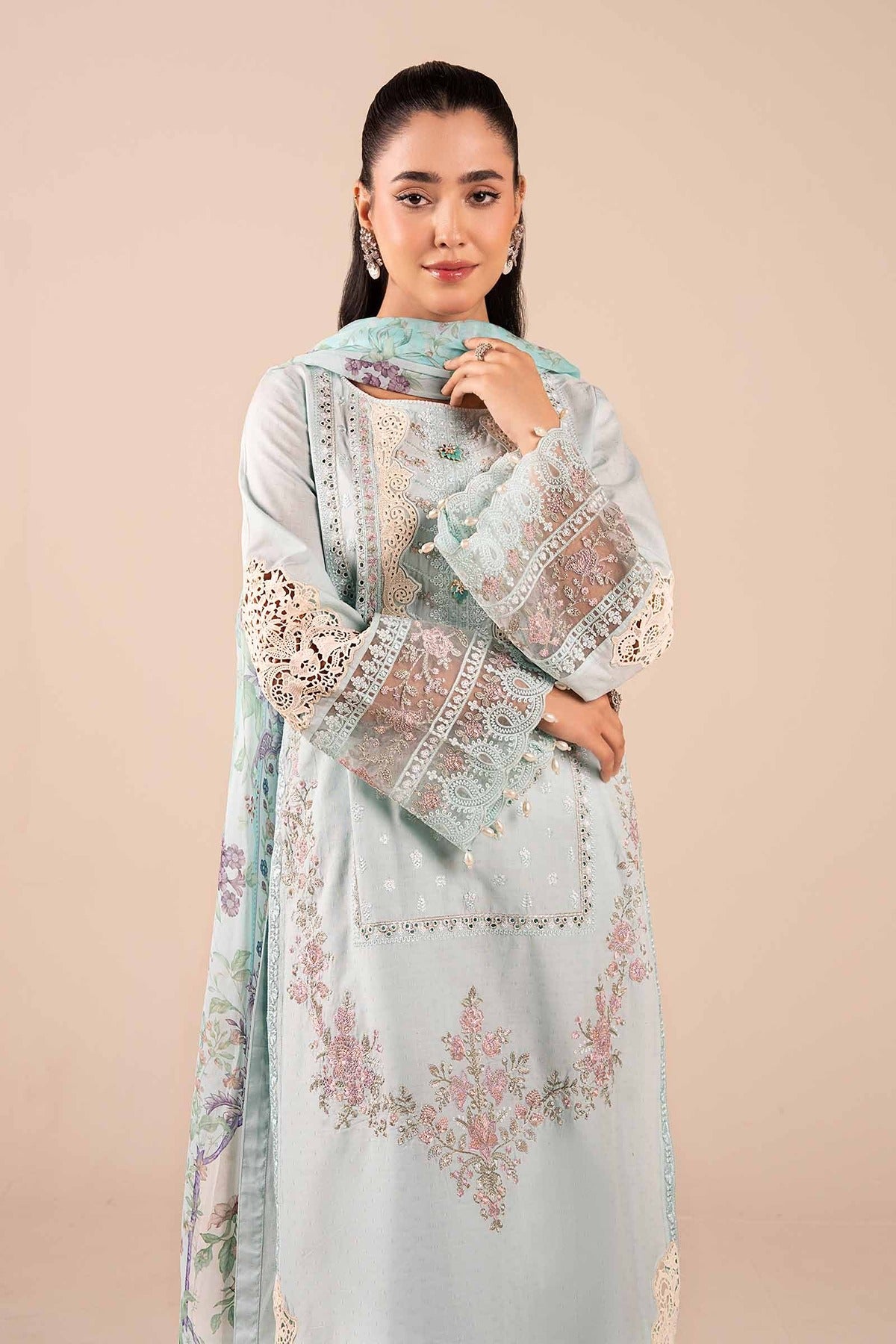 MARIA B | LUXURY PRET | 3 PIECE EMBROIDERED DOBBY SUIT | DW-EA25-52-SKY BLUE