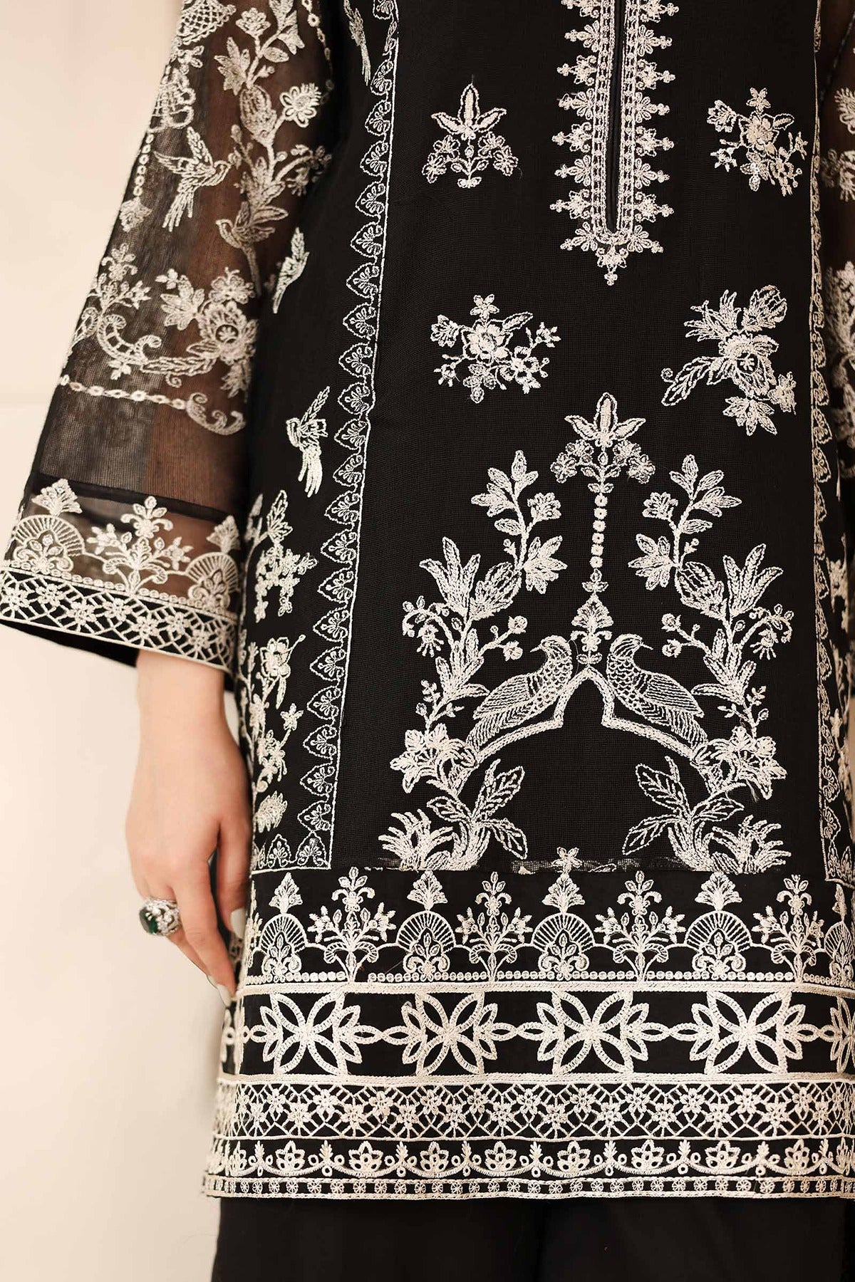 Embroidered Sleeves With Organza Embroidered Border