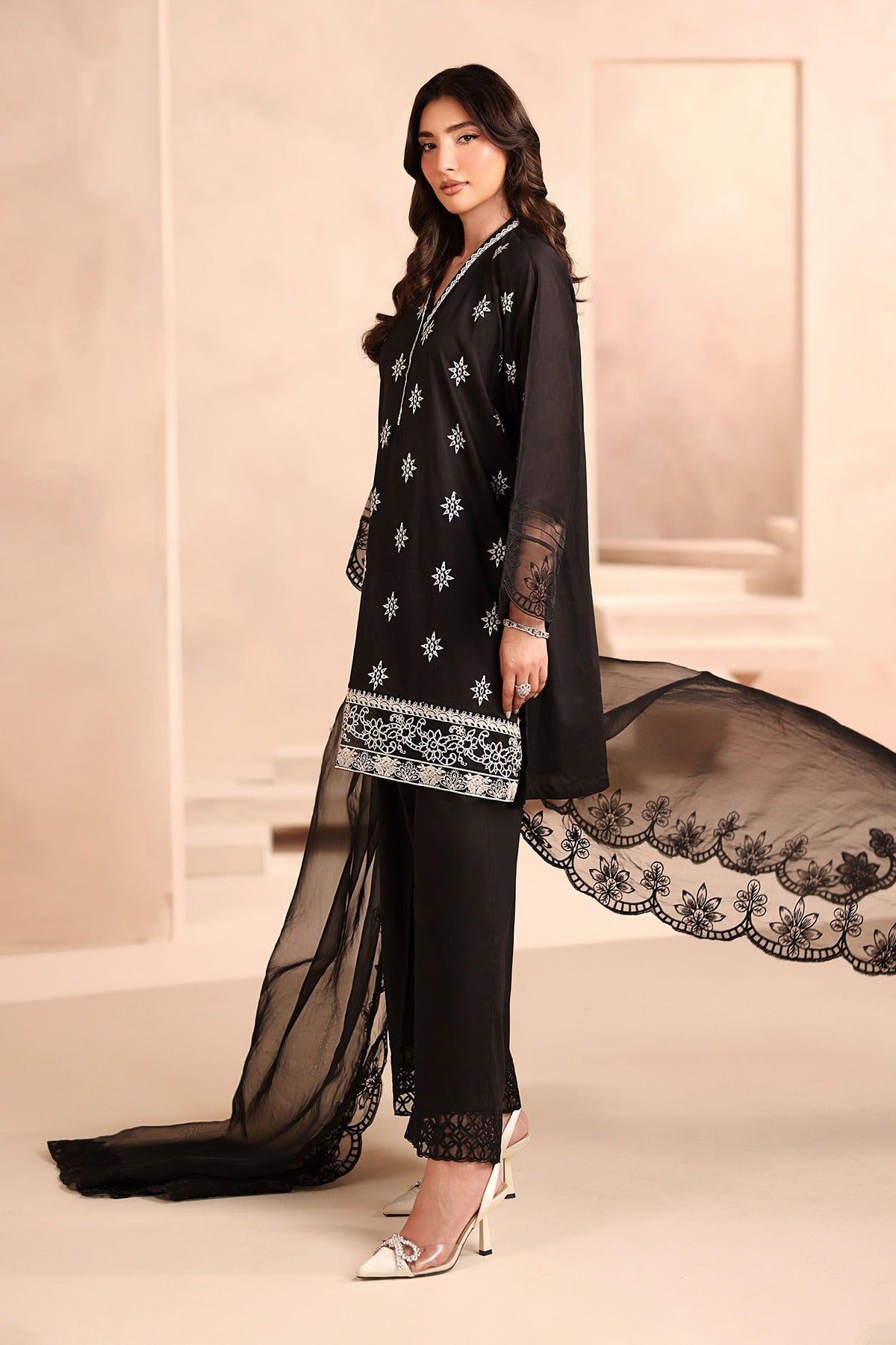 MARIA B | MONOCHROME | 3 PIECE EMBROIDERED LAWN SUIT | DW-MN25-01-BLACK