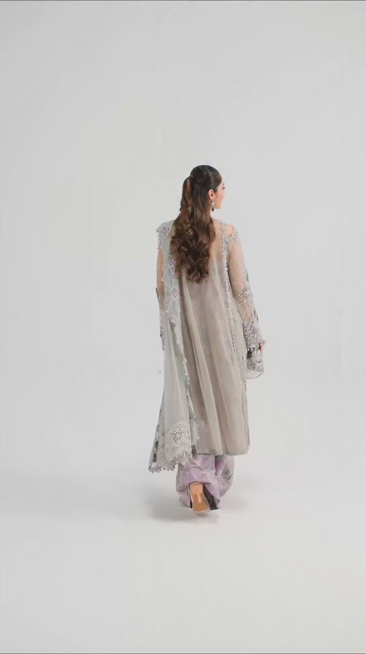 MARIA B | SOIREE | EMBROIDERED NET SUIT | WF-09-07-GREY