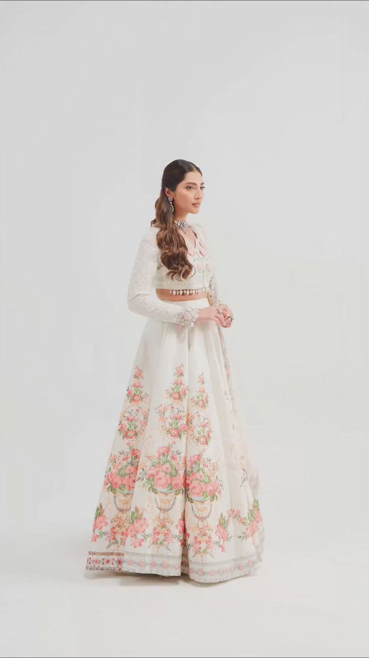 Embroidered Raw Silk Bodice Front With 3D Flowers