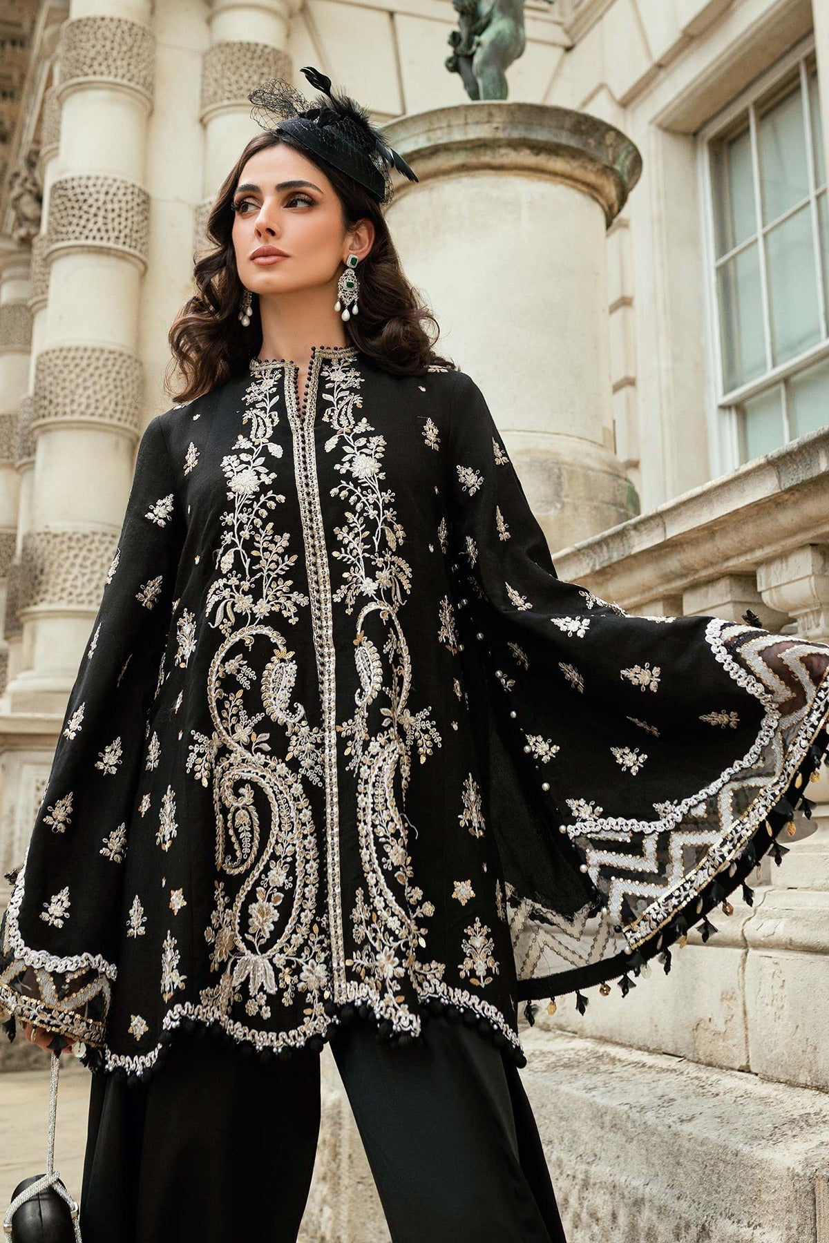MARIA B | SOIREE | EMBROIDERED RAW SILK SUIT | WF-09-03-BLACK | SHORT SHIRT