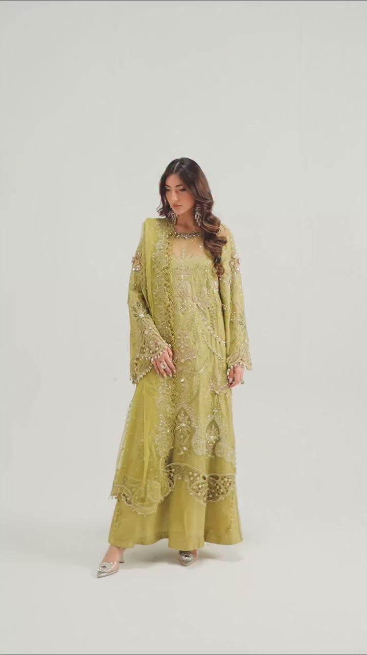 MARIA B | SOIREE | EMBROIDERED RAW SILK SUIT | WF-09-08-OLIVE GREEN | LONG SHIRT