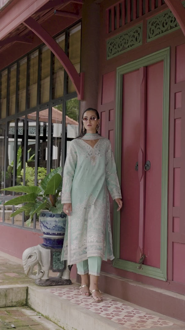 • Embroidered, sequined front & back border (organza)