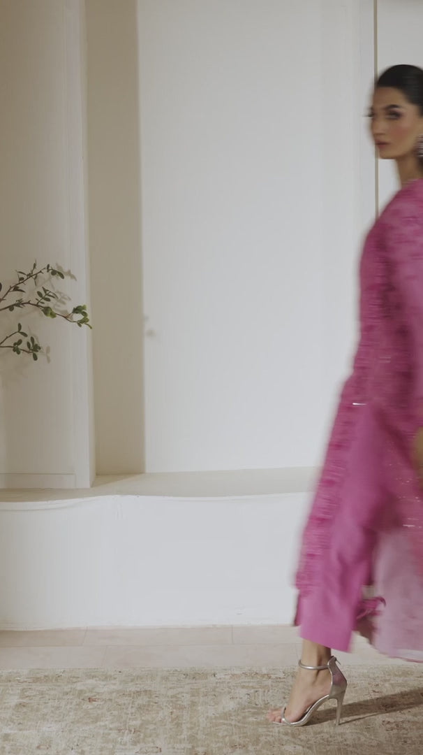 Kaia - Softly spoken, gracefully bold. Draped in a delicate pink hue, Kaia features a loom cotton net shirt adorned with intricate floral embroidery and hand ample pearl embellishments - lined for effortless comfort and elegance.