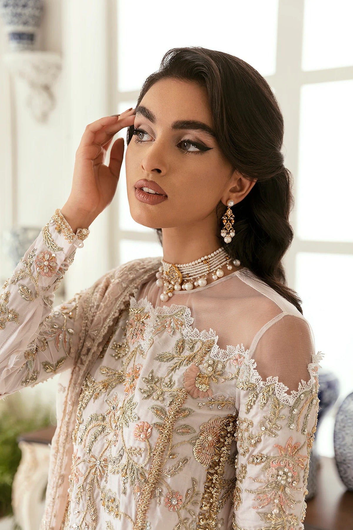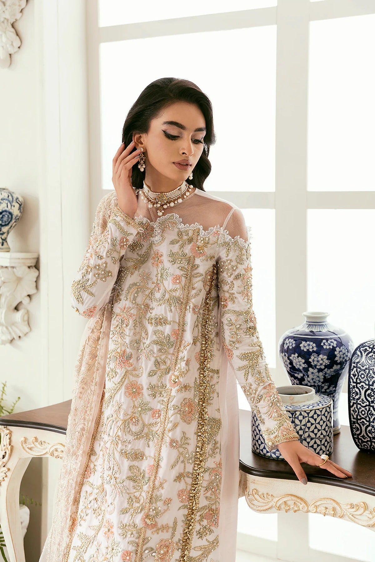 - Paired with the matching net dupatta and pants.