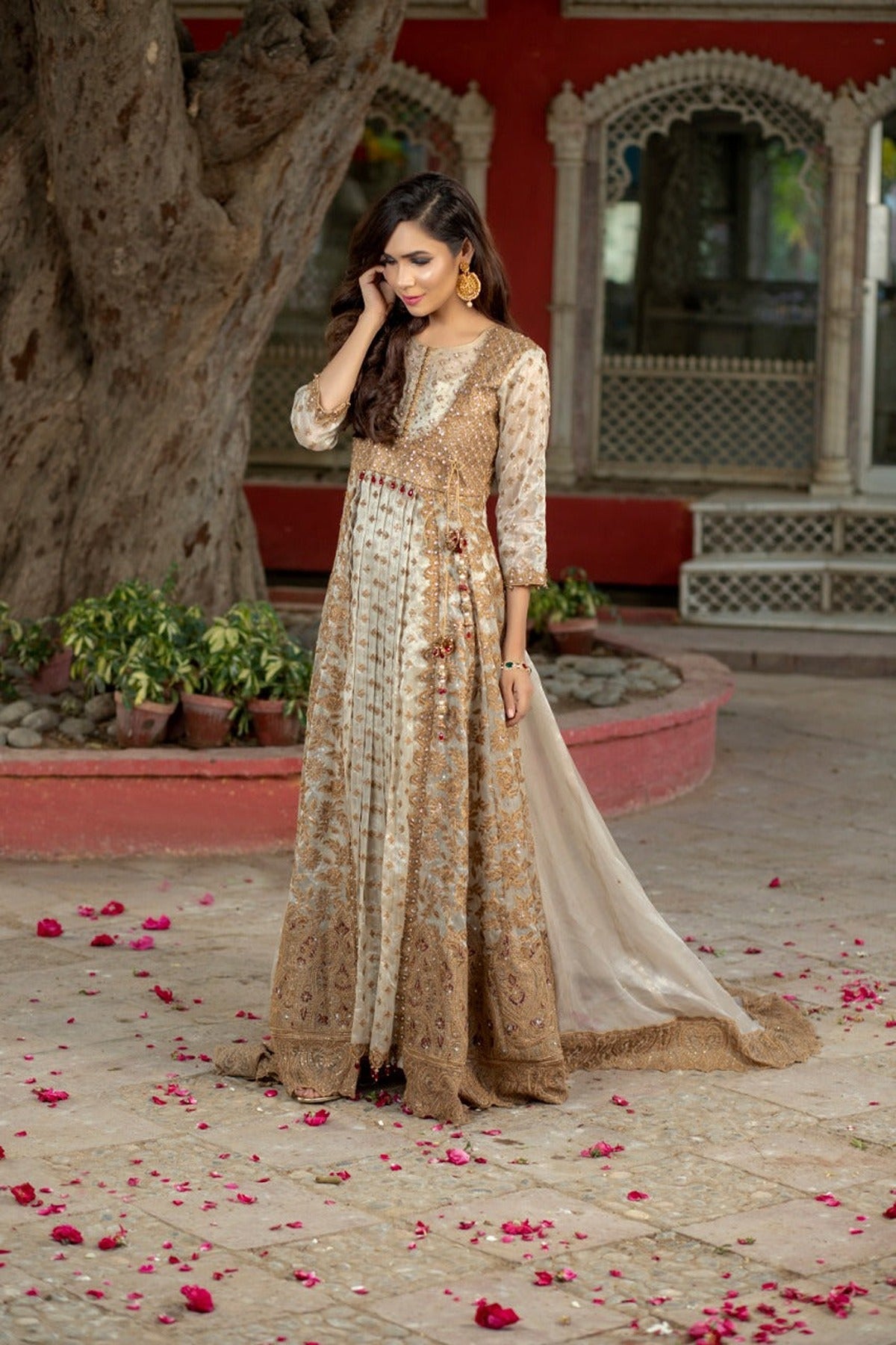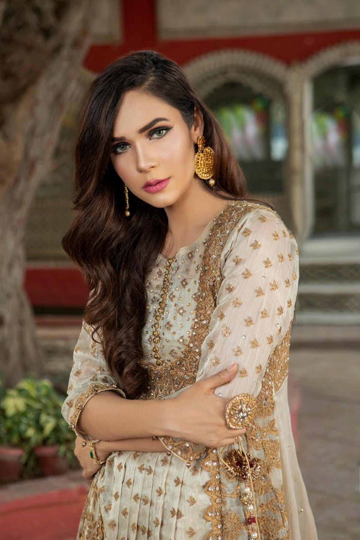 NAKOOSH | BRIDAL | NB-2782 IVORY LONG STITCHED DRESS
