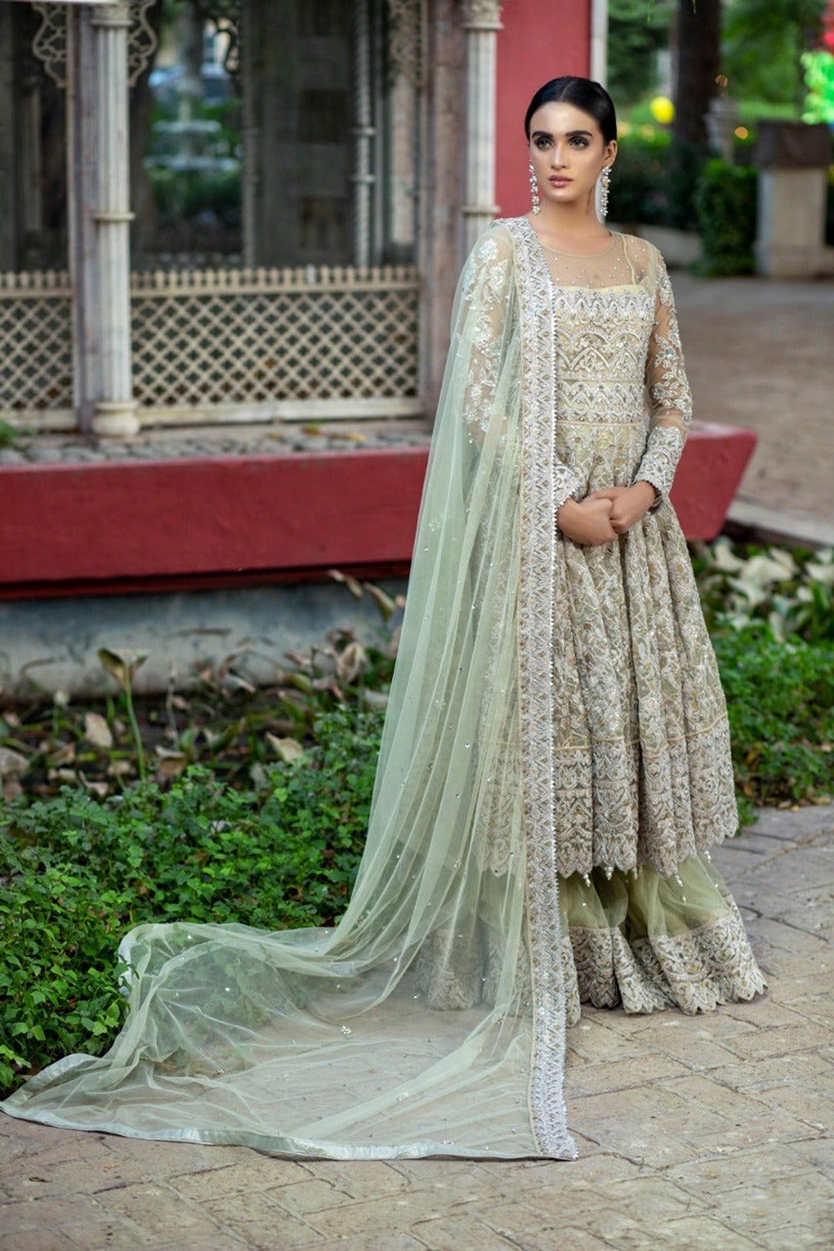 NAKOOSH | BRIDAL | NB-2983 MINT ANARKALI 3PC STITCHED SUIT