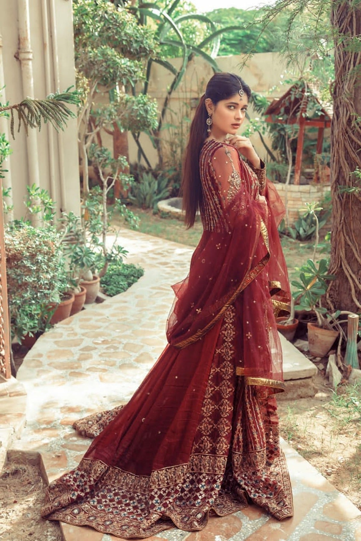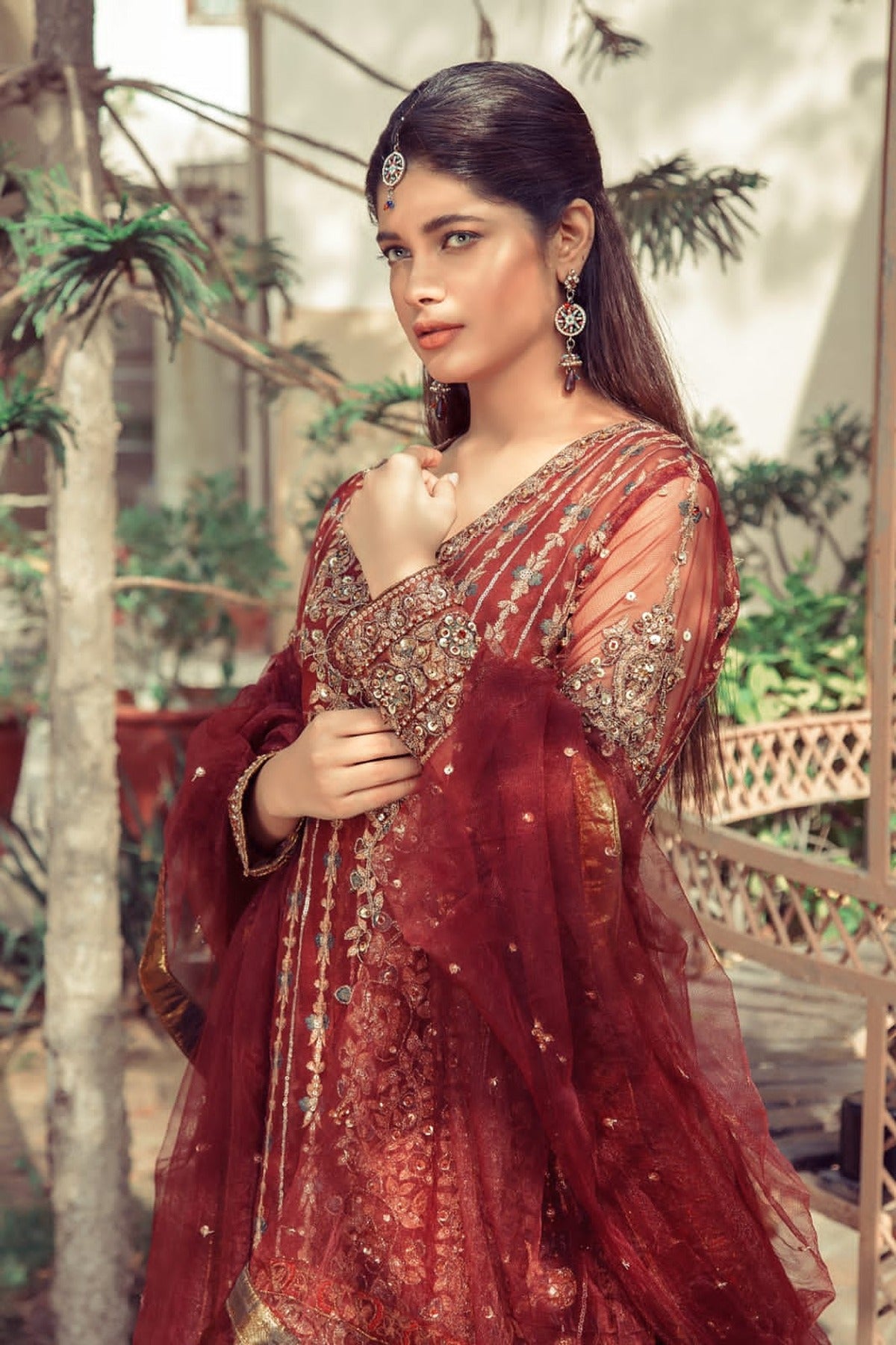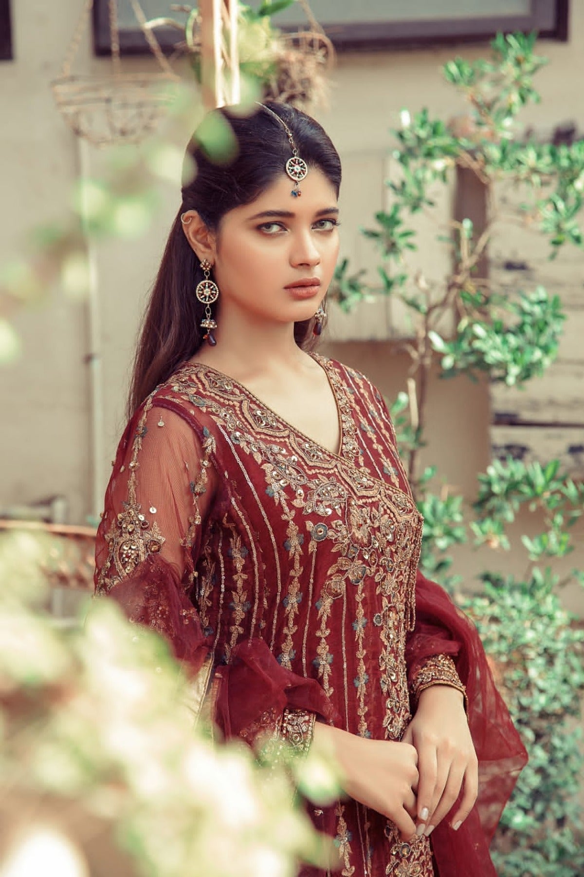 NAKOOSH | BRIDAL | NB-4223 DEEP MAROON STITCHED 3PC DRESS