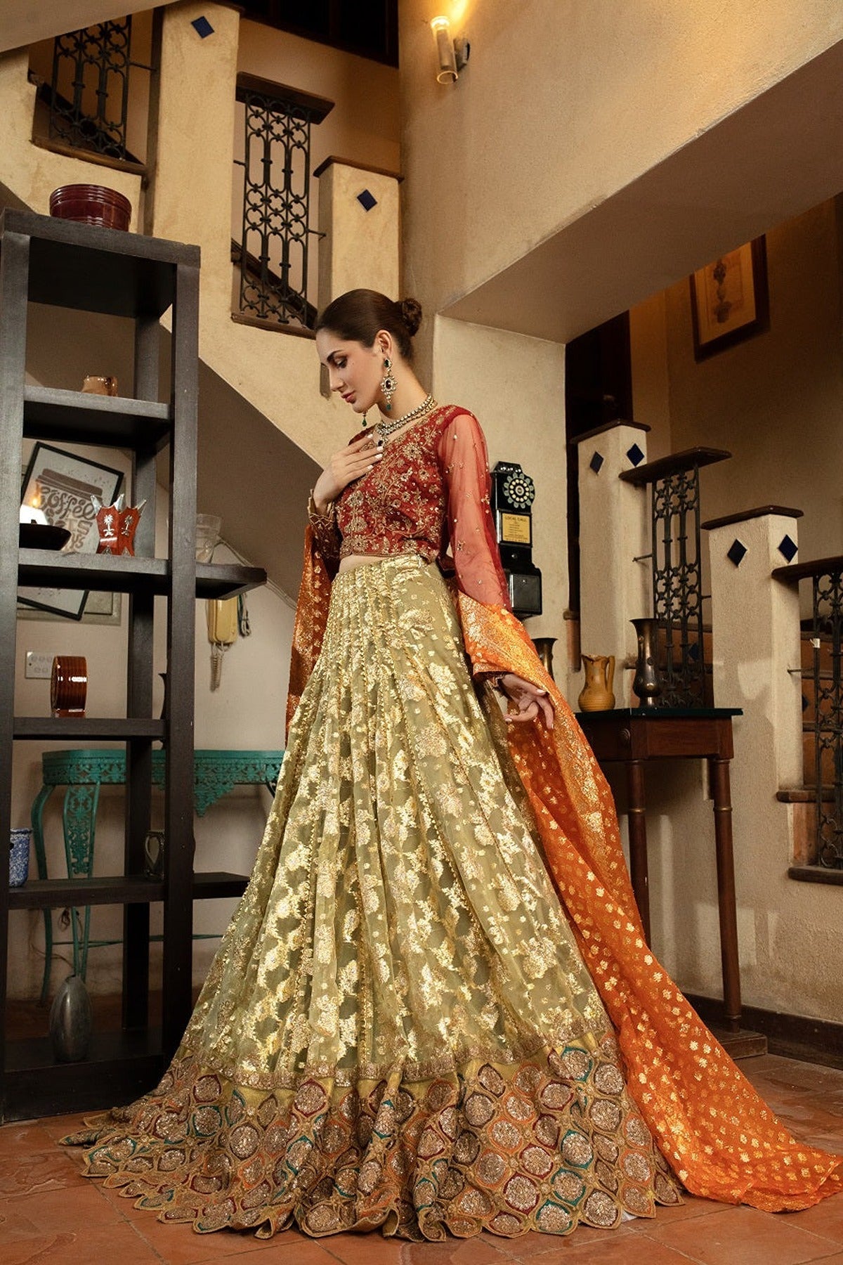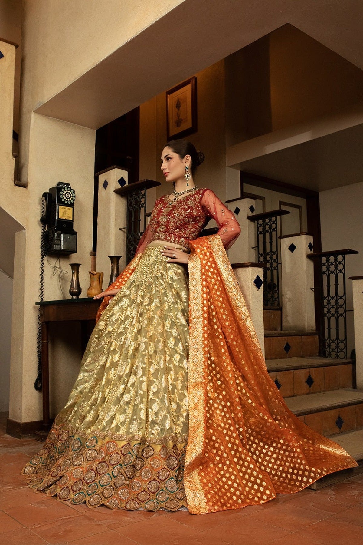 NAKOOSH | BRIDAL | NB-4356 MAROON & PISTA LAHNGA CHOLI STITCHED DRESS