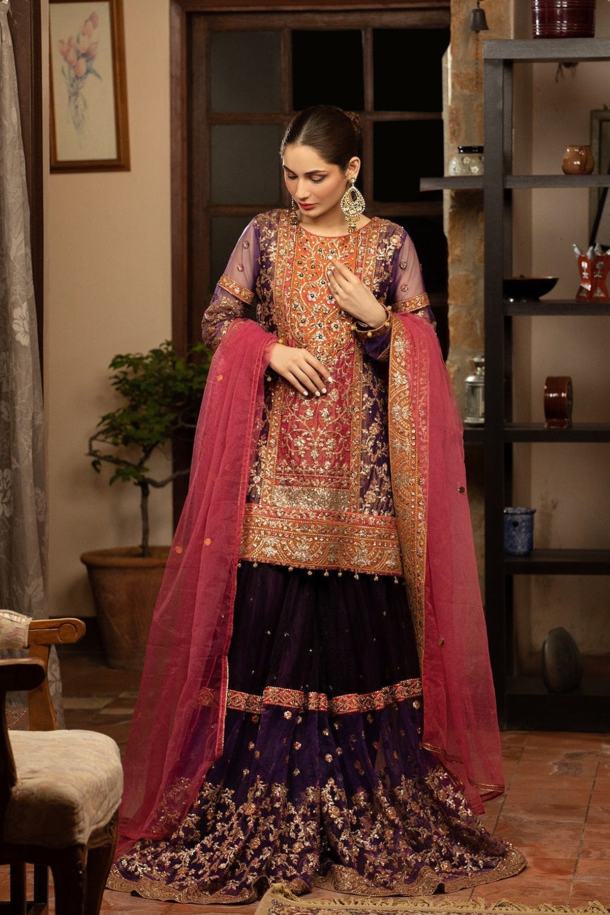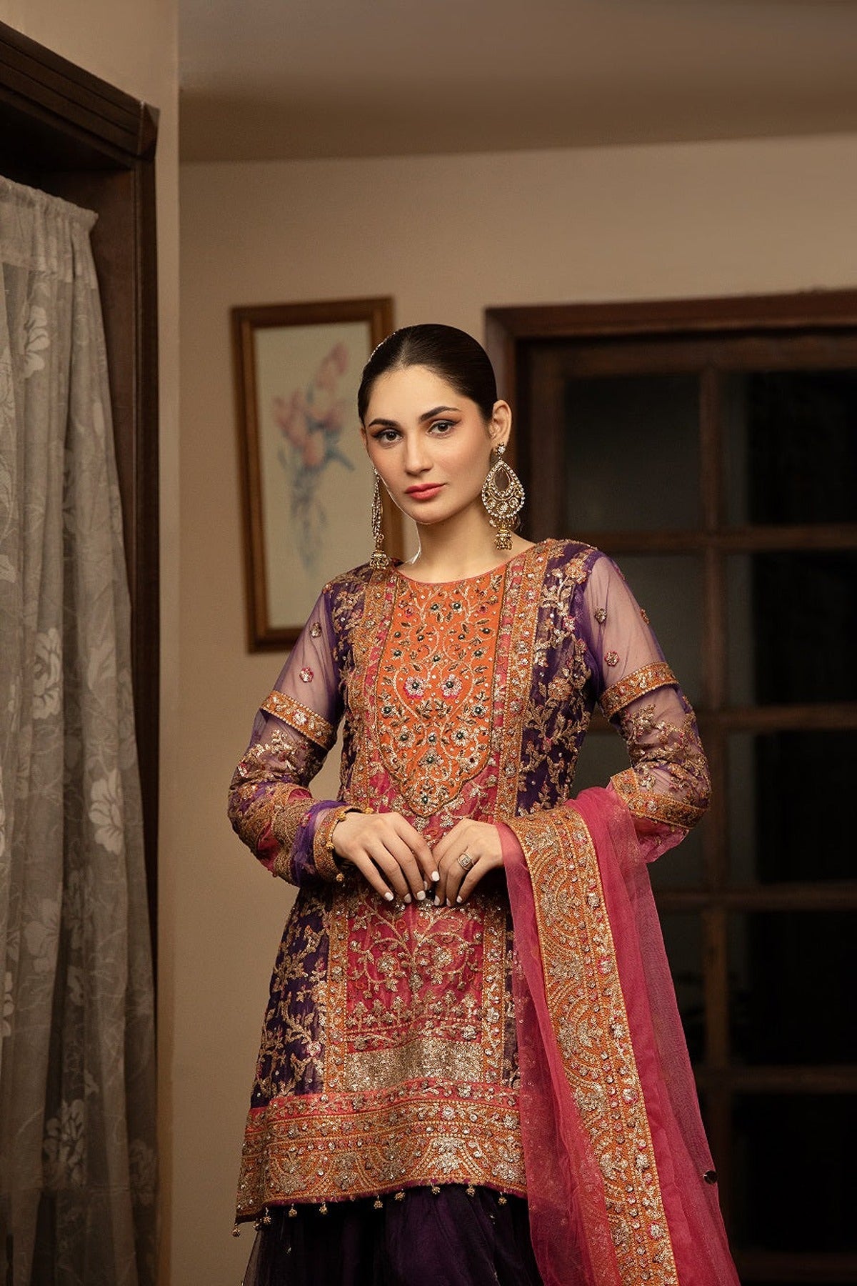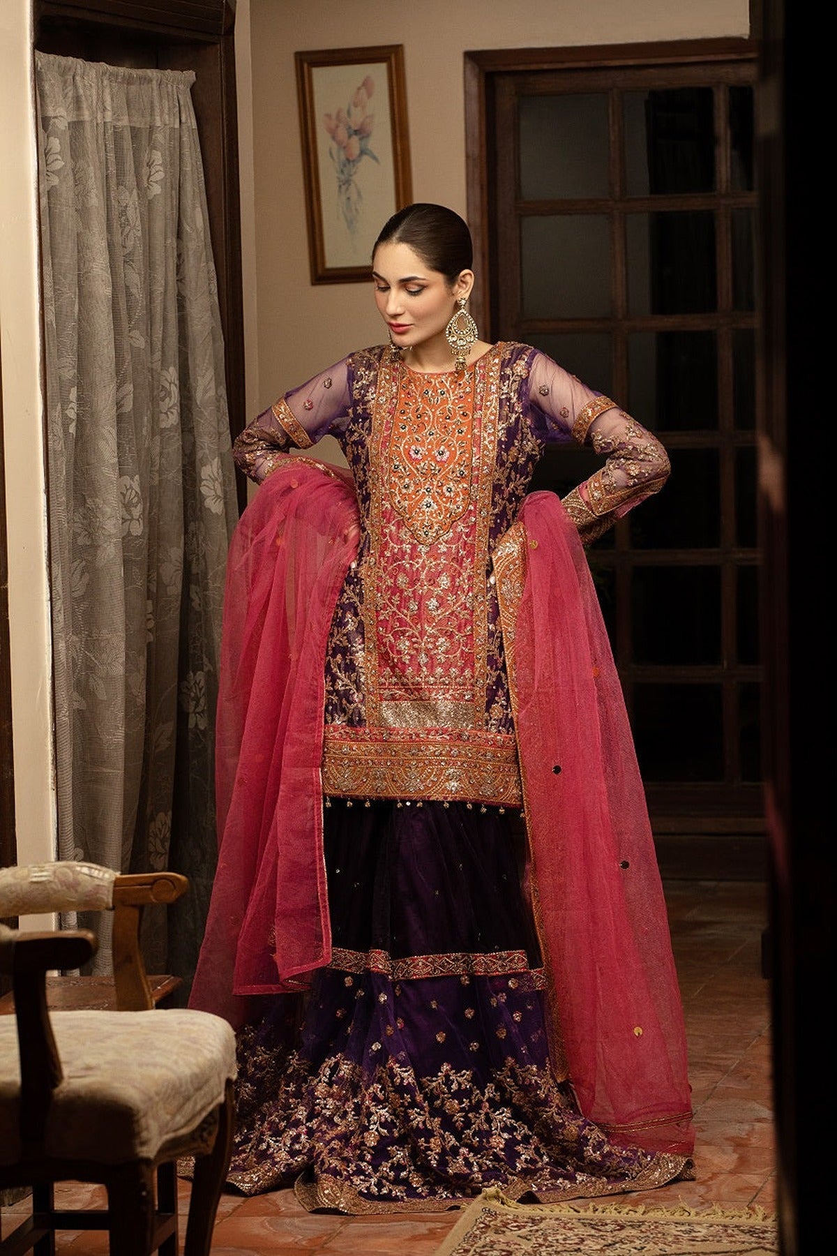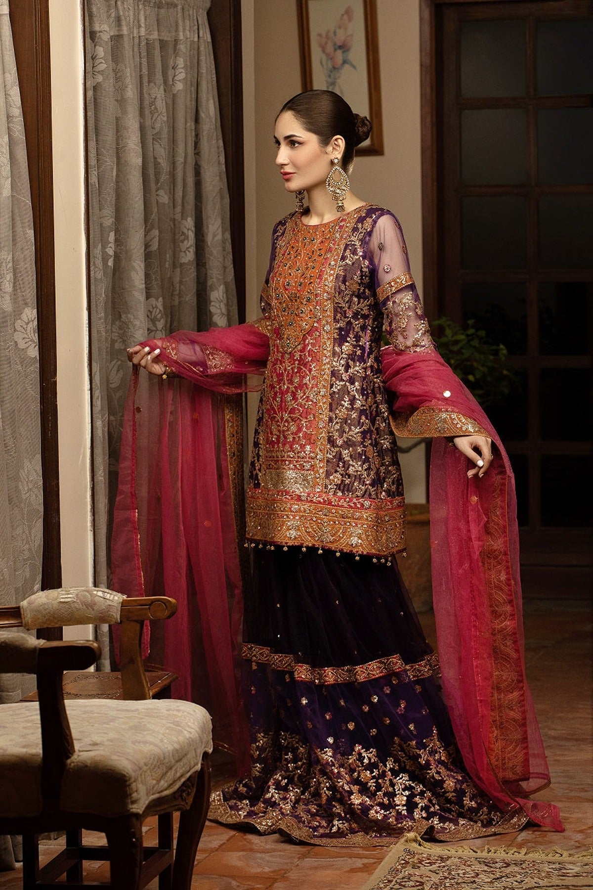 NAKOOSH | BRIDAL | NB-4579 PURPLE PINK GHARARA 3PC STITCHED DRESS