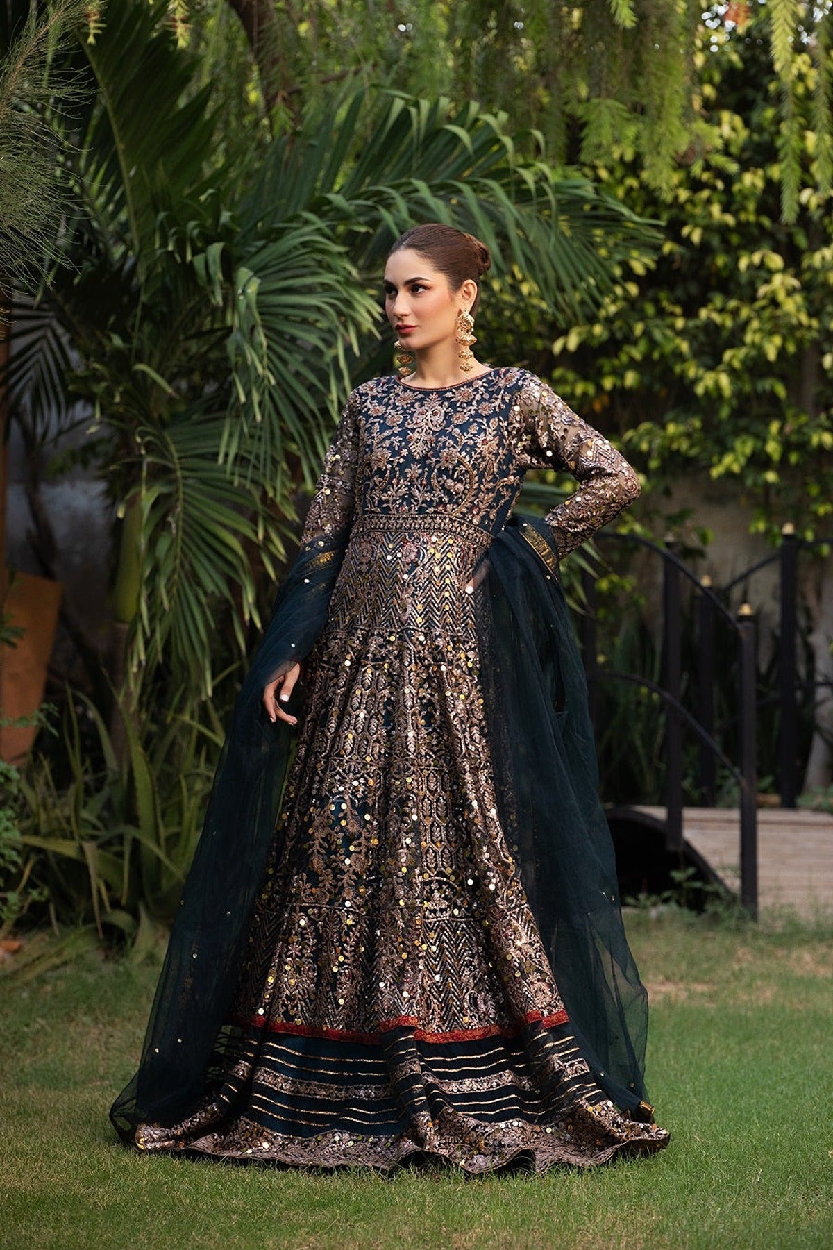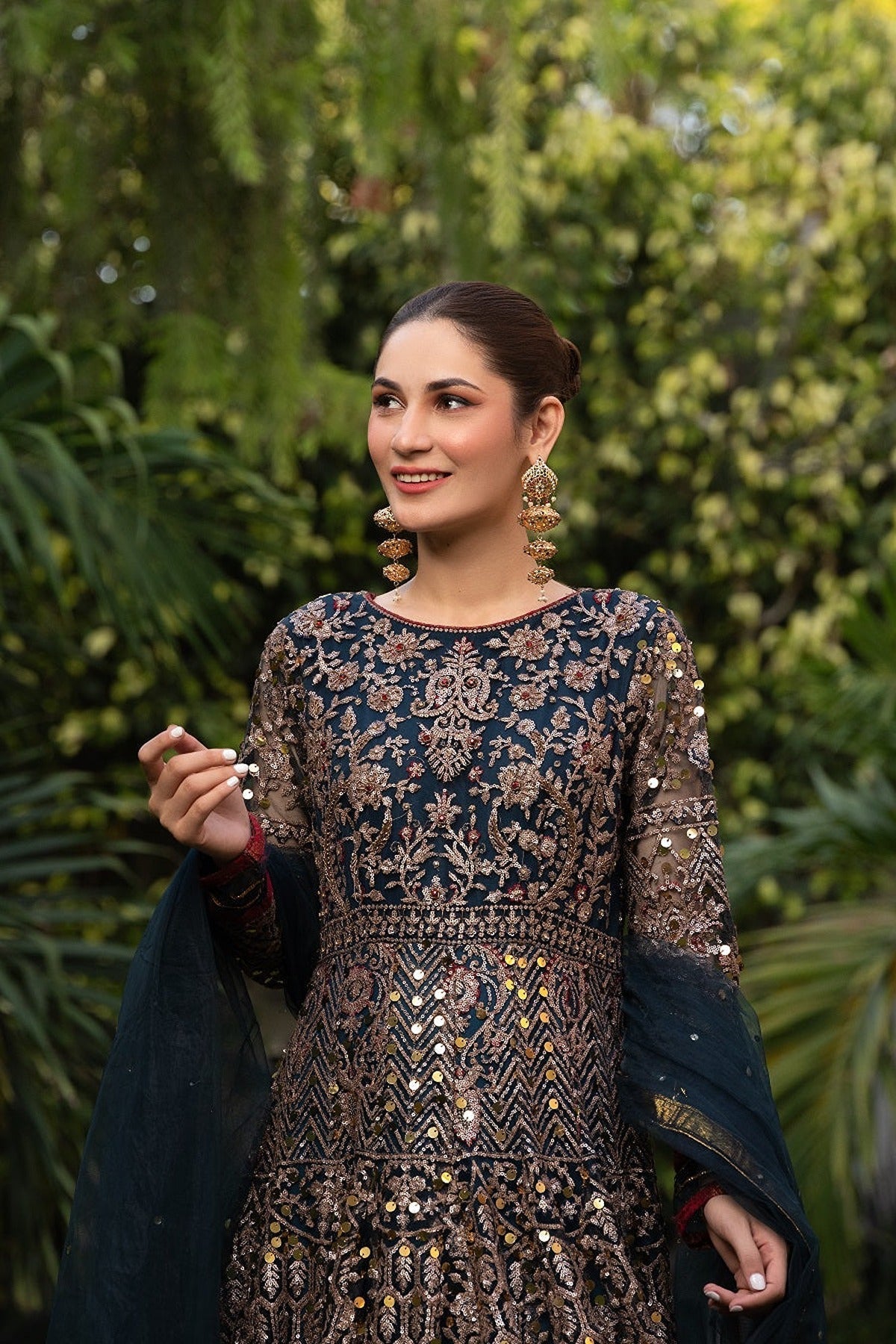 NAKOOSH | BRIDAL | NB-4587 TEAL LONG 3PC STITCHED DRESS