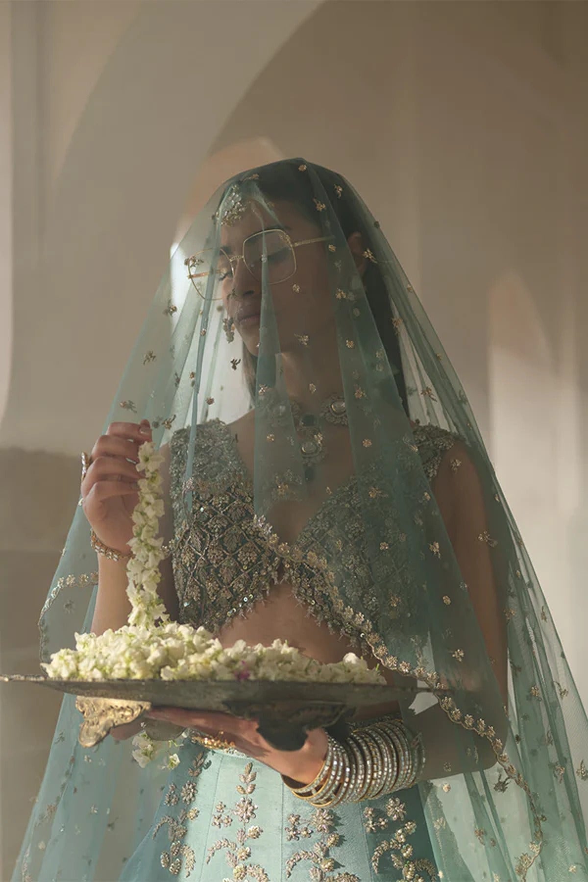 - The silver Guta and gold Tila embellishments add a touch of regal sophistication, while the refined handwork and ethereal silhouette create a striking and graceful look.