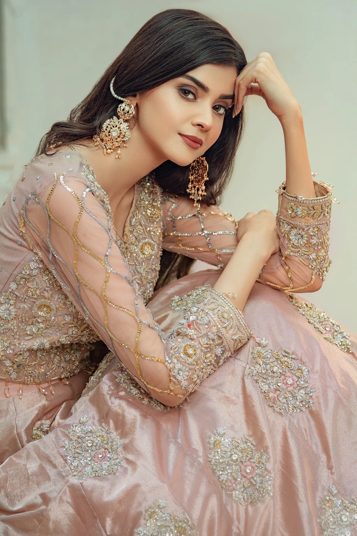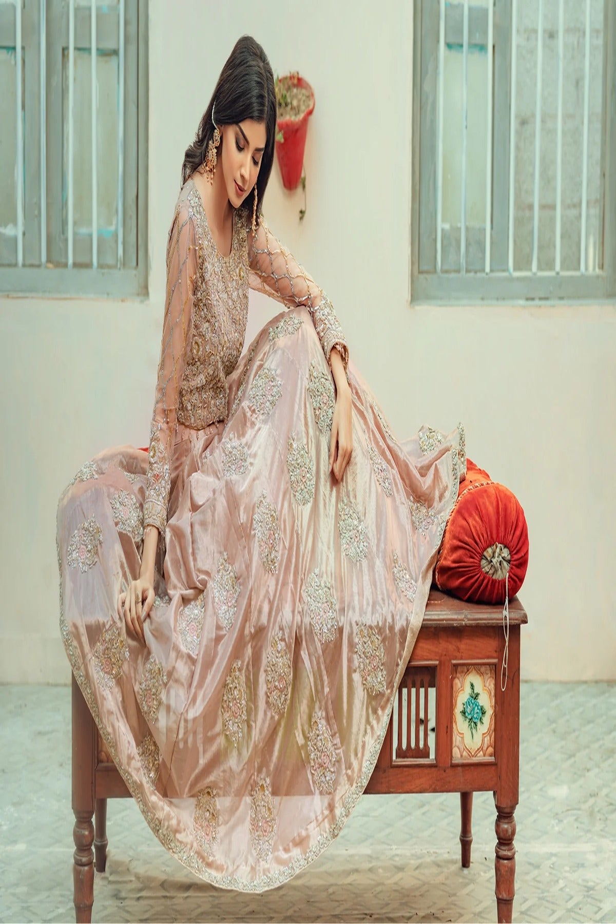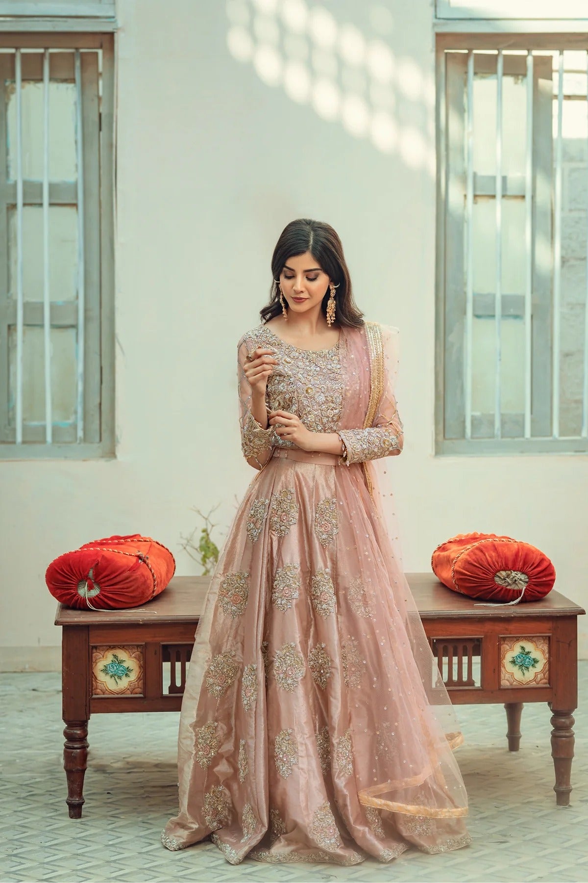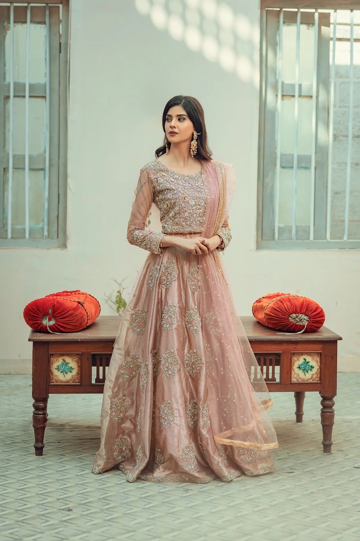 Teapink lengha choli is perfect for upcoming wedding season , traditional embellishement all over blouse and lengha is must to have.