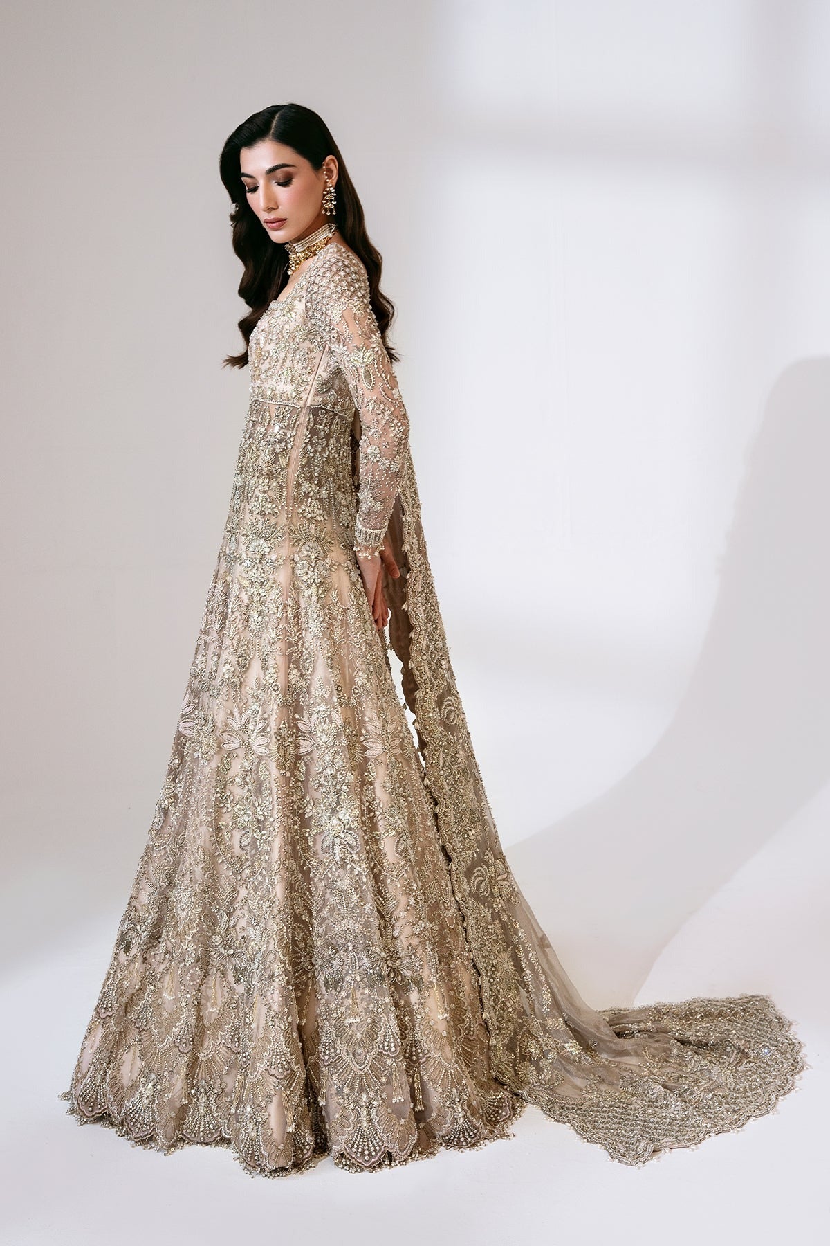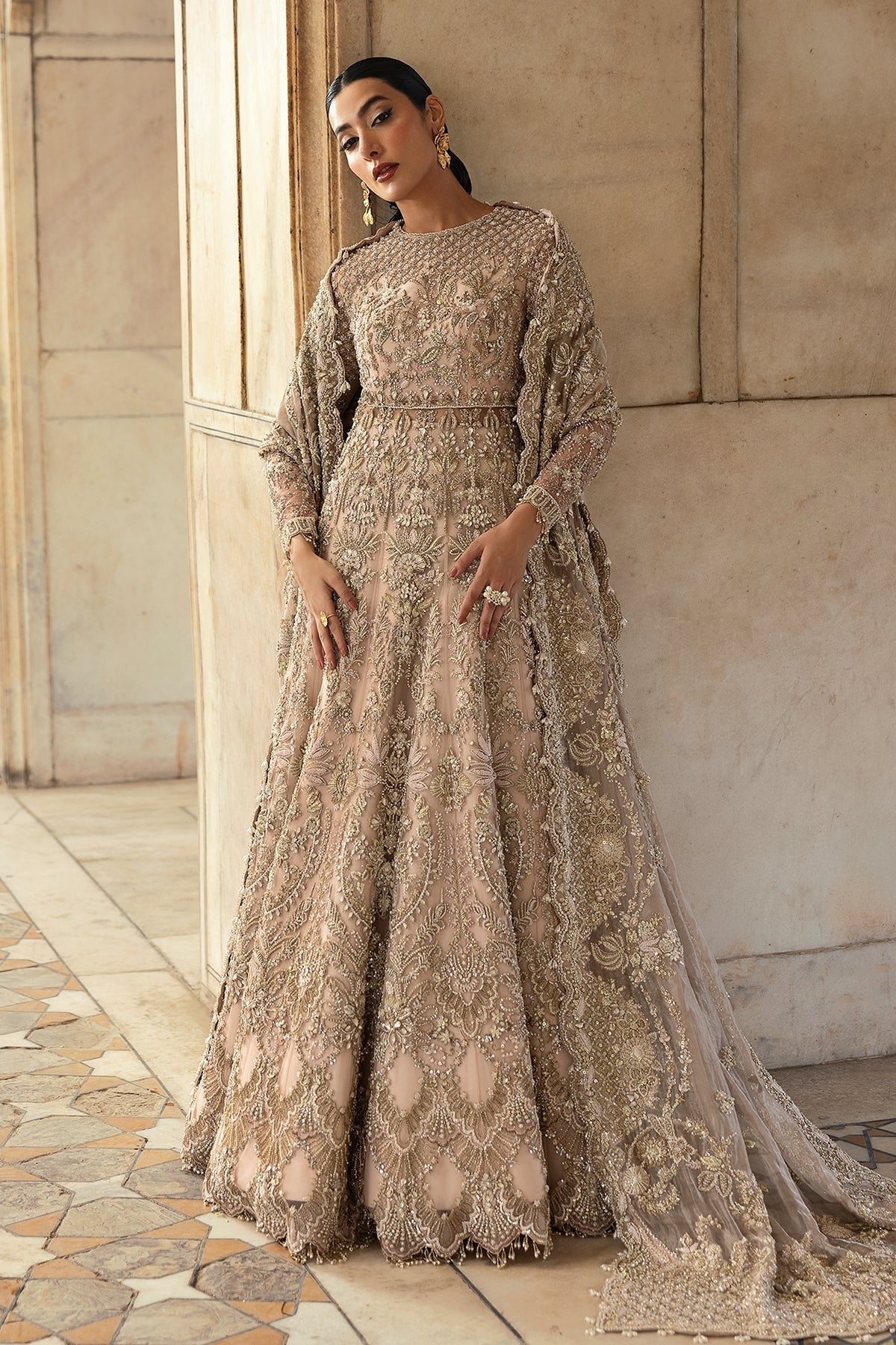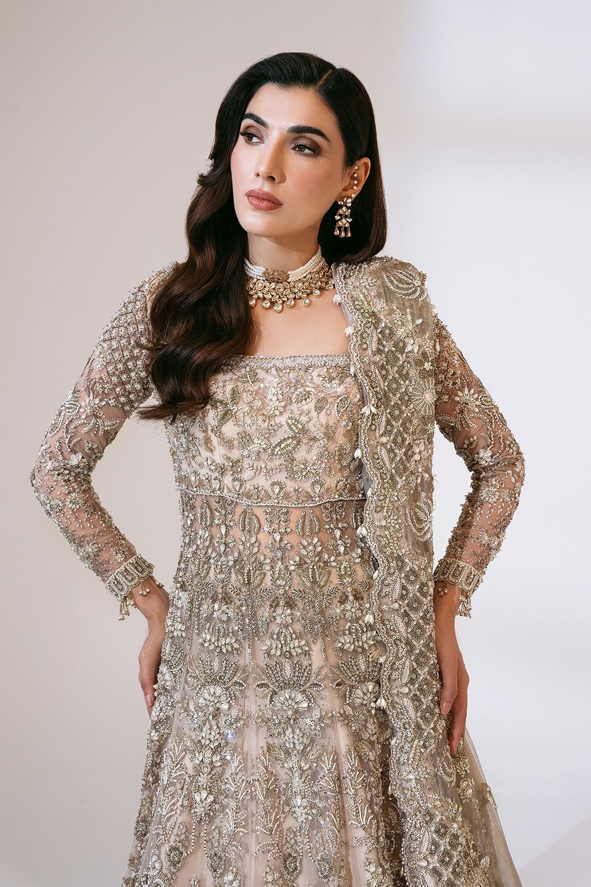 Indulge in timeless elegance with this stunning nude pink pishwas, gracefully paired with a flowing lengha and a richly embroidered tissue dupatta. Crafted with intricate handwork, this ensemble exudes an old-heritage charm, where delicate detailing meets an aura of sophistication. Every inch of this dress tells a story, adorned with meticulously placed embellishments that capture the essence of classic luxury. Perfect for those who appreciate heritage-inspired beauty, this piece is designed to make a lasting impression.