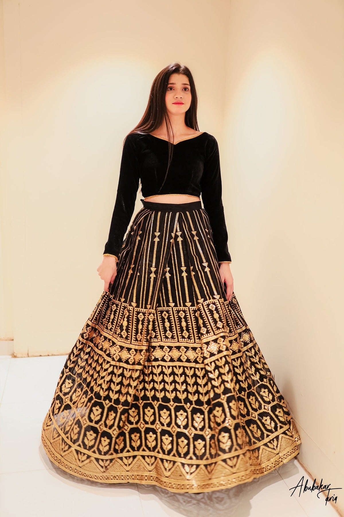 SAAD IBRAHIM | LEHENGA CHOLI | SOLID BLACK EMBELLISHED LEHENGA CHOLI SET