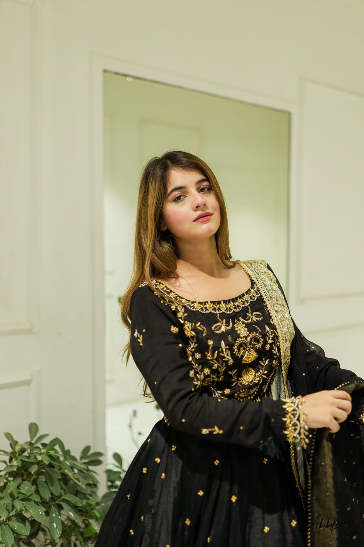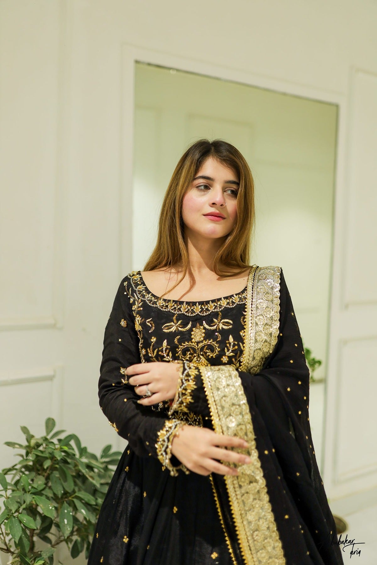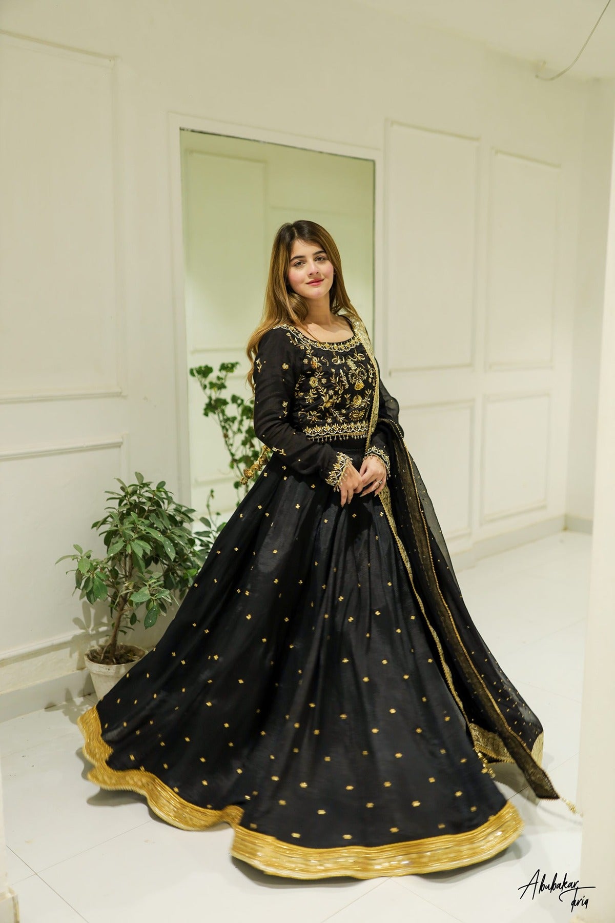SAAD IBRAHIM | LEHENGA CHOLI | SOLID BLACK EMBELLISHED LEHENGA CHOLI WITH DUPATTA