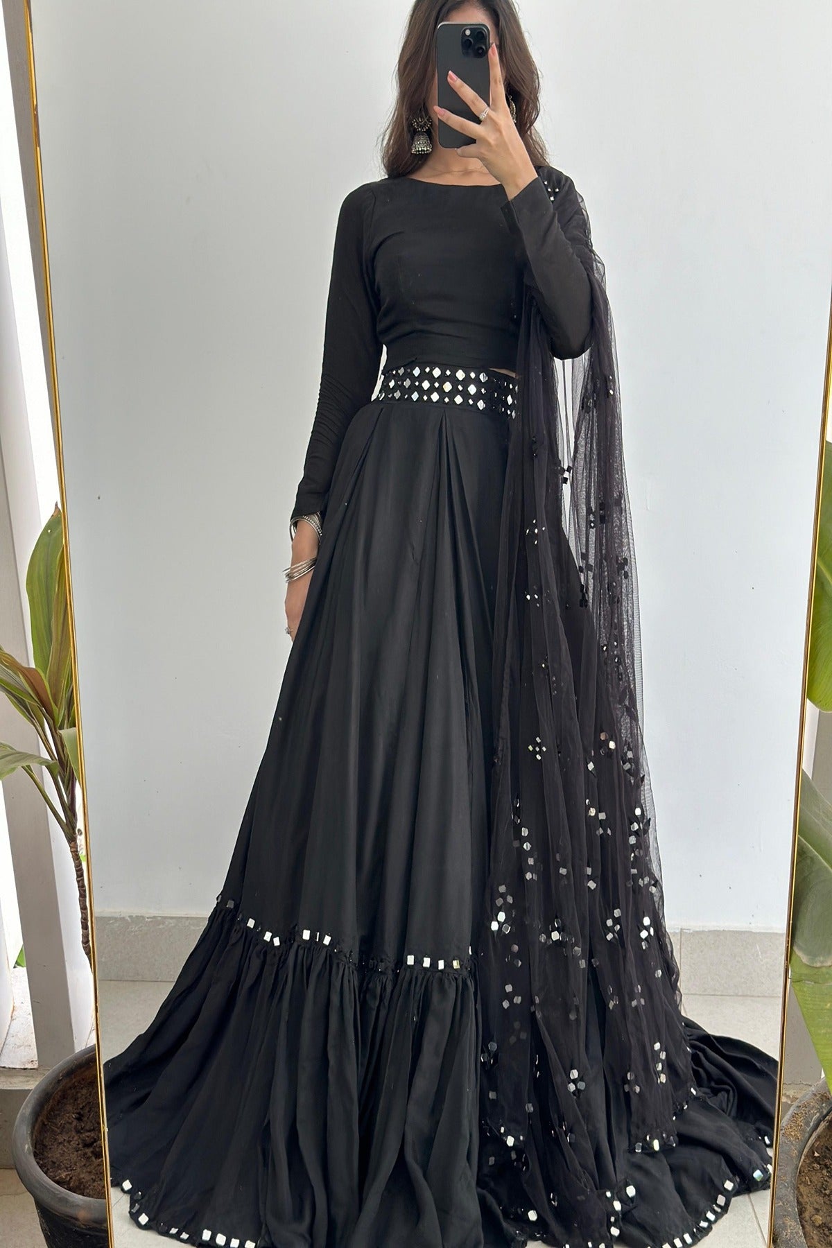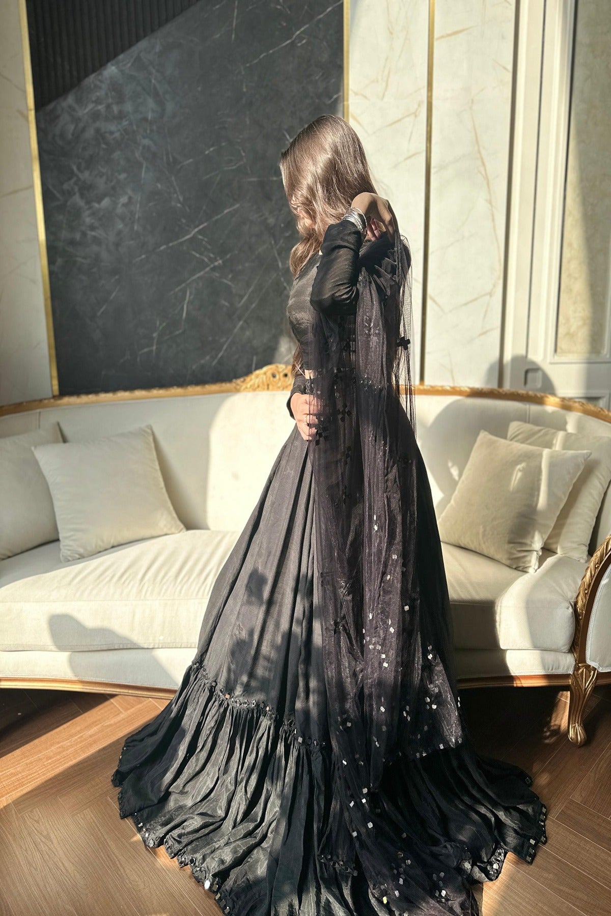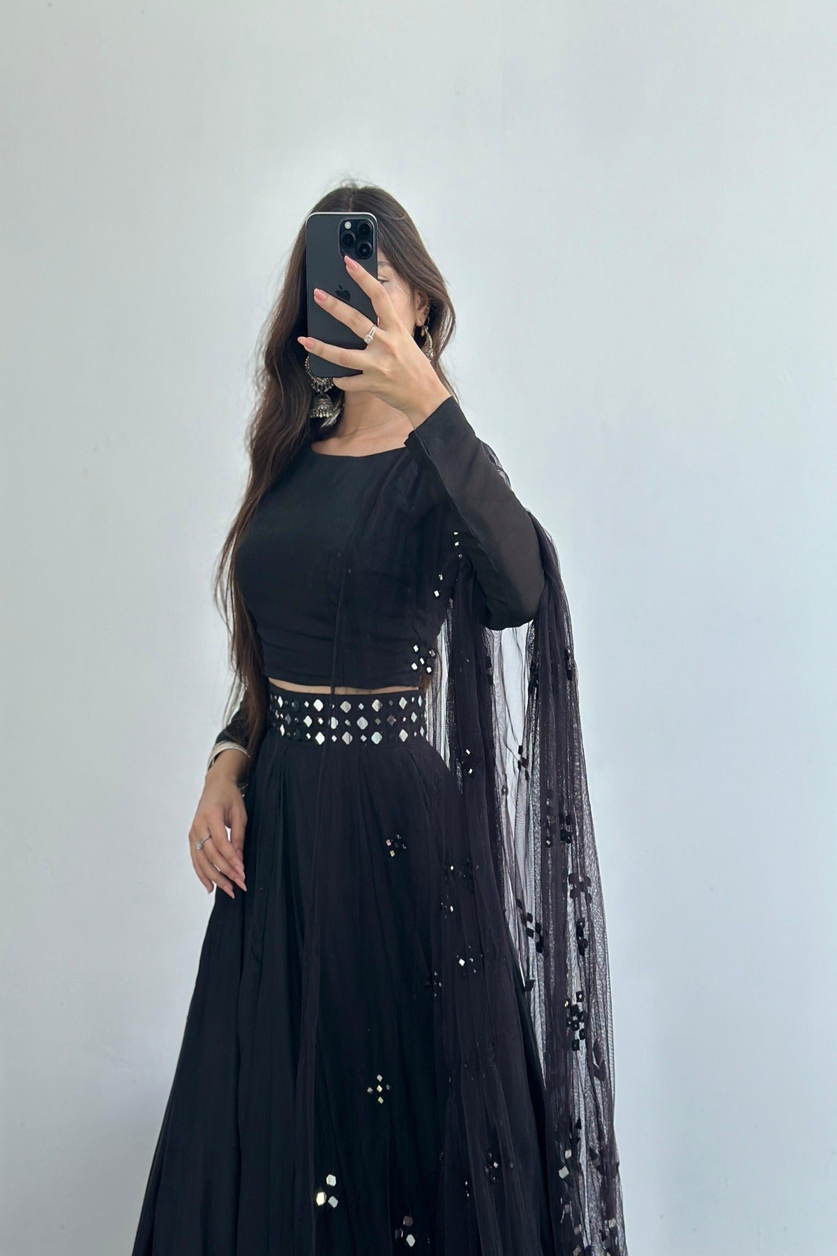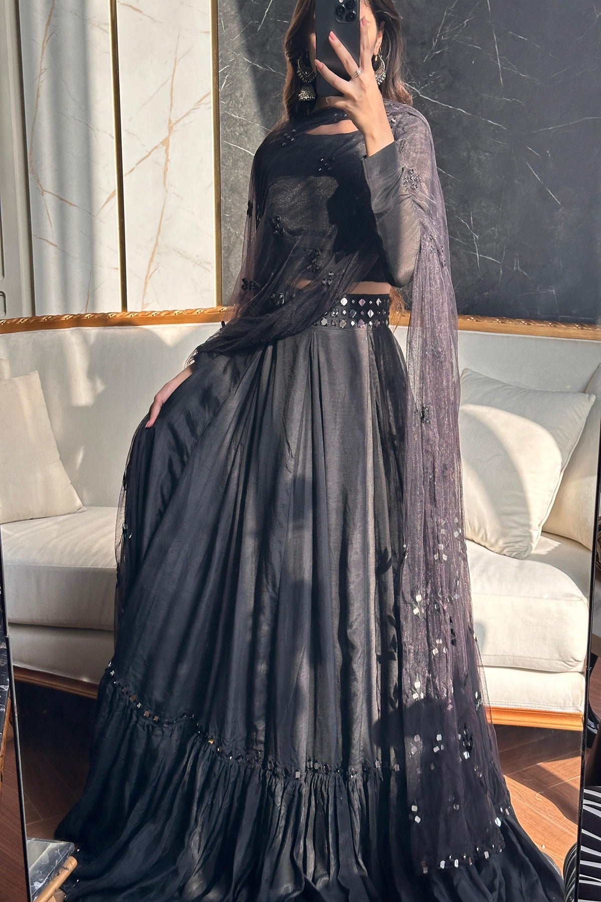SAAD IBRAHIM | LEHENGA CHOLI | SOLID BLACK MIRROR EMBELLISHED LEHENGA CHOLI