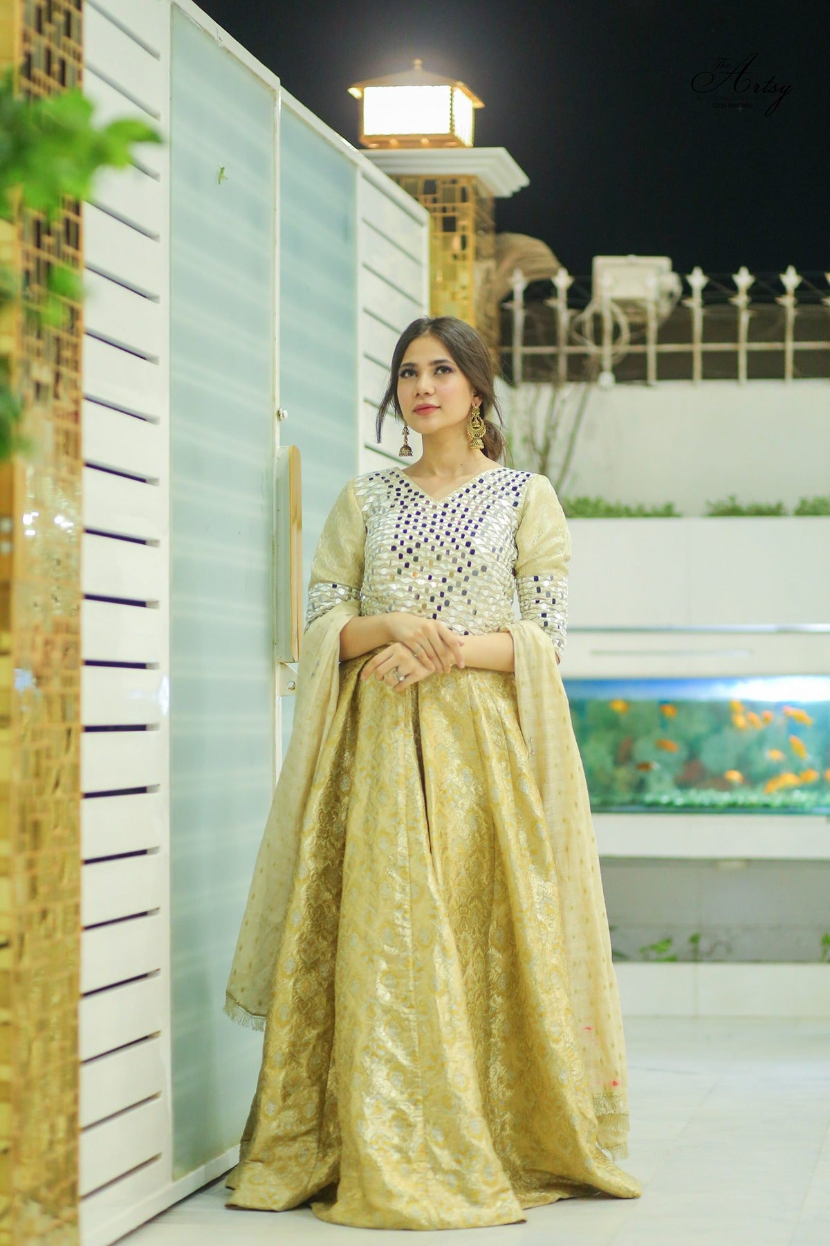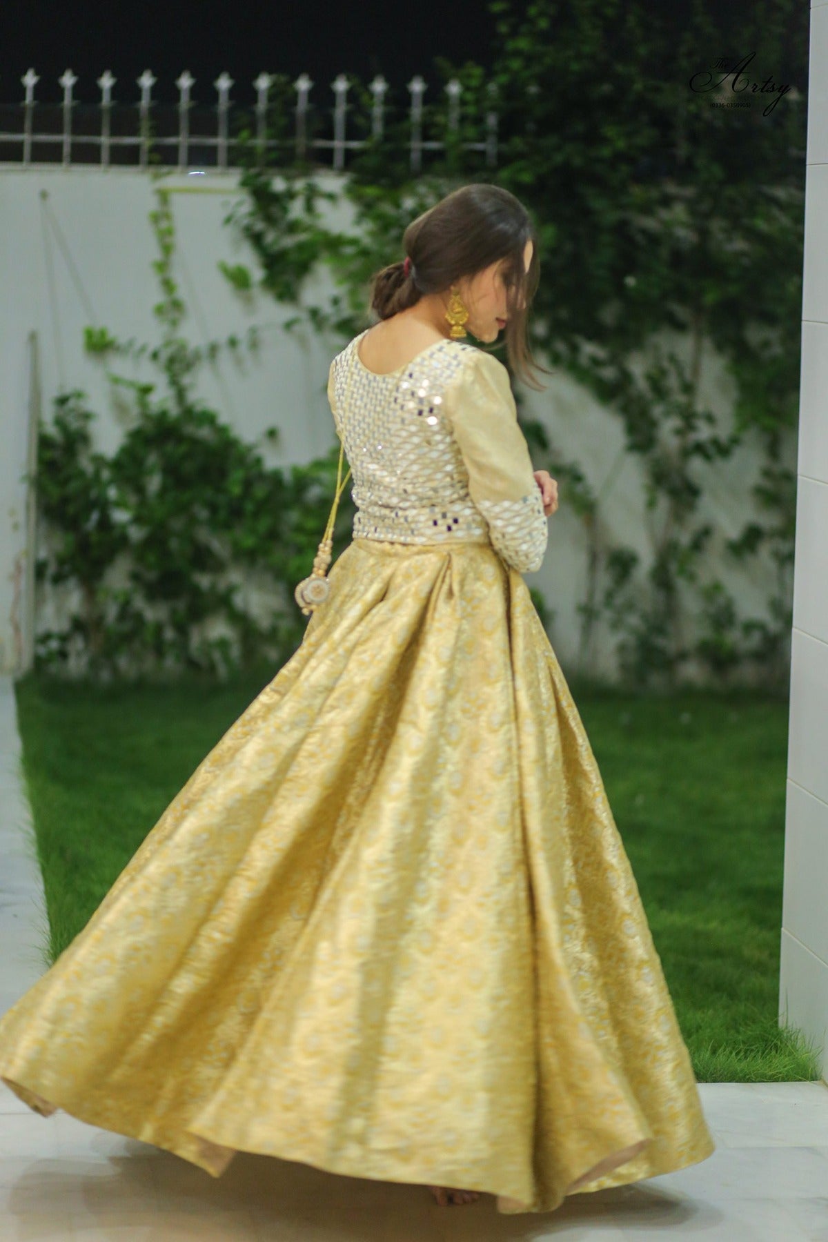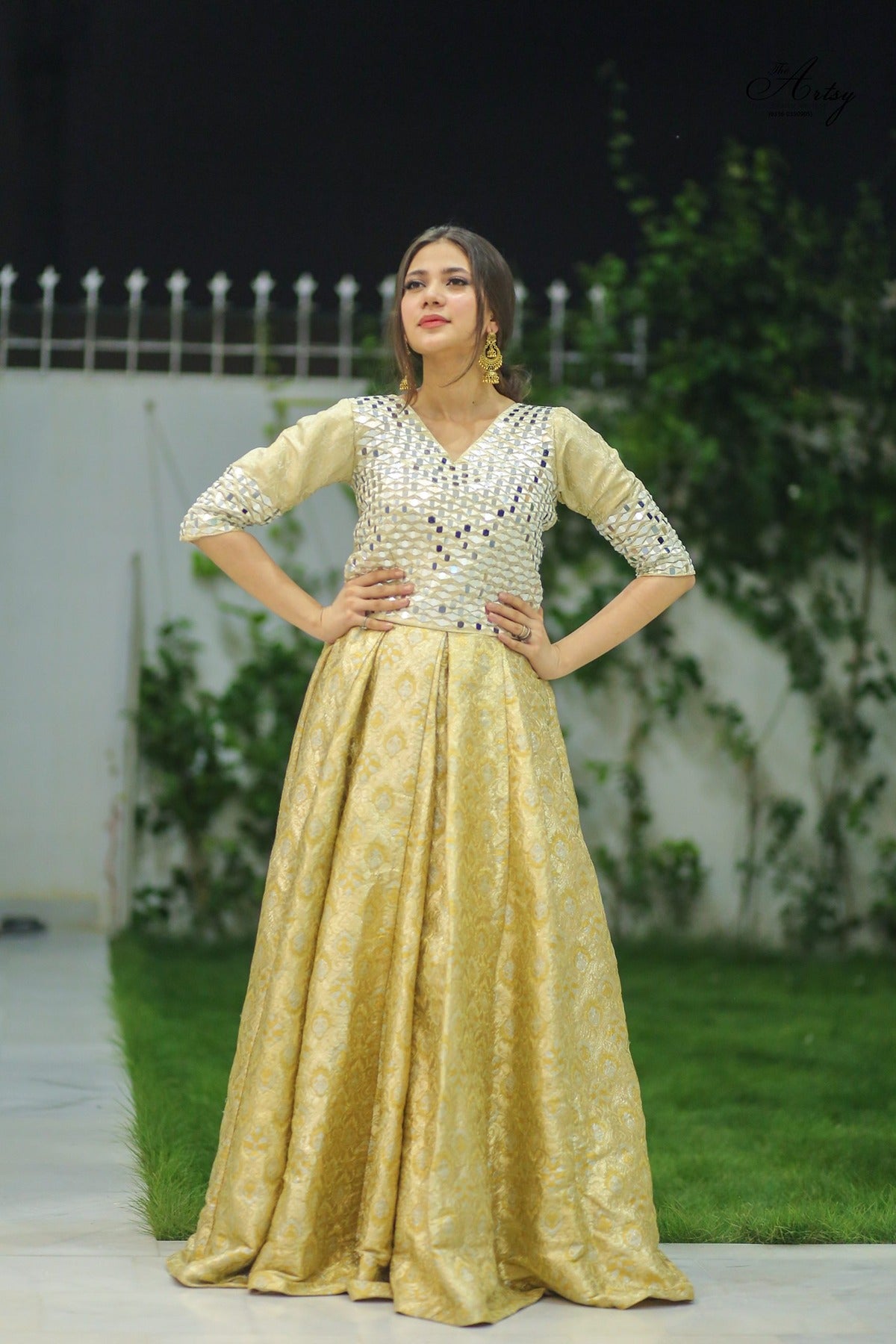 SAAD IBRAHIM | LEHENGA CHOLI | SOLID GOLDEN MIRROR EMBELLISHED LEHENGA CHOLI SET WITH DUPATTA
