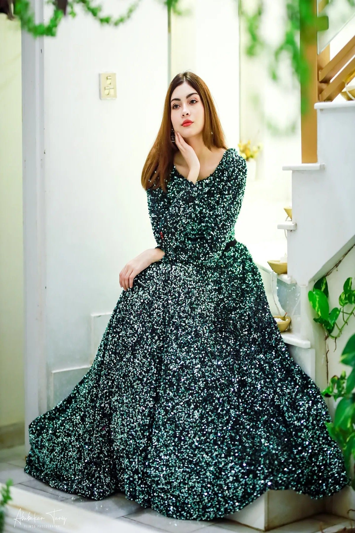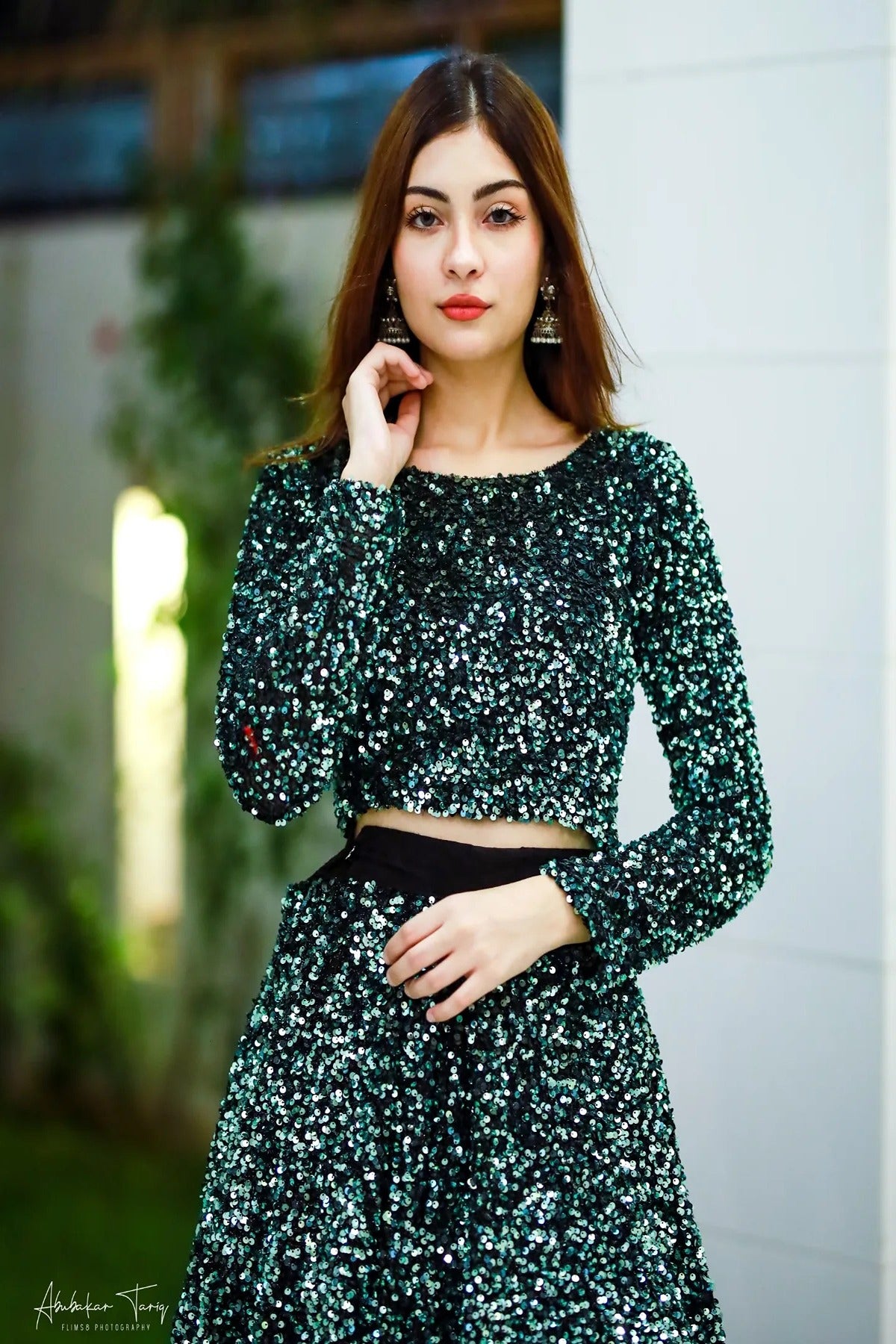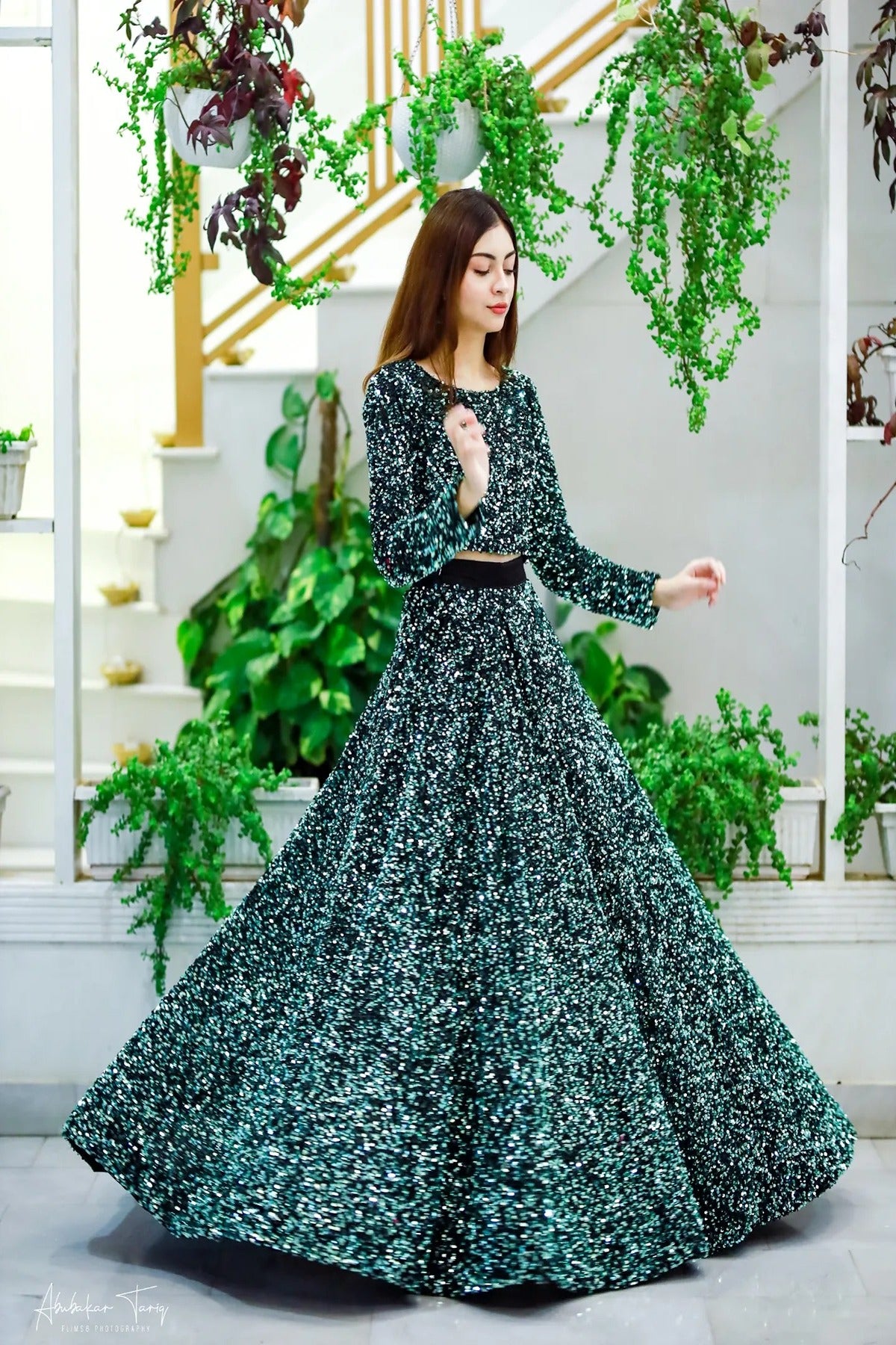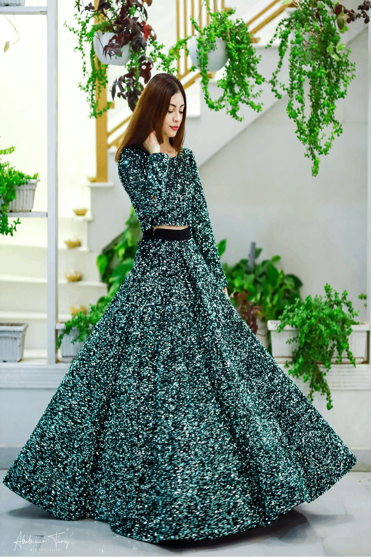 SAAD IBRAHIM | LEHENGA CHOLI | SOLID GREEN MOONLIGHT LEHENGA CHOLI WITH DUPATTA