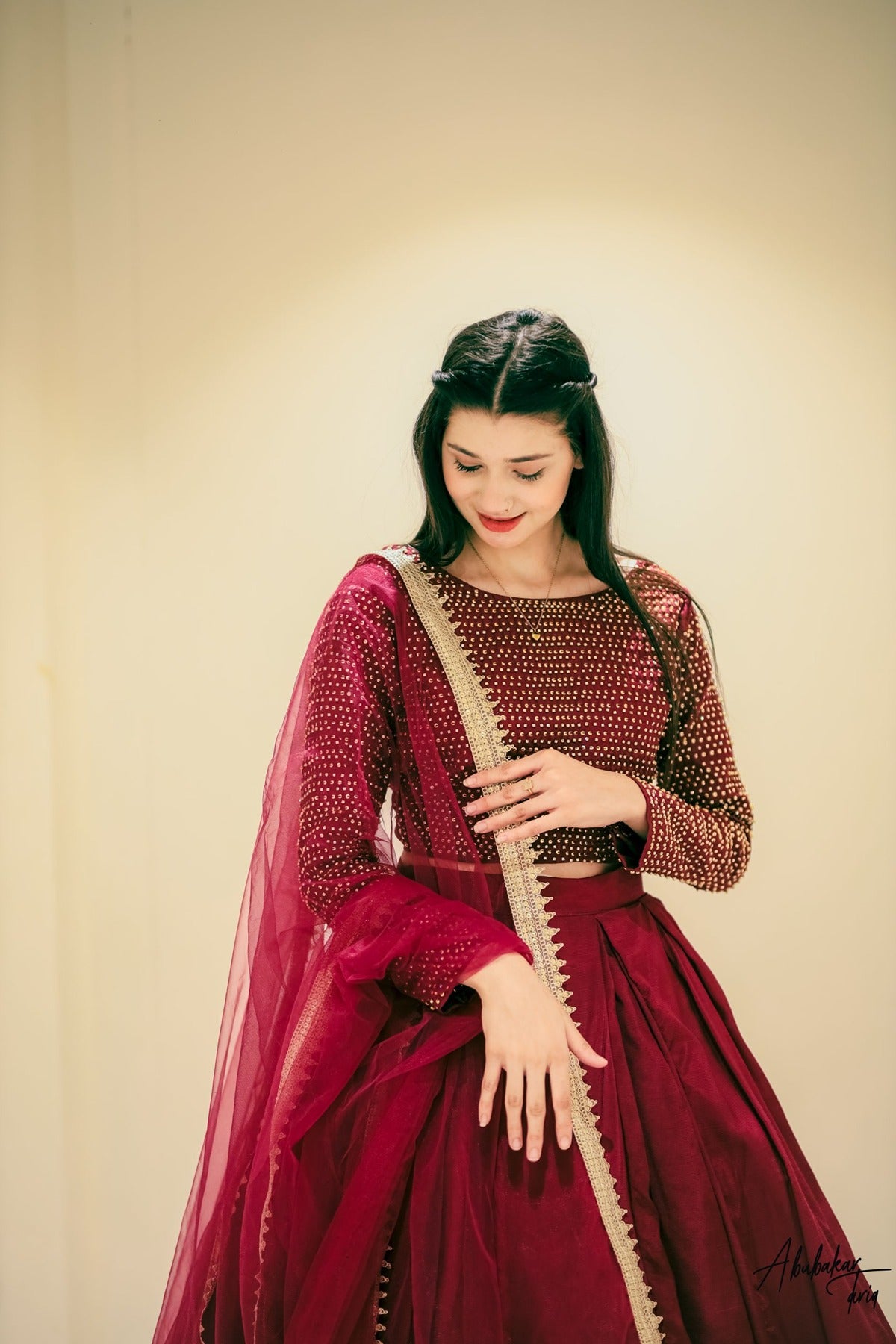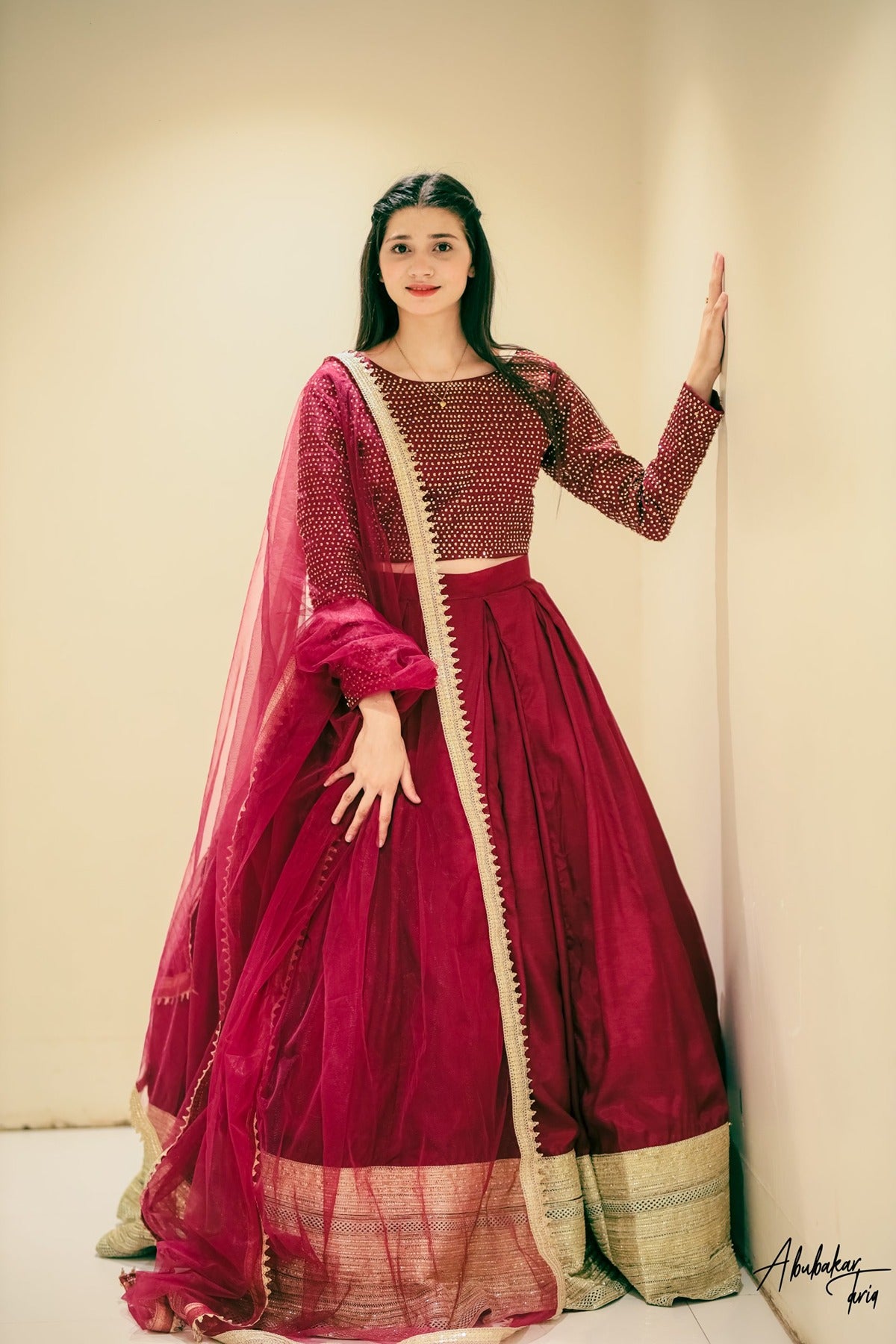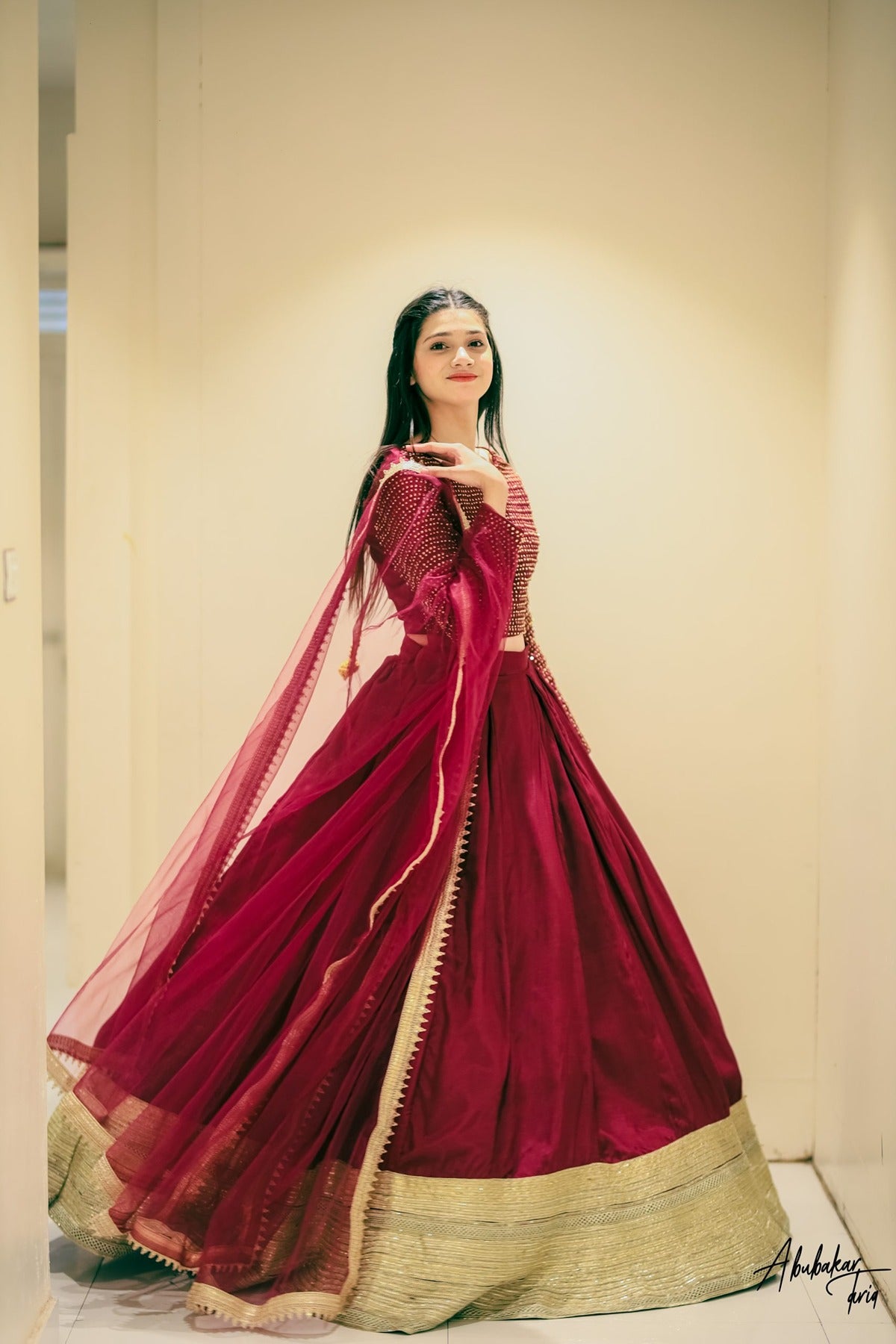 SAAD IBRAHIM | LEHENGA CHOLI | SOLID MAGENTA HAND EMBELLISHED LONG FLAIR LEHENGA CHOLI SIYH DUPATTA