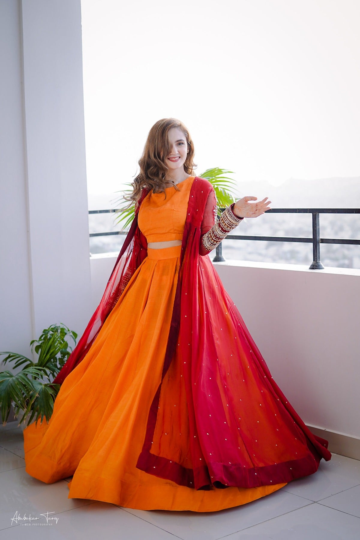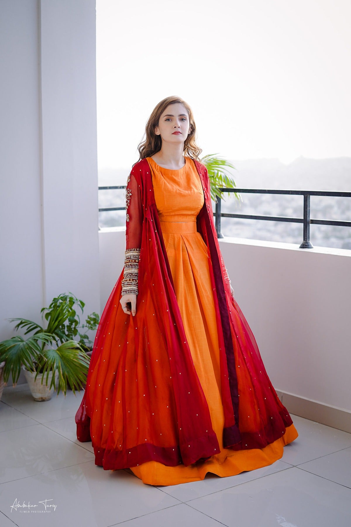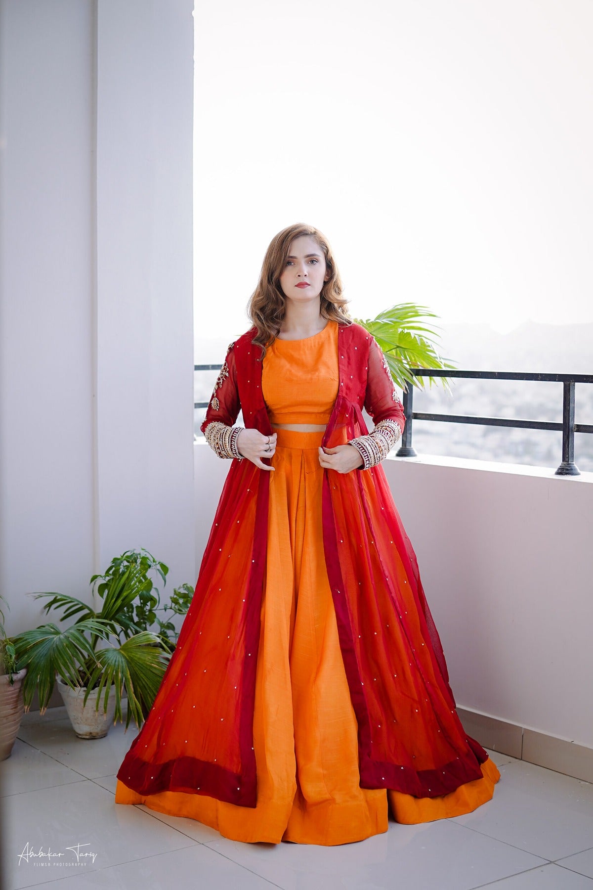 SAAD IBRAHIM | LEHENGA CHOLI | SOLID MAROON COAT WITH MUSTARD LEHENGA CHOLI