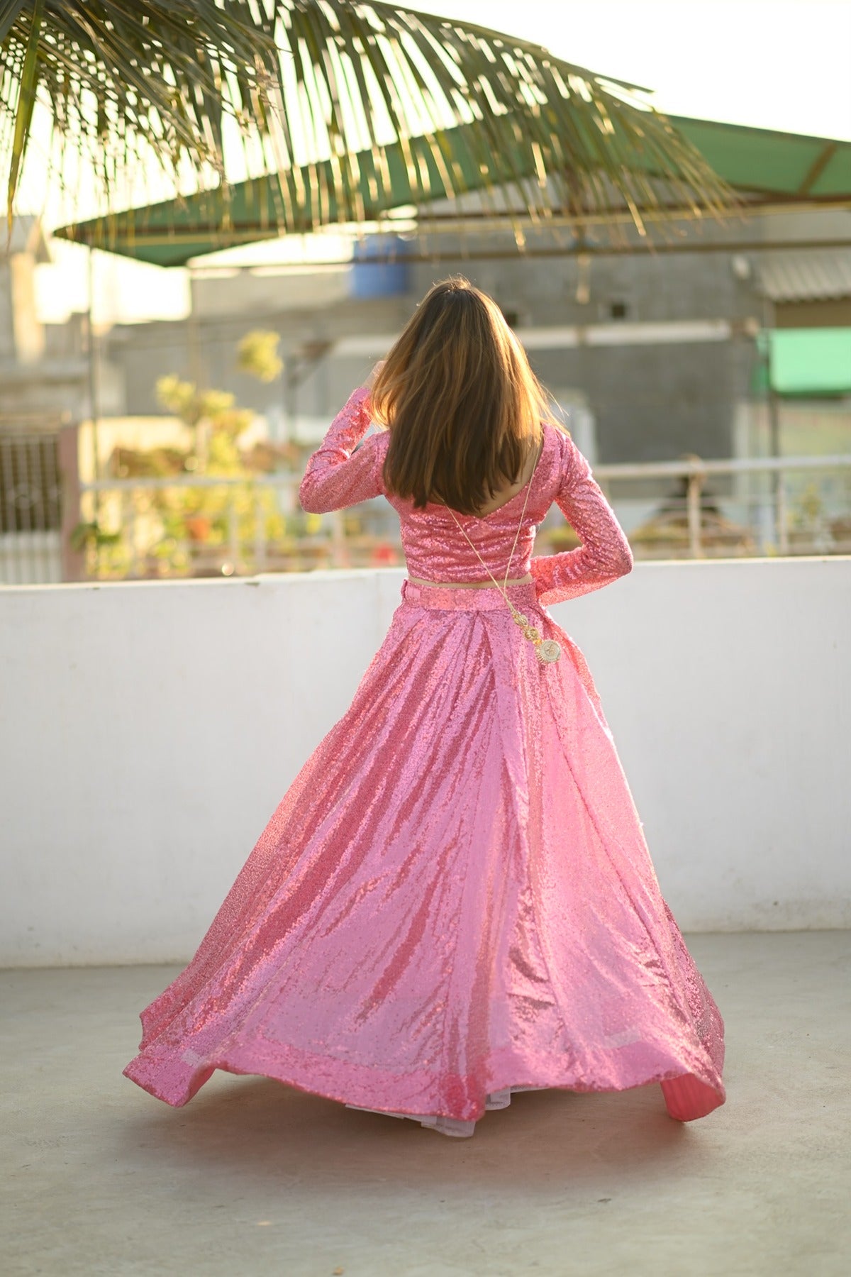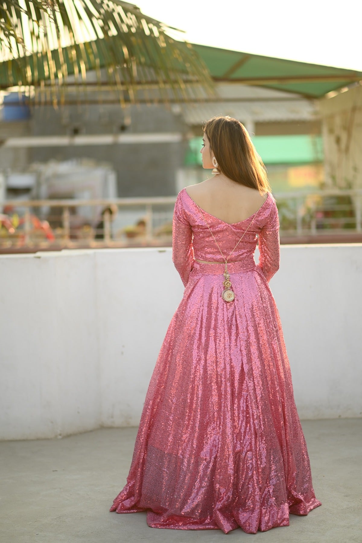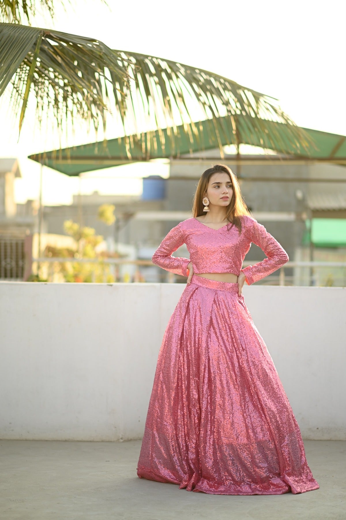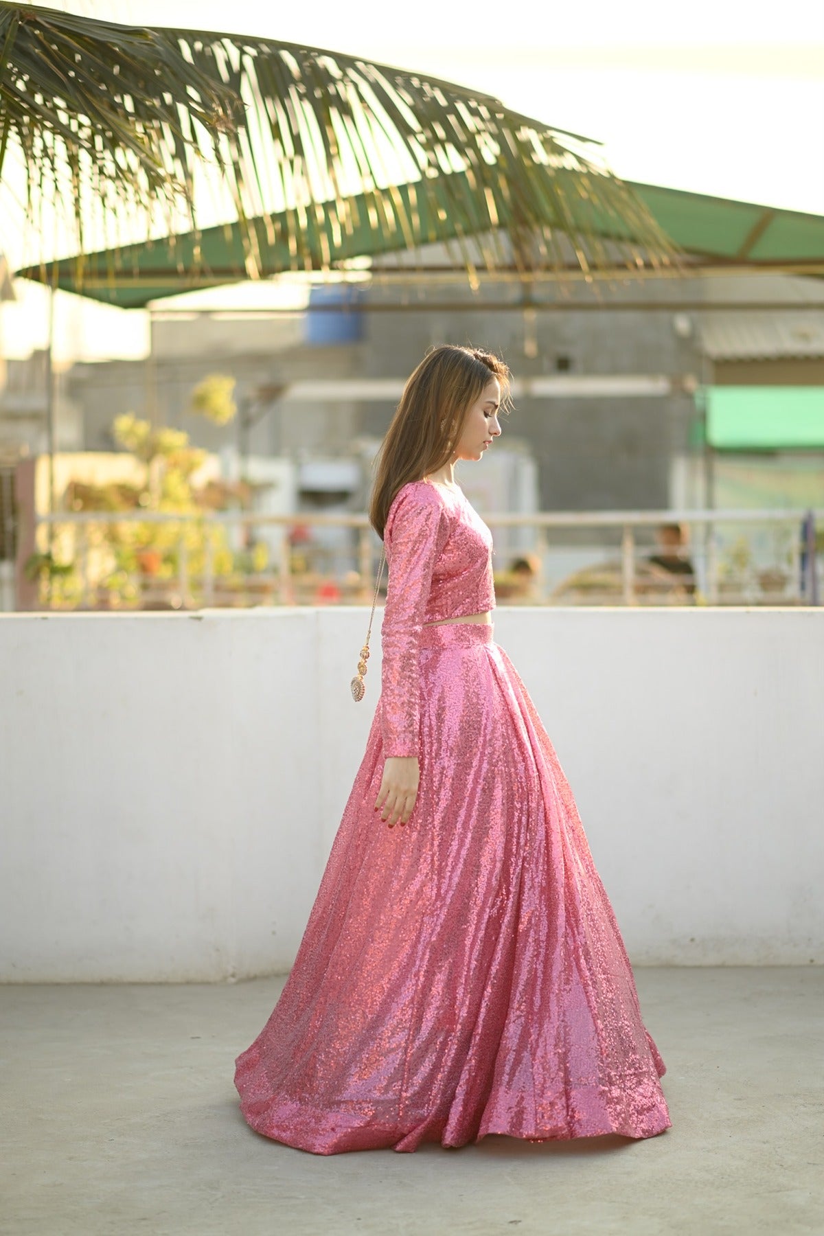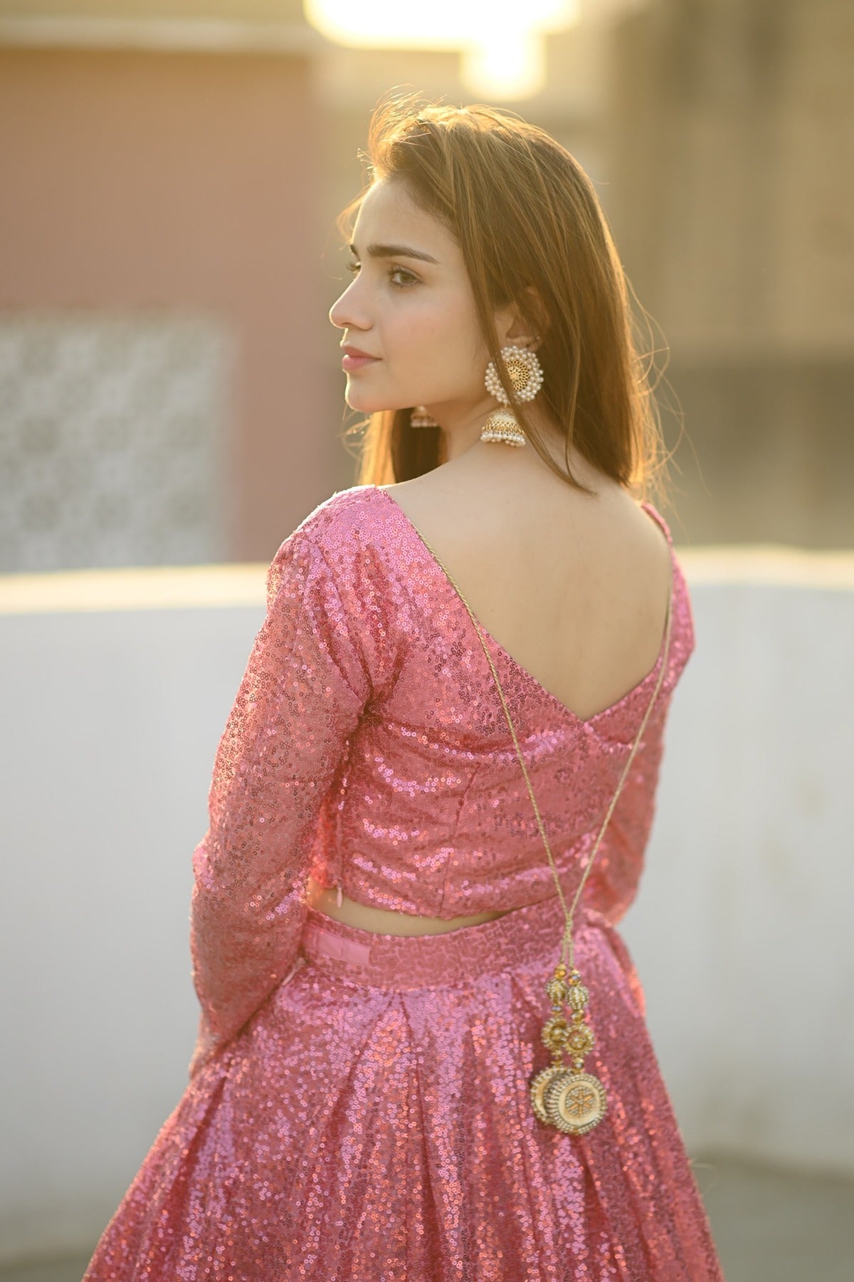 SAAD IBRAHIM | LEHENGA CHOLI | SOLID PINK EMBELLISHED LEHENGA CHOLI SET