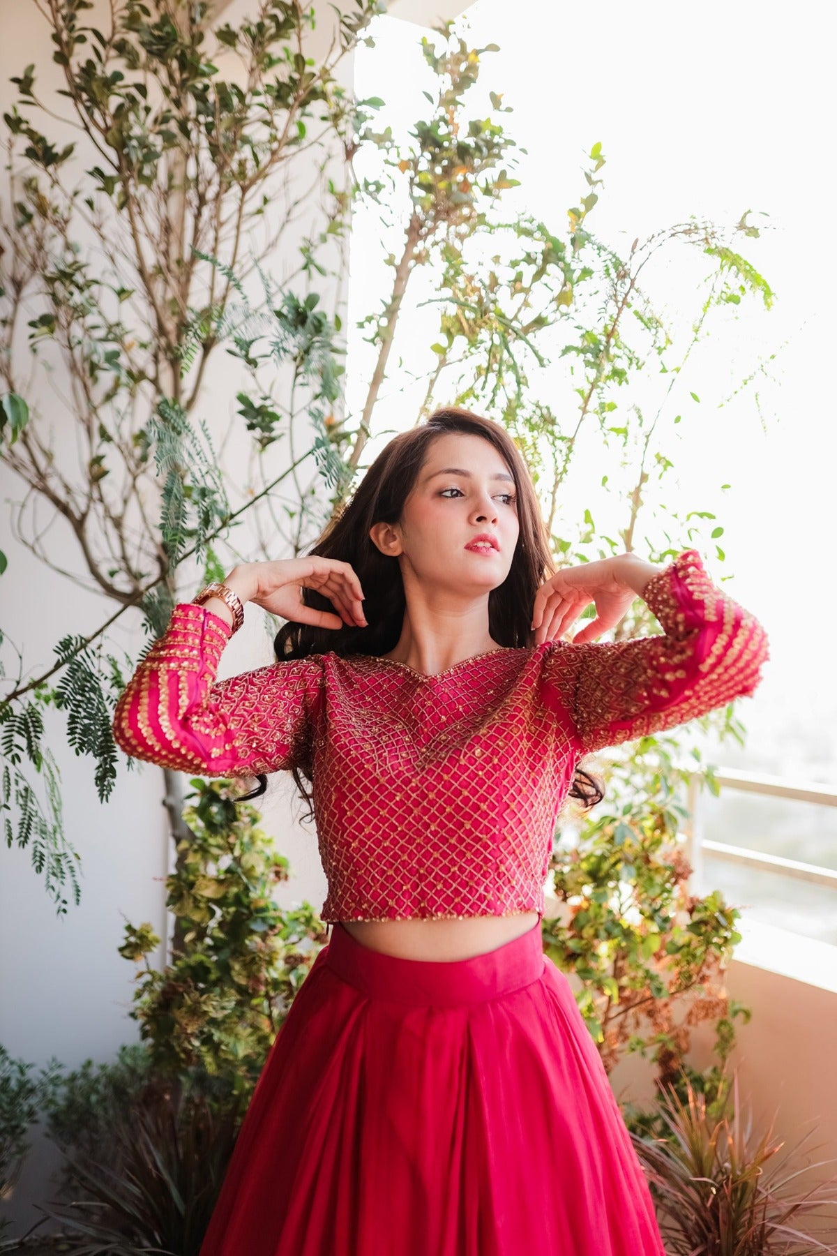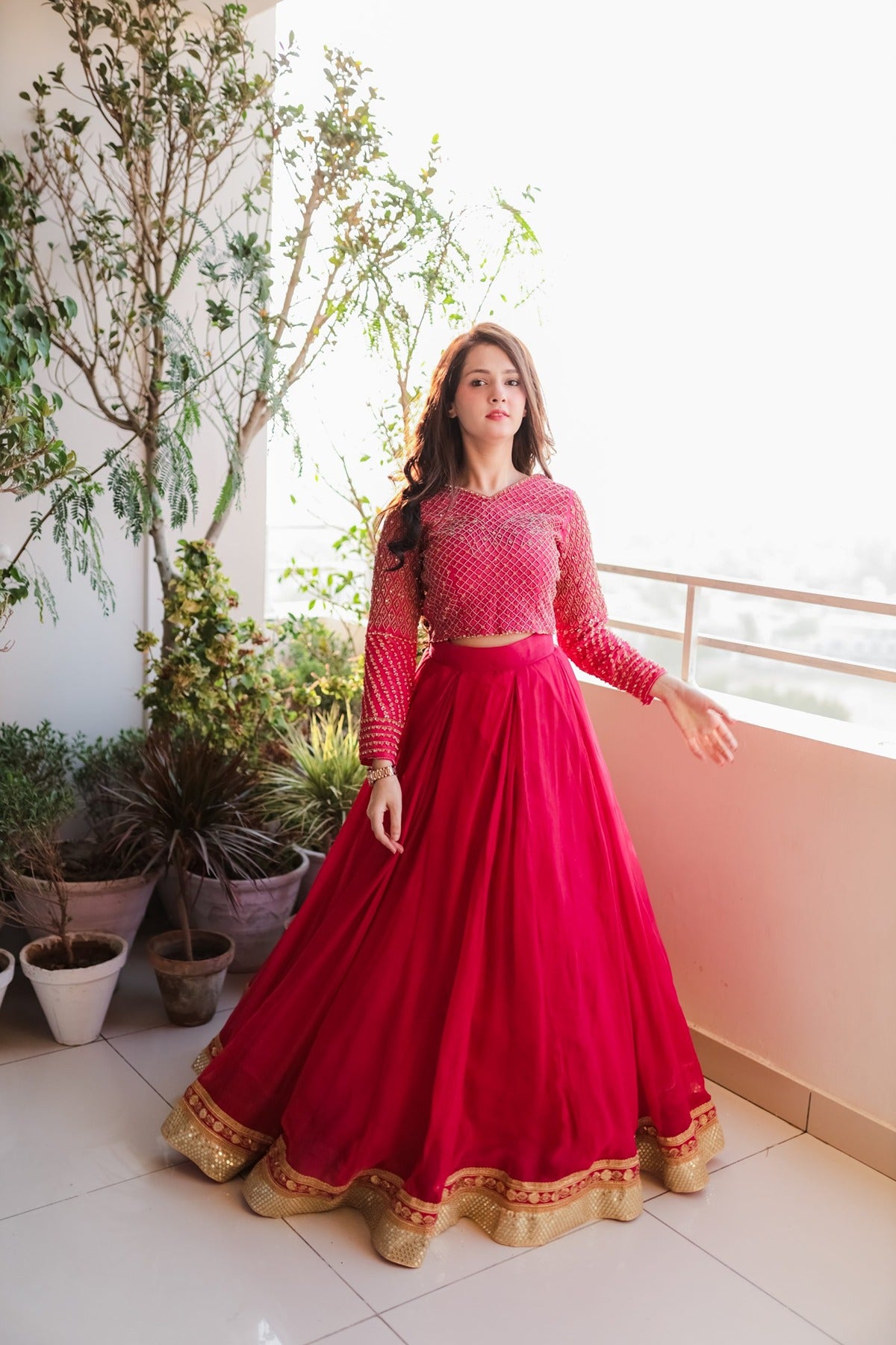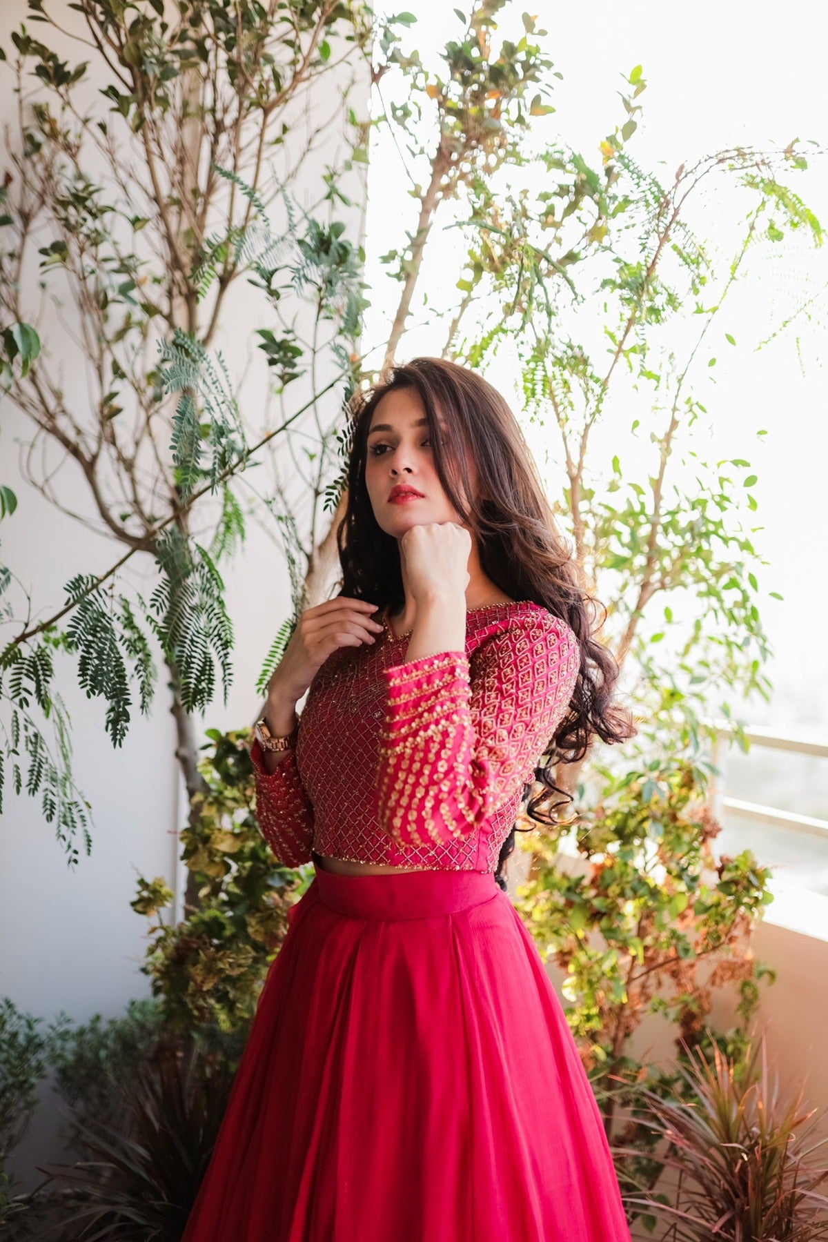 SAAD IBRAHIM | LEHENGA CHOLI | SOLID PINK HAND EMBELLISHED LEHENGA CHOLI SET