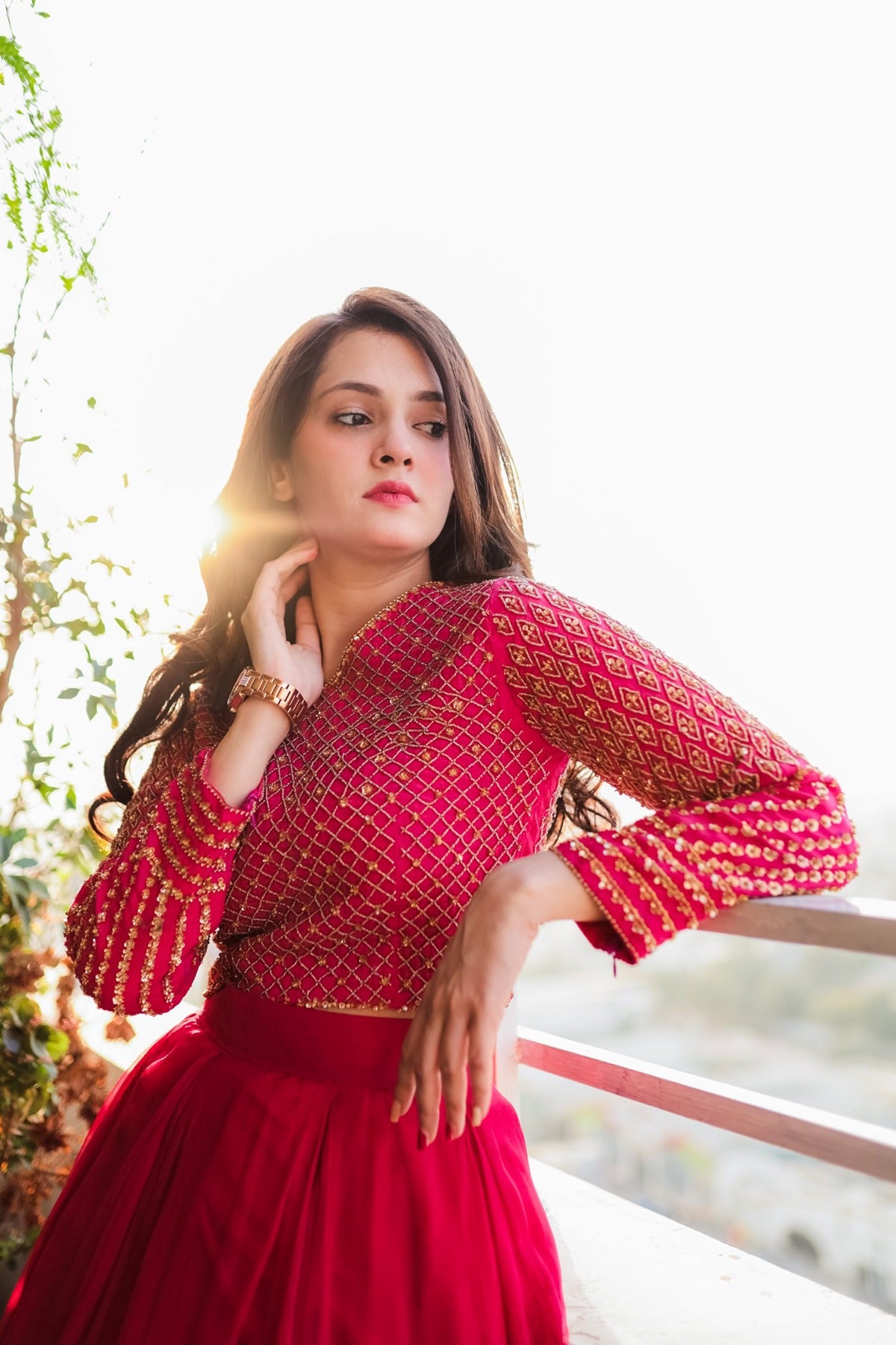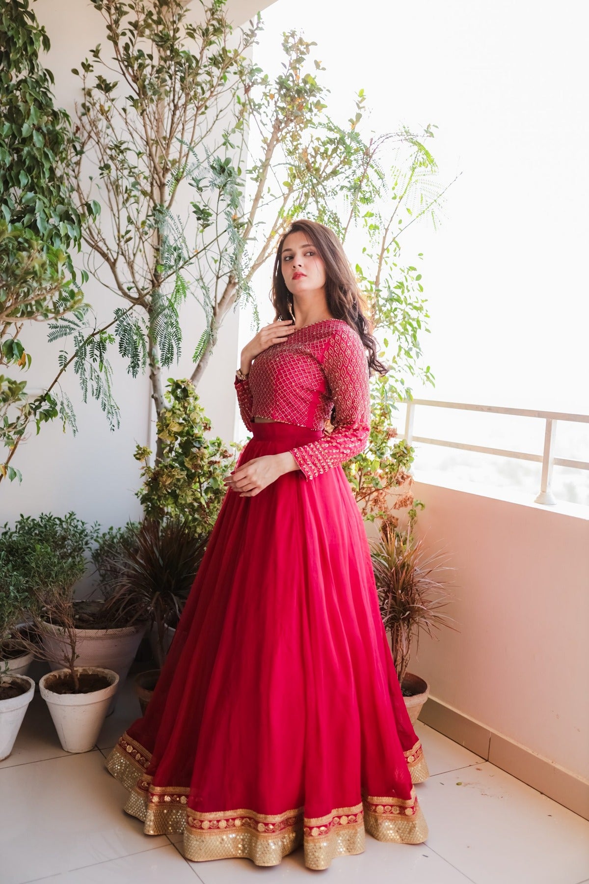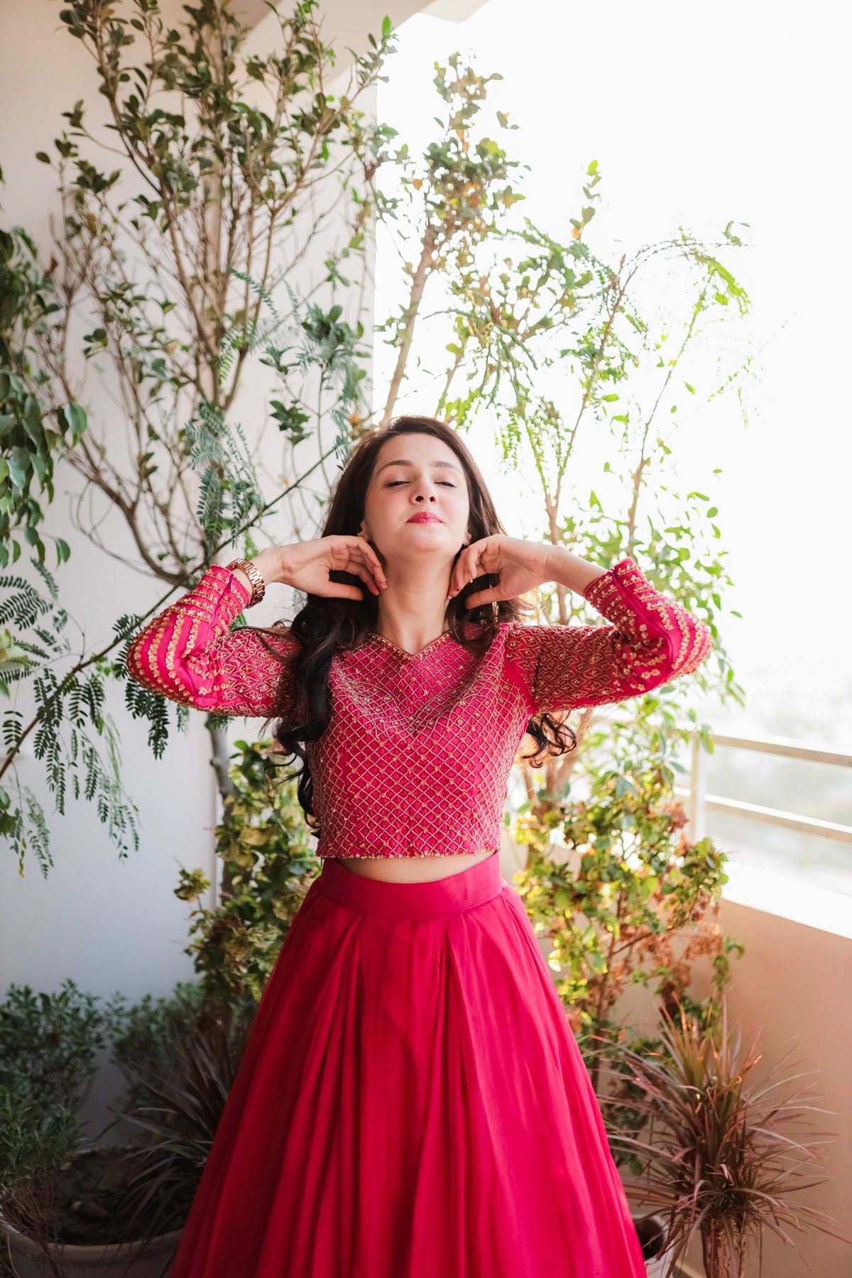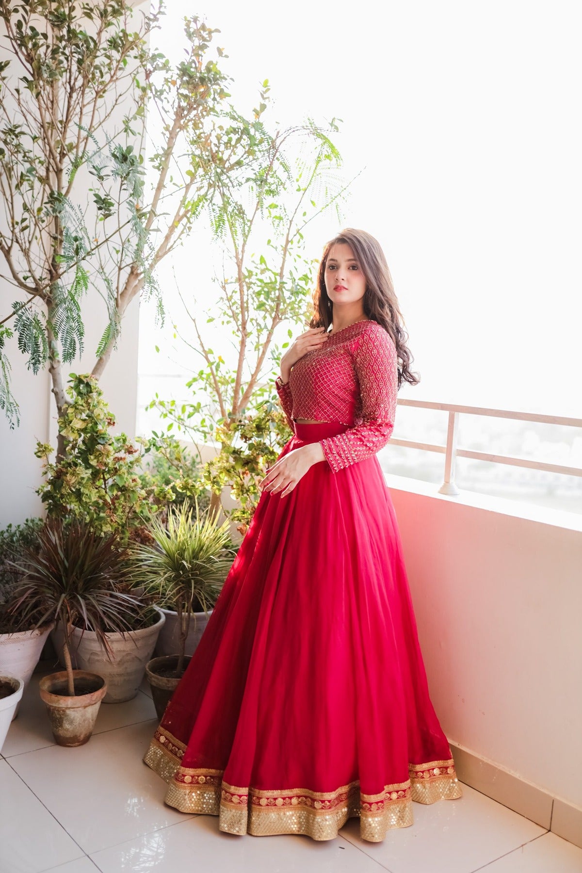 SAAD IBRAHIM | LEHENGA CHOLI | SOLID PINK HAND EMBELLISHED LEHENGA CHOLI SET