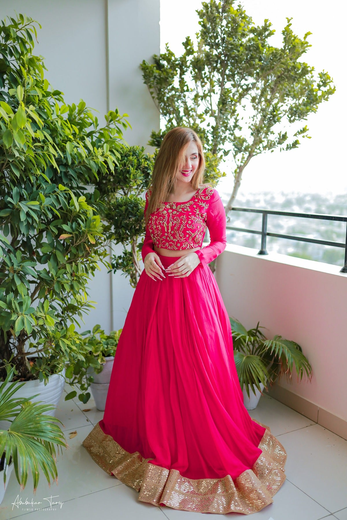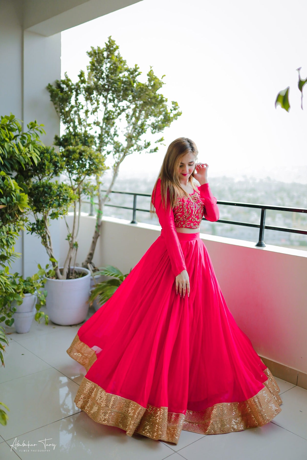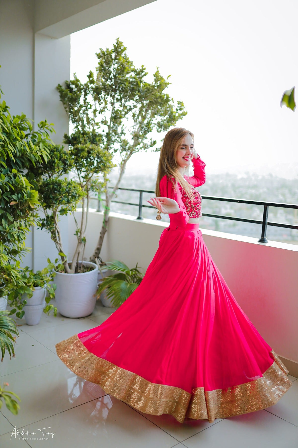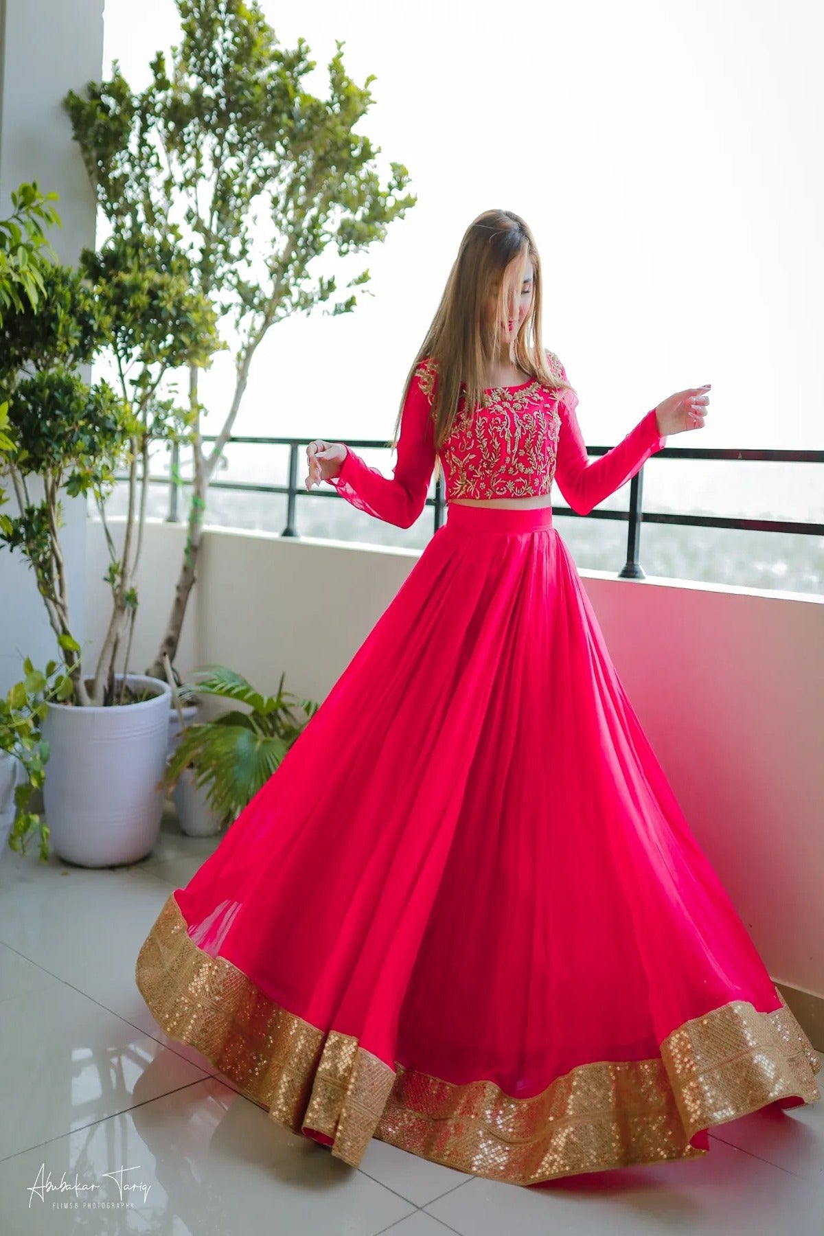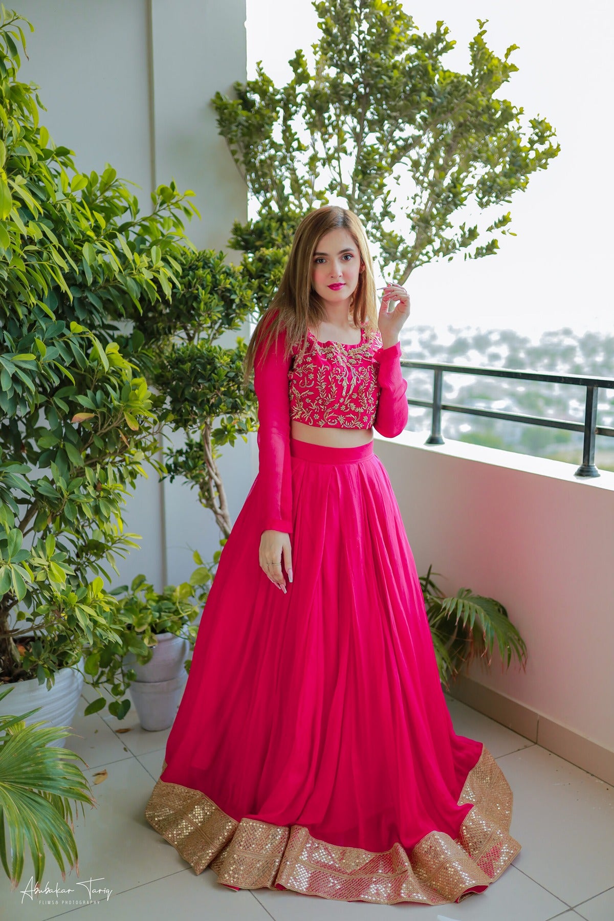 SAAD IBRAHIM | LEHENGA CHOLI | SOLID PINK HAND EMBELLISHED LEHENGA CHOLI SET WITH DUPATTA
