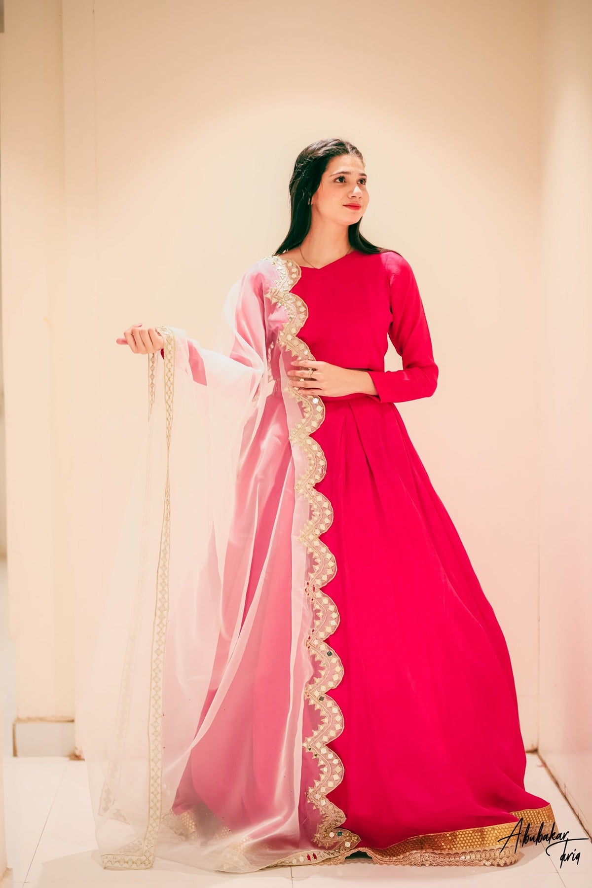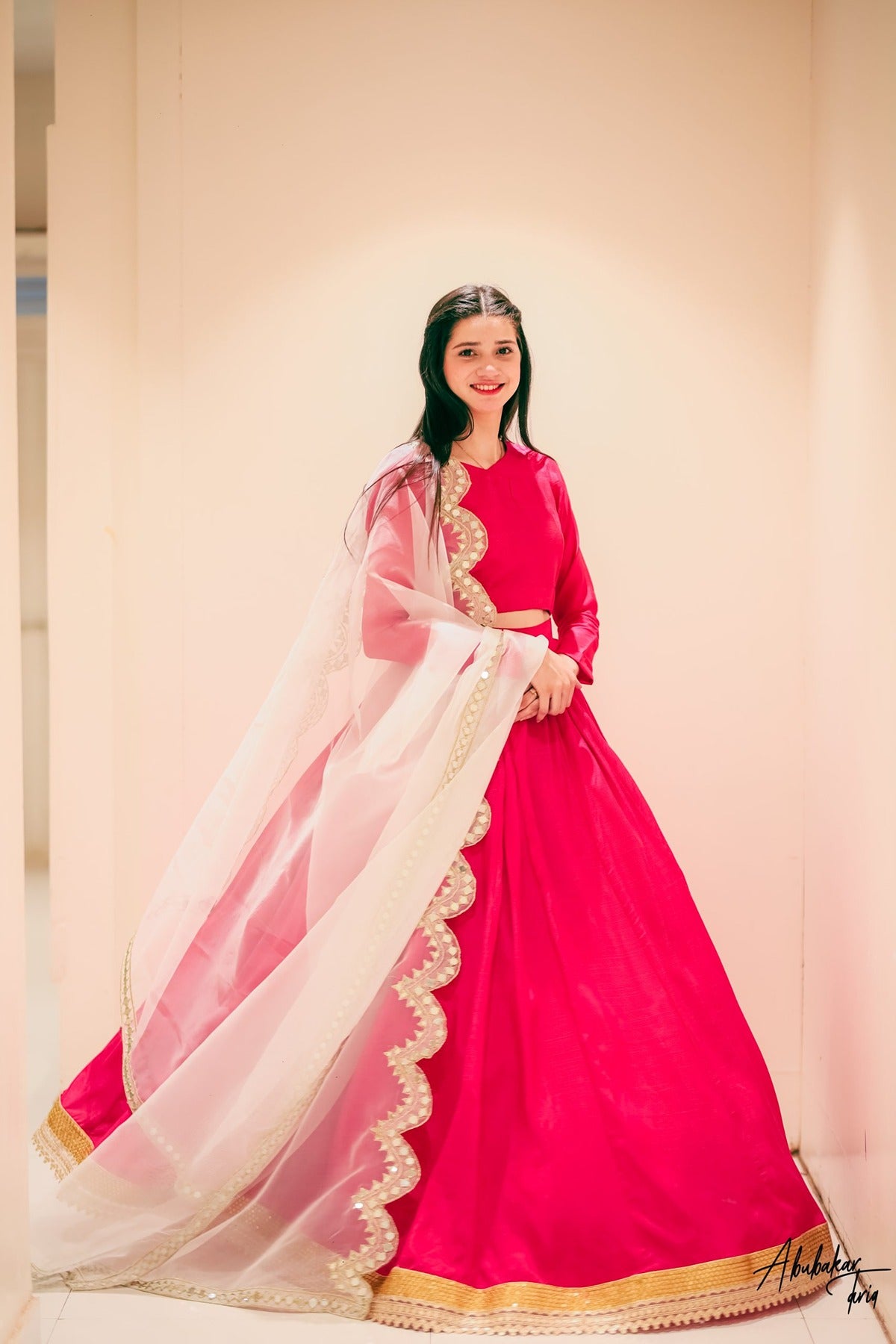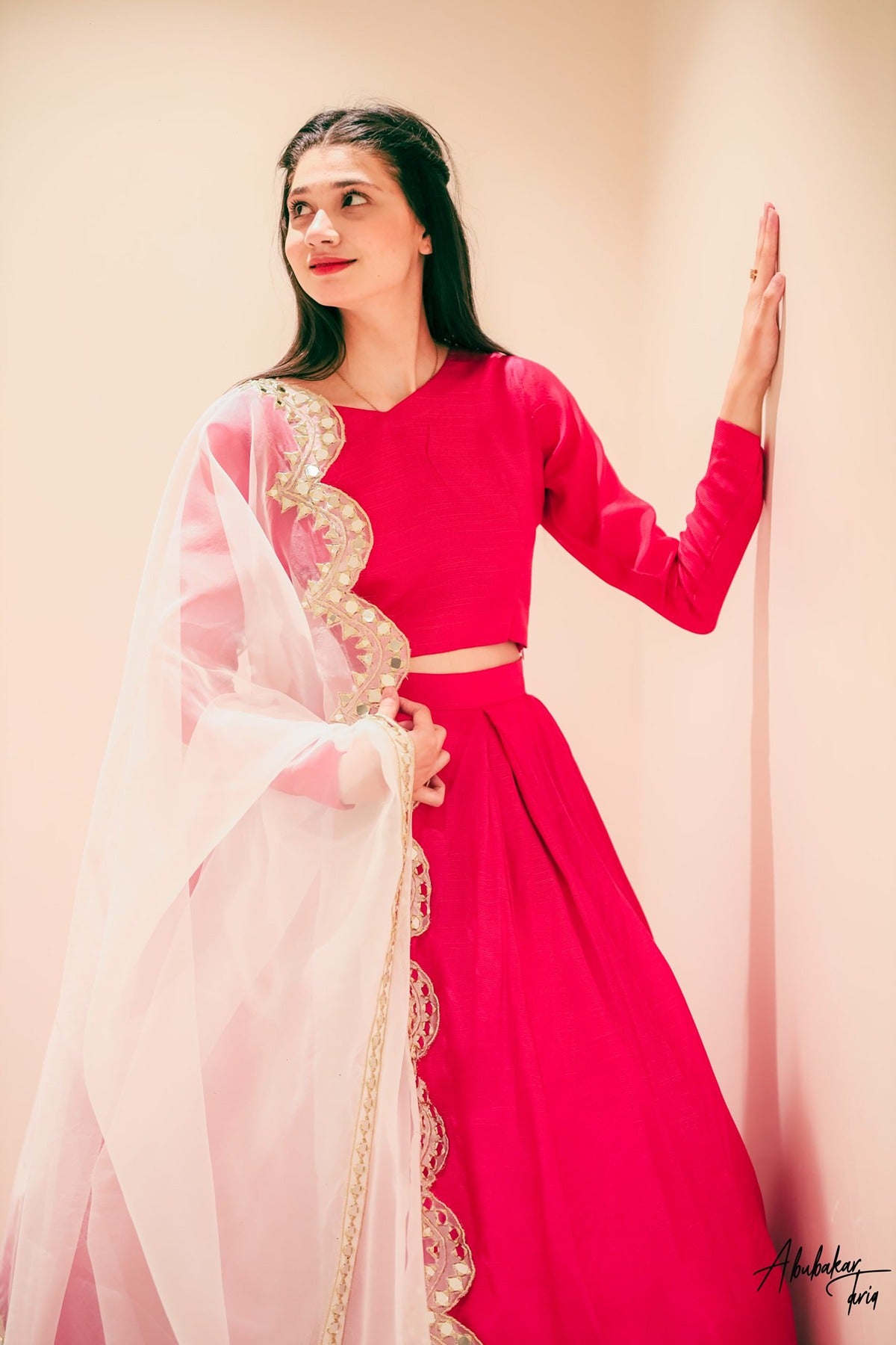 SAAD IBRAHIM | LEHENGA CHOLI | SOLID PINK LEHENGA CHOLI WITH WHITE MIRORR WORK DUPATTA
