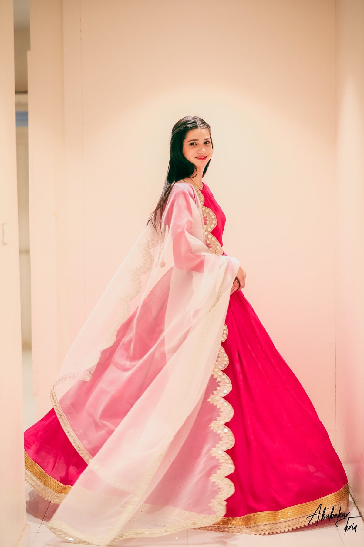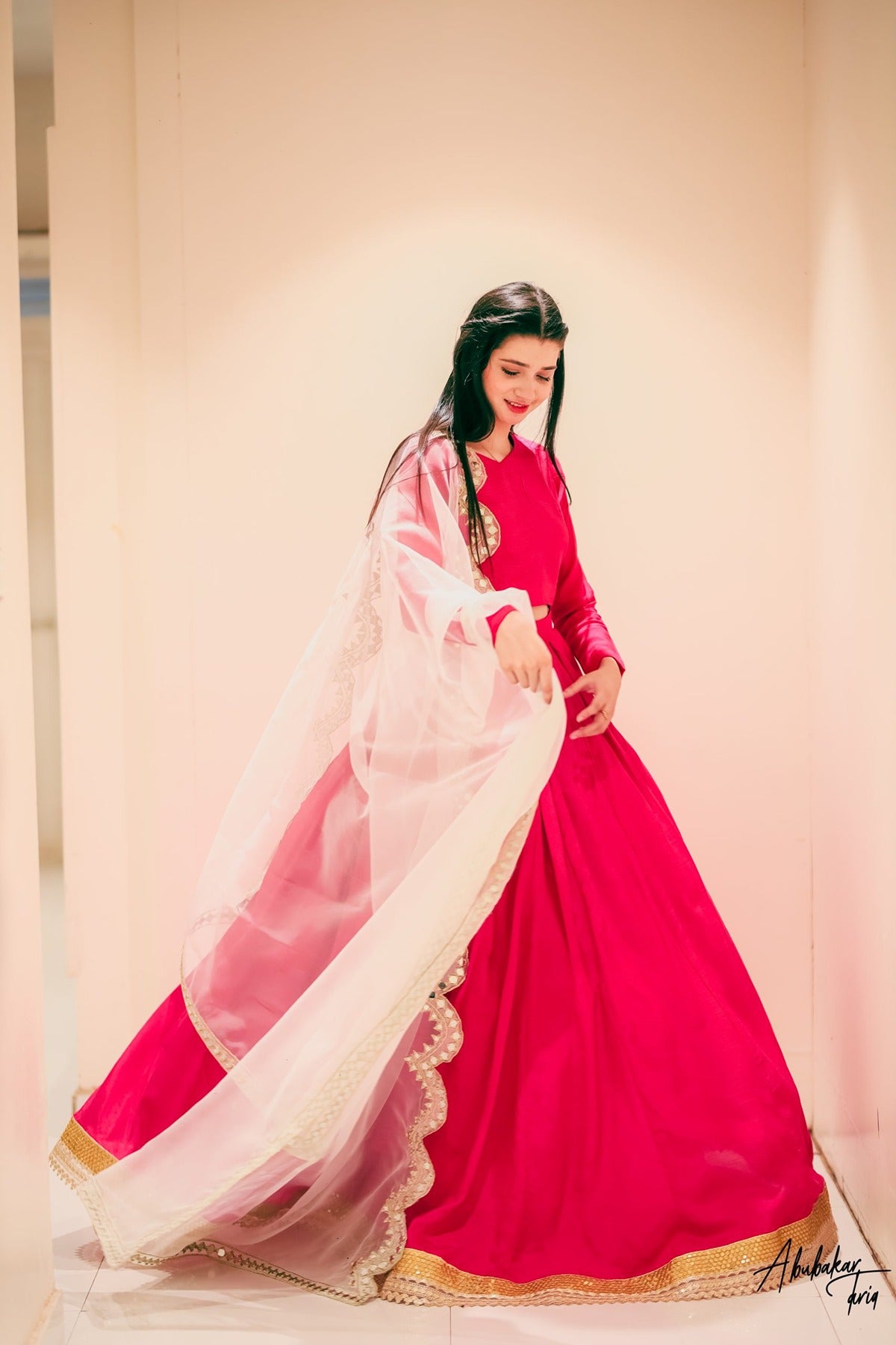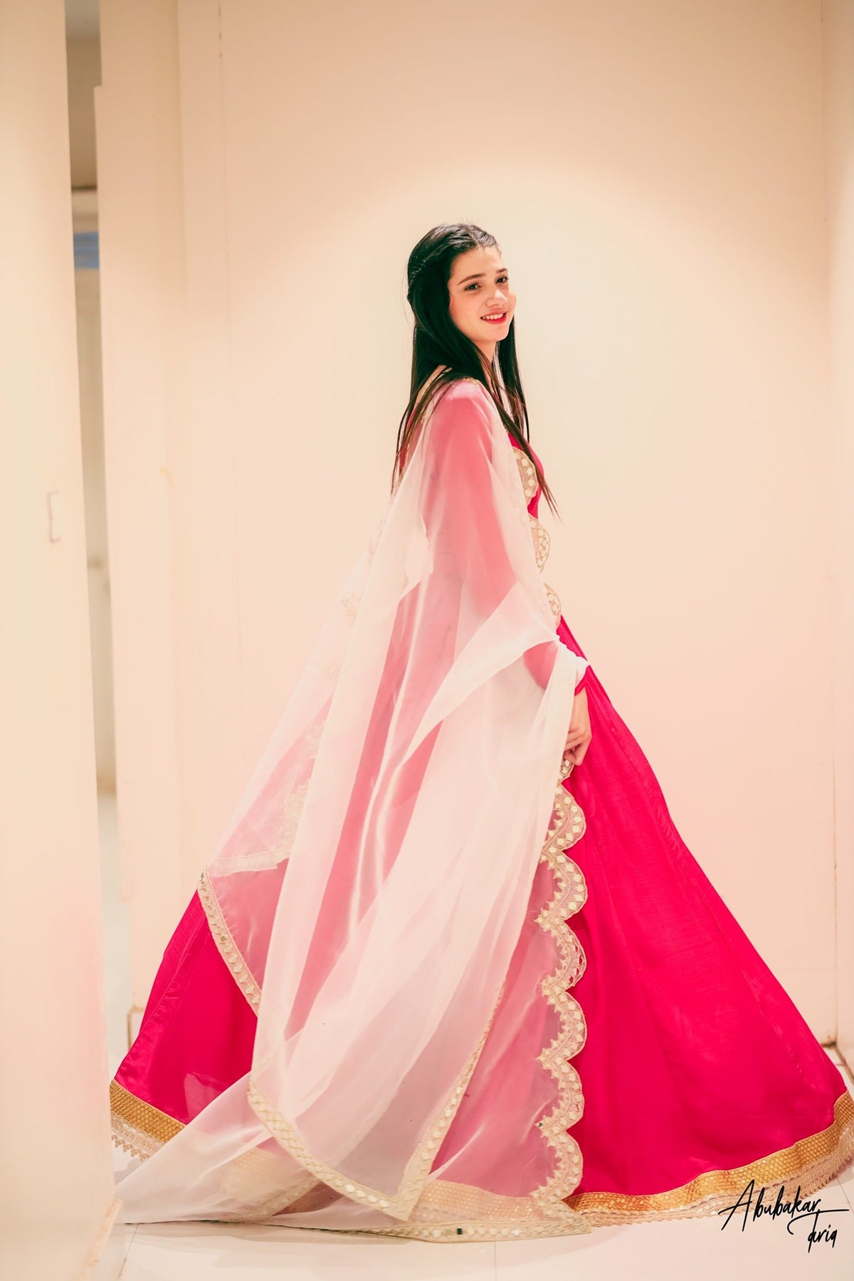 SAAD IBRAHIM | LEHENGA CHOLI | SOLID PINK LEHENGA CHOLI WITH WHITE MIRORR WORK DUPATTA