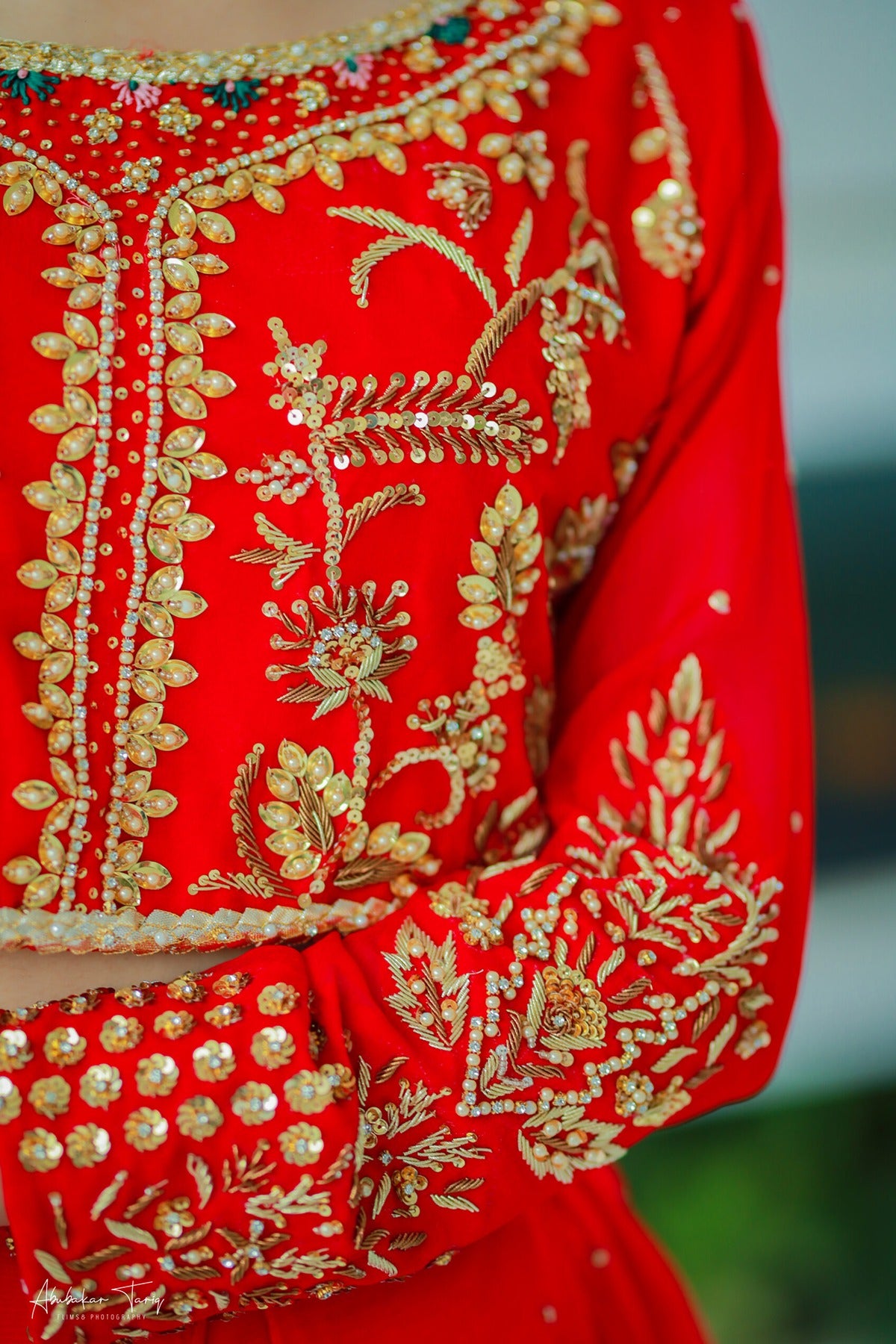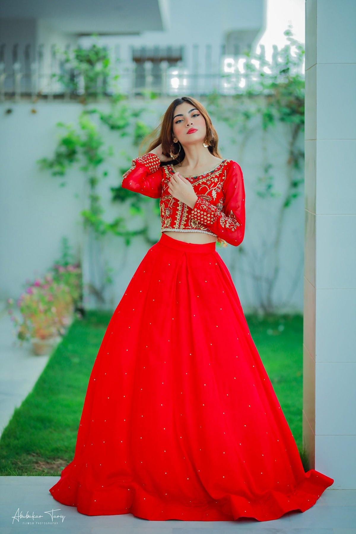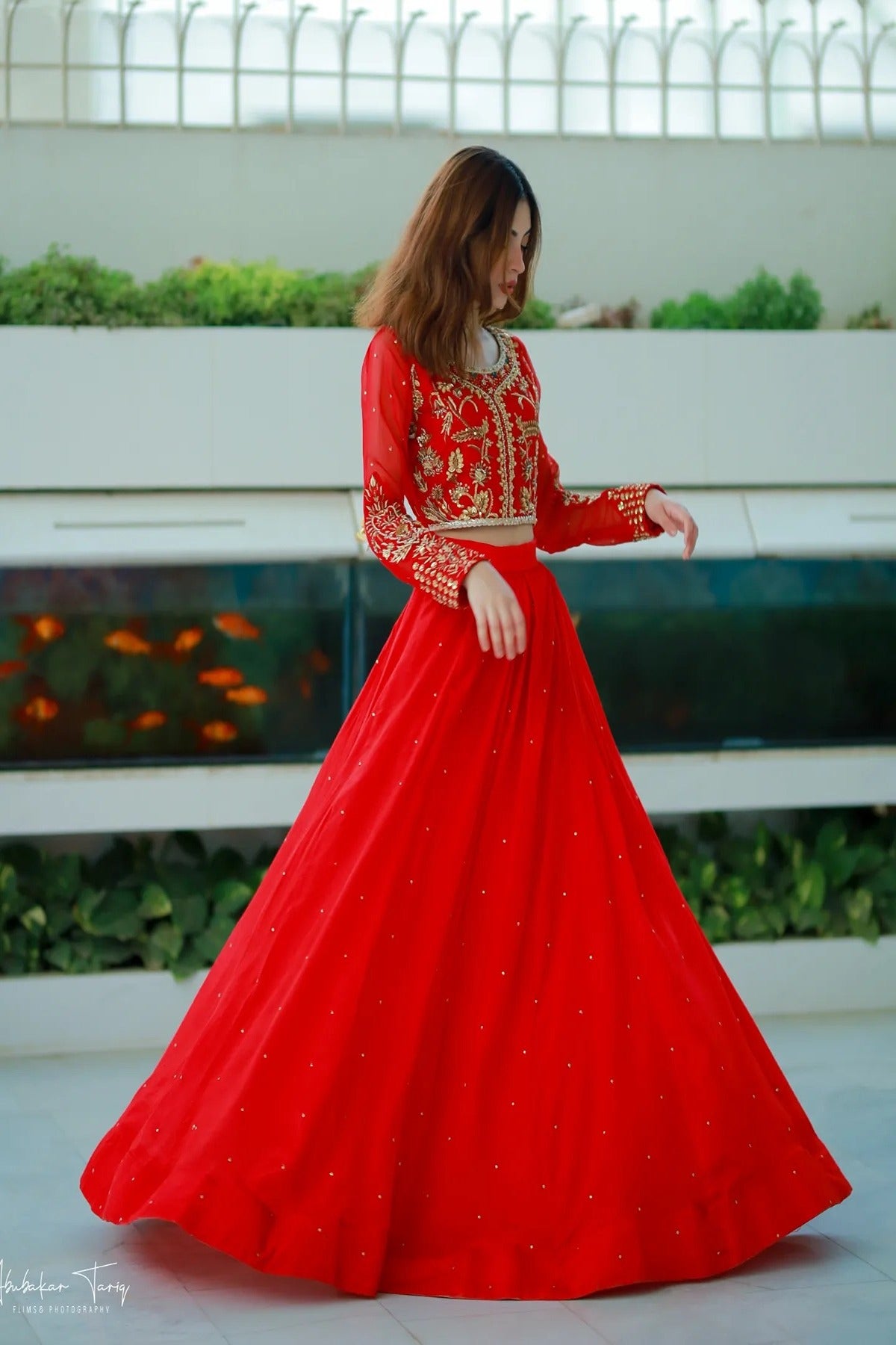 SAAD IBRAHIM | LEHENGA CHOLI | SOLID RED EMBELLISHED LEHENGA CHOLI SET | 2PC