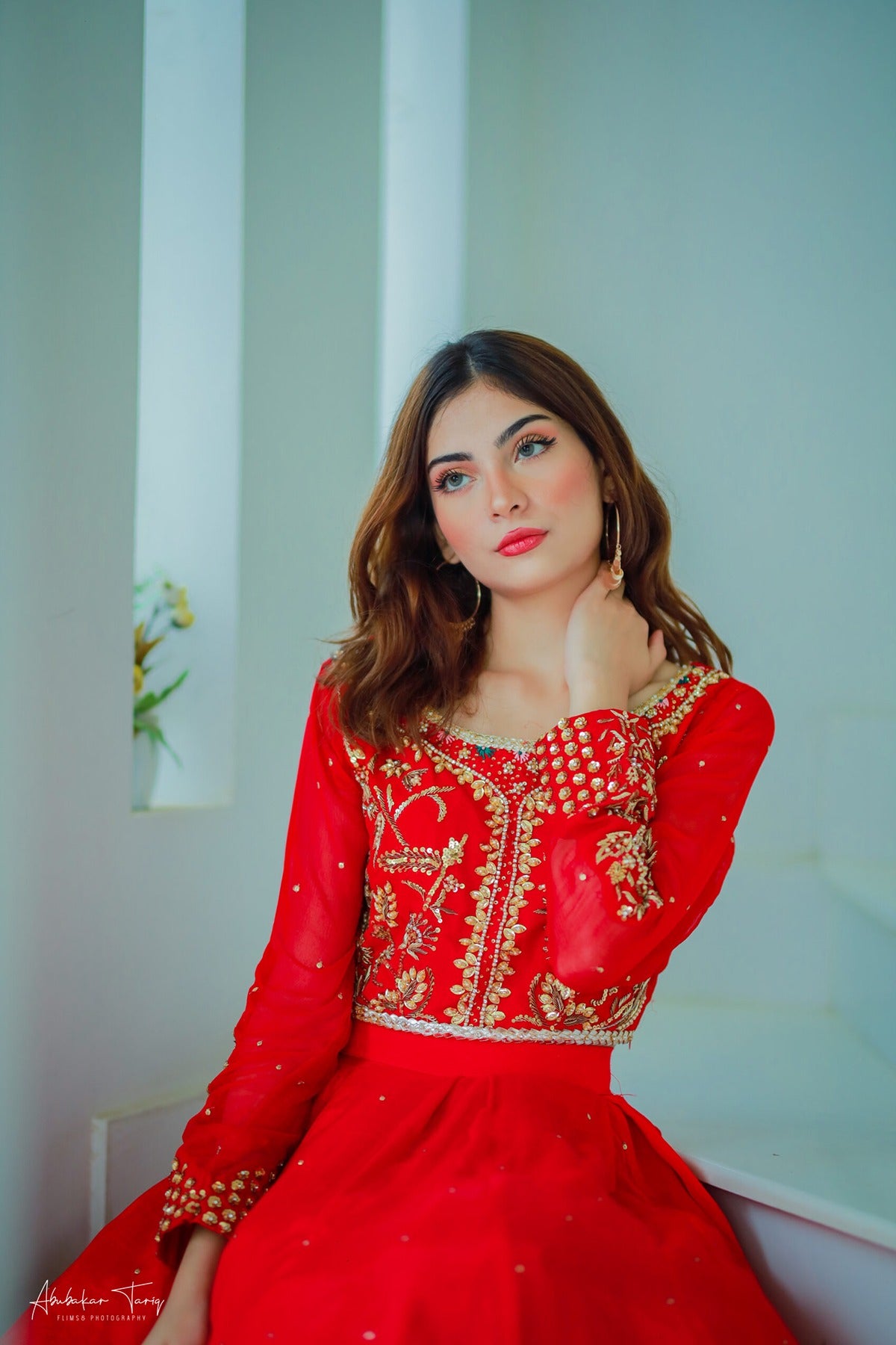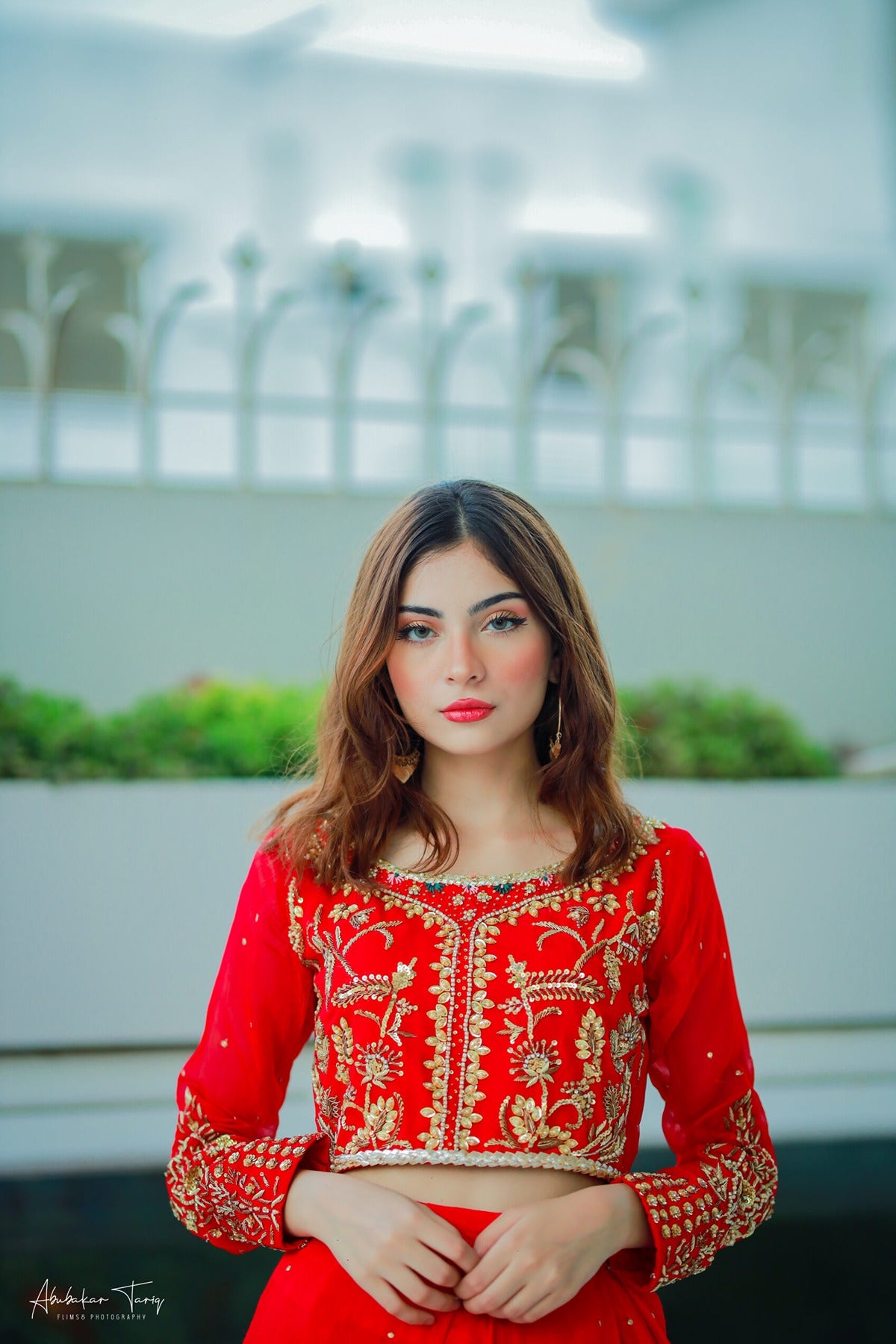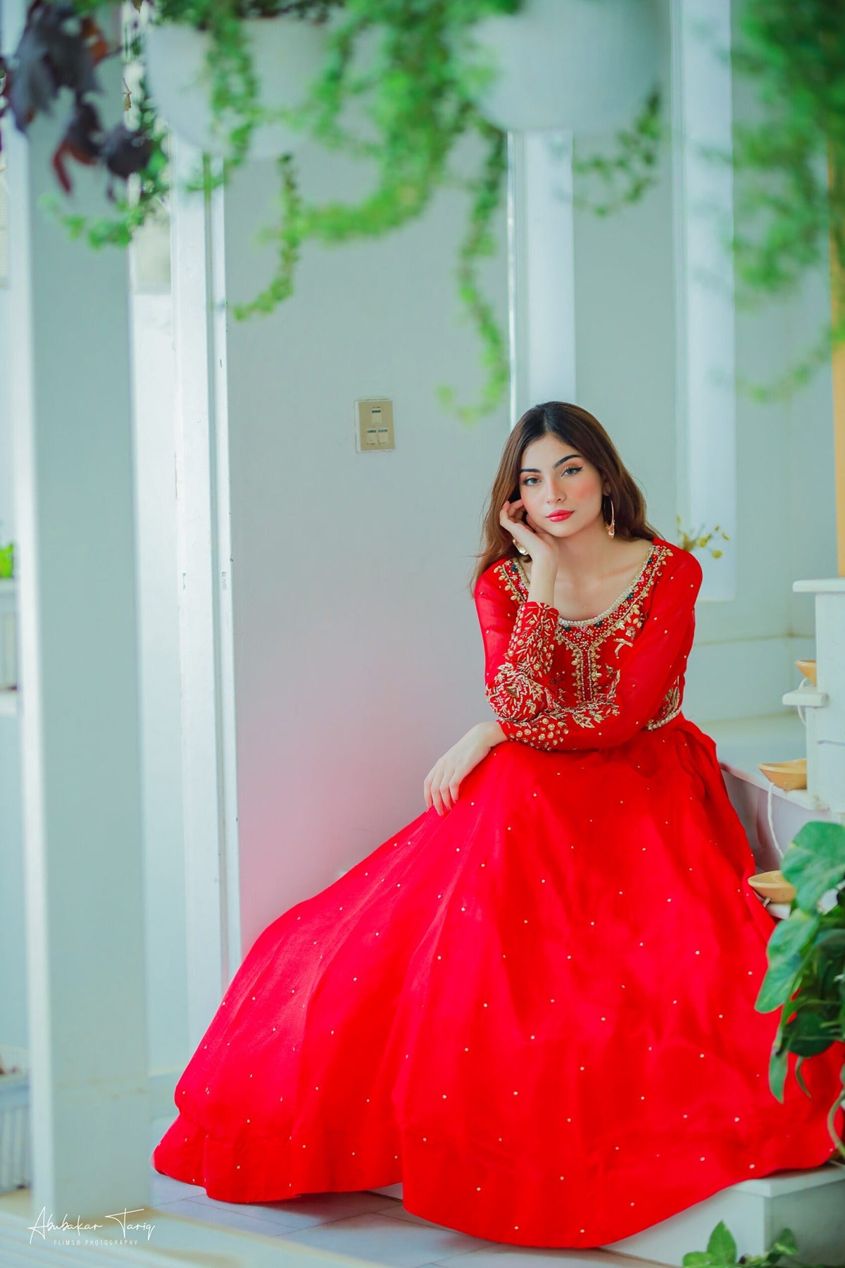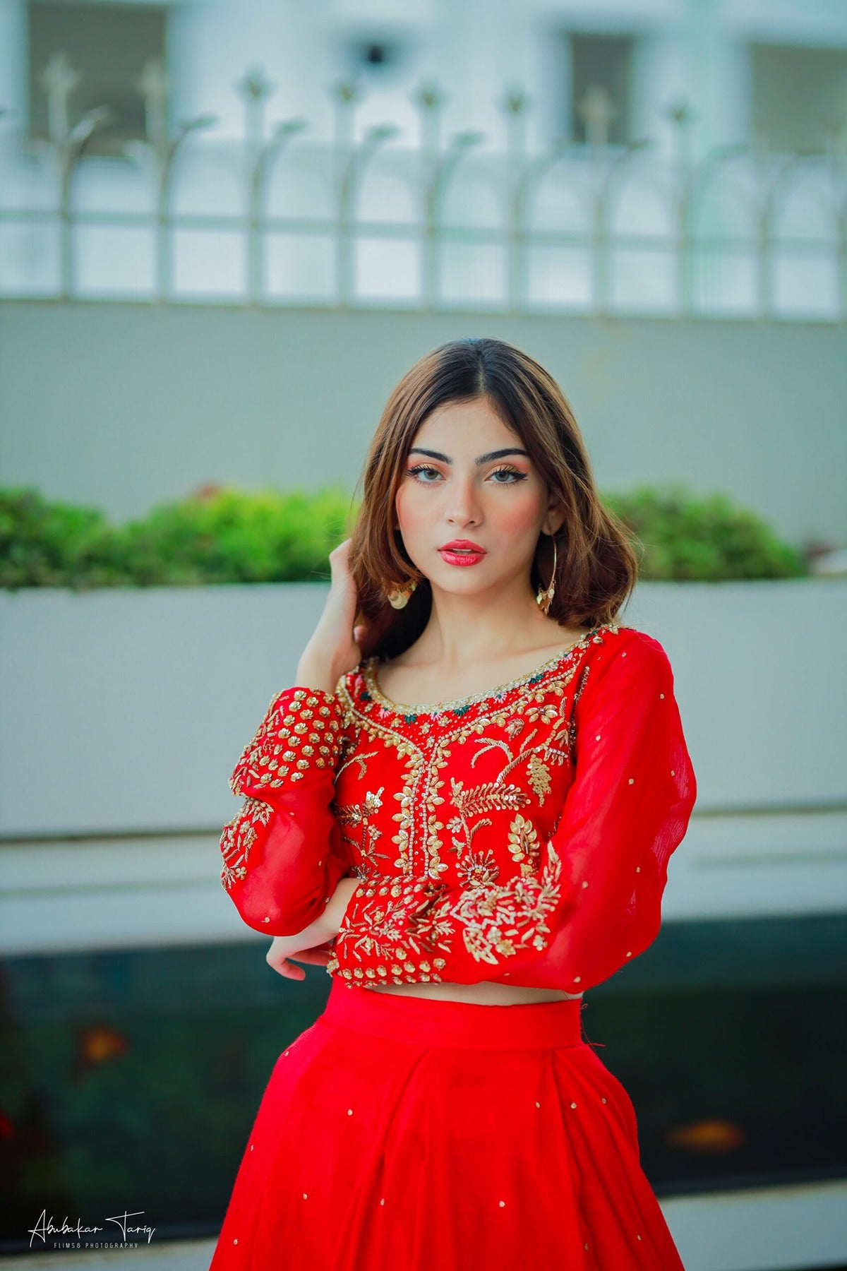 SAAD IBRAHIM | LEHENGA CHOLI | SOLID RED EMBELLISHED LEHENGA CHOLI SET | 2PC