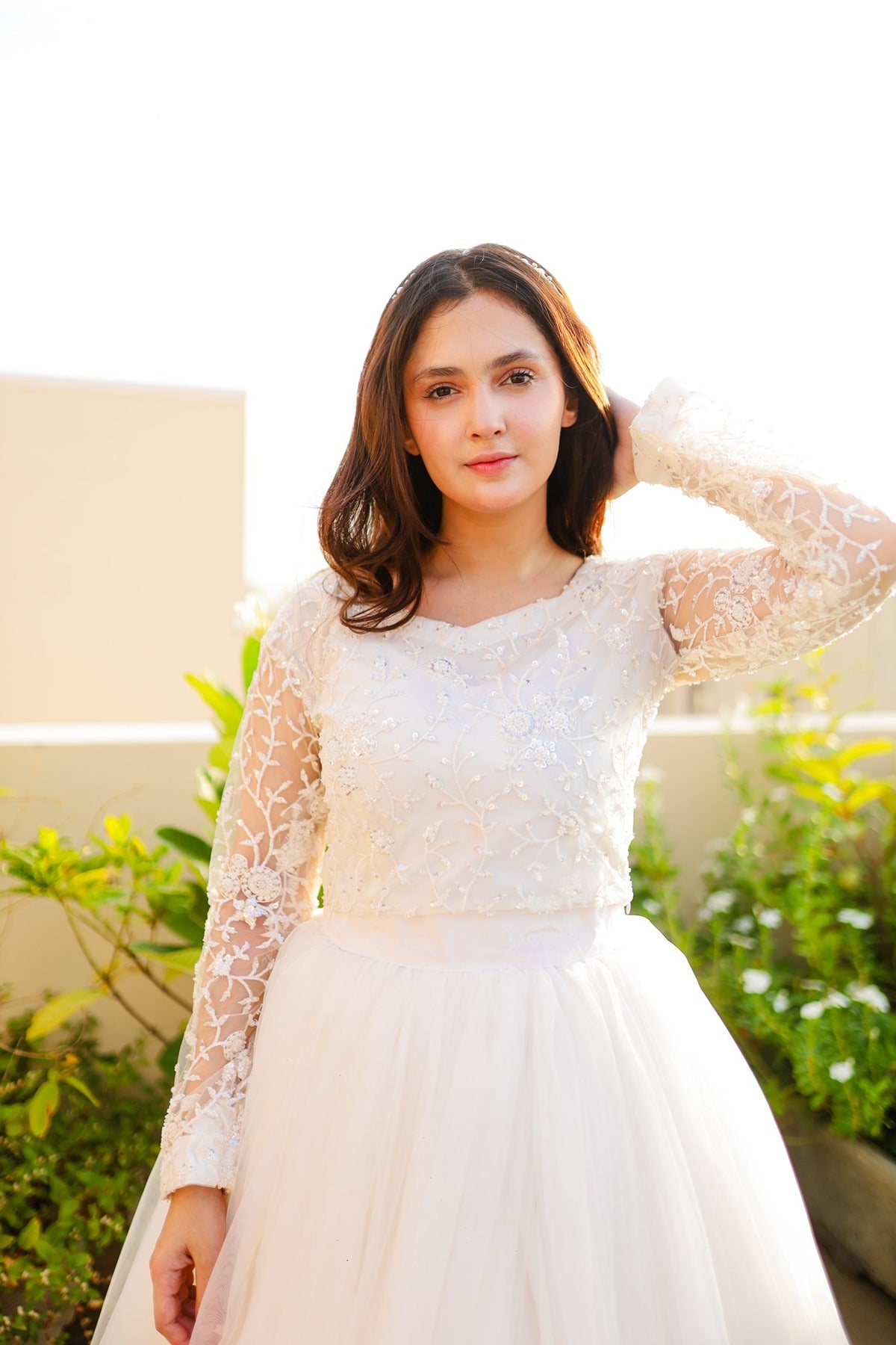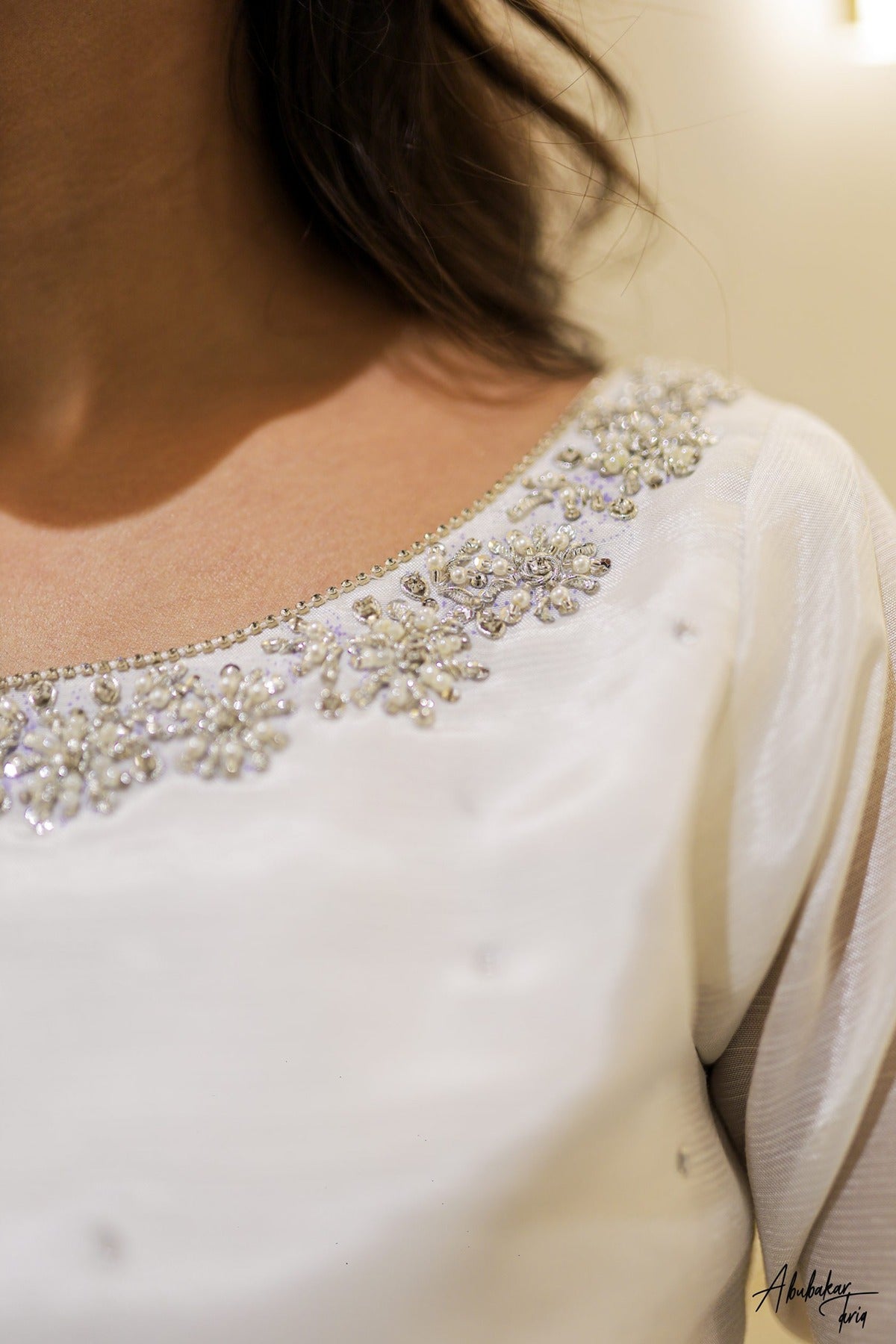 SAAD IBRAHIM | LEHENGA CHOLI | SOLID WHITE HAND EMBELLISHED LEHENGA CHOLI SET