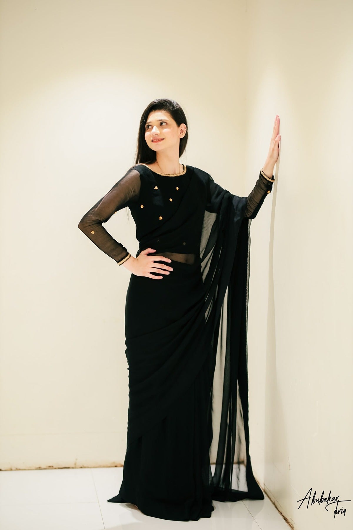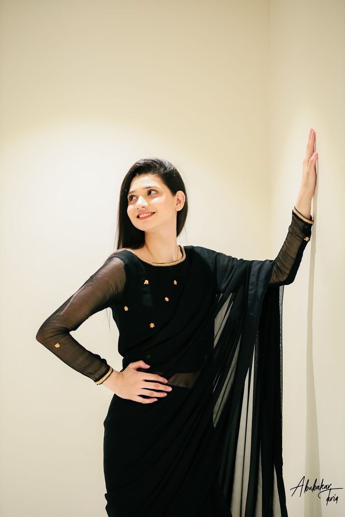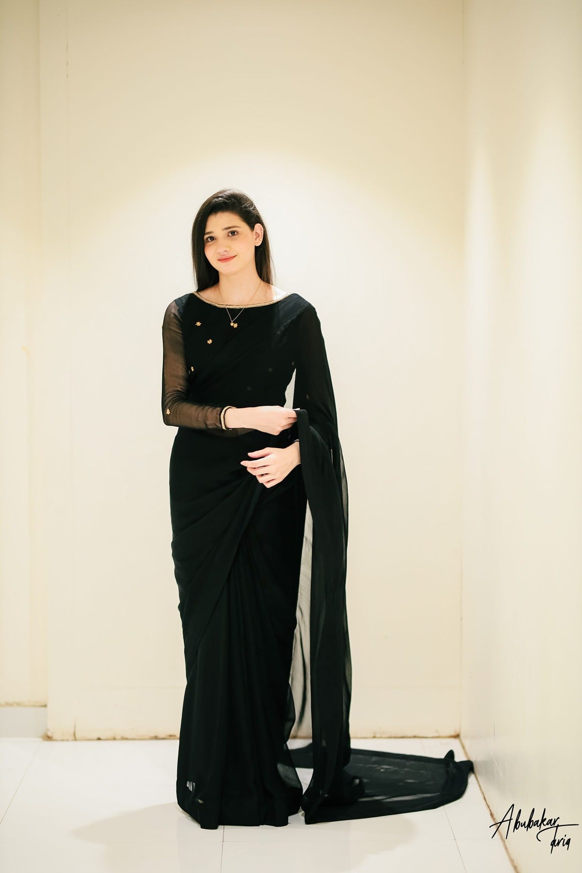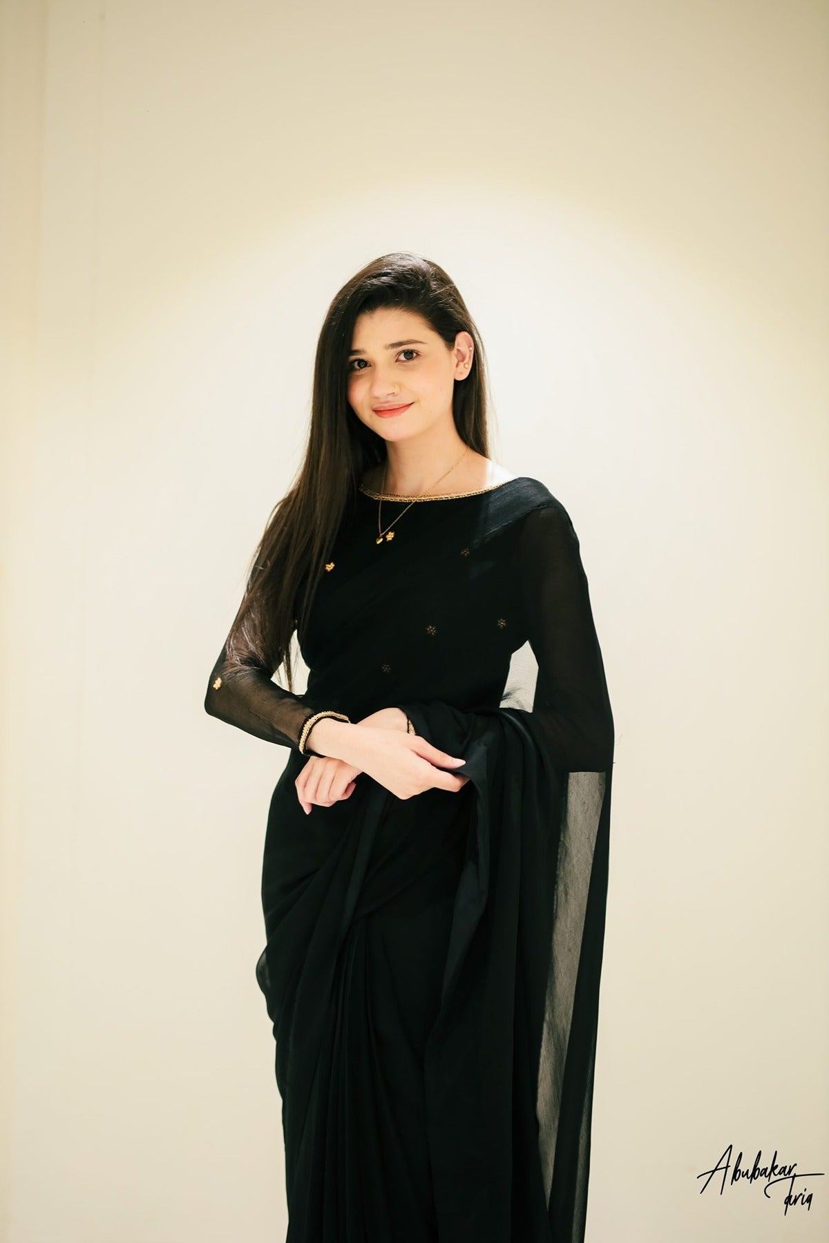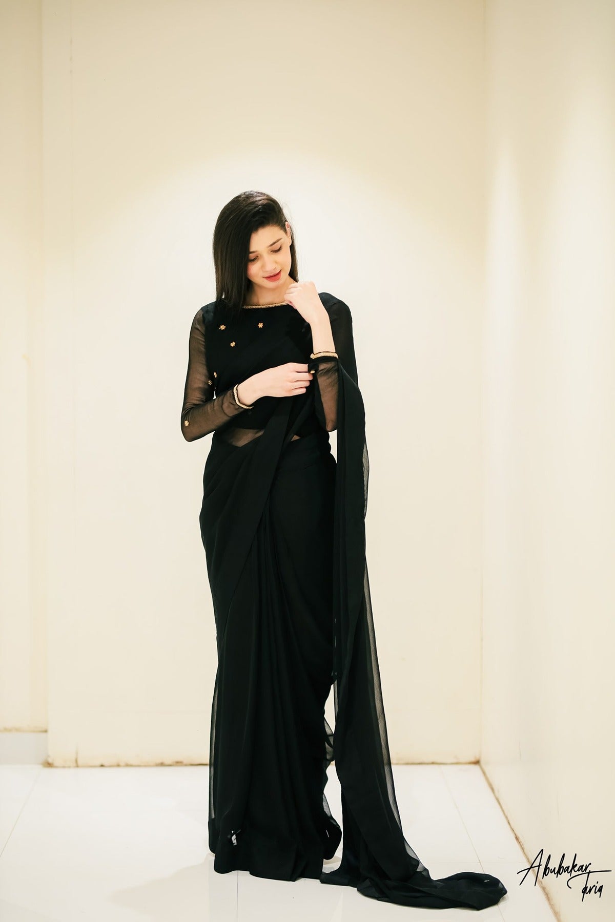 SAAD IBRAHIM | SAREES | SOLID BLACK CHIFFON SAREE WITH HAND EMBELLISHED