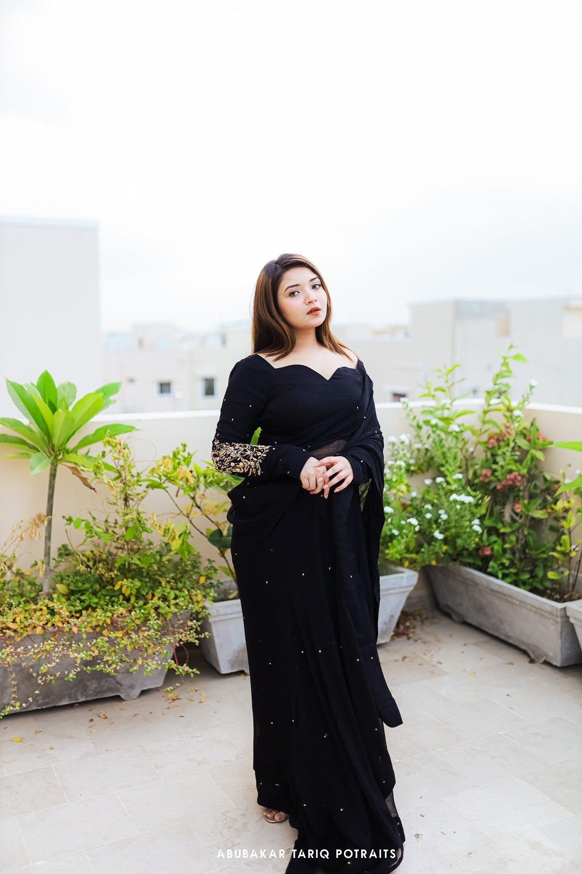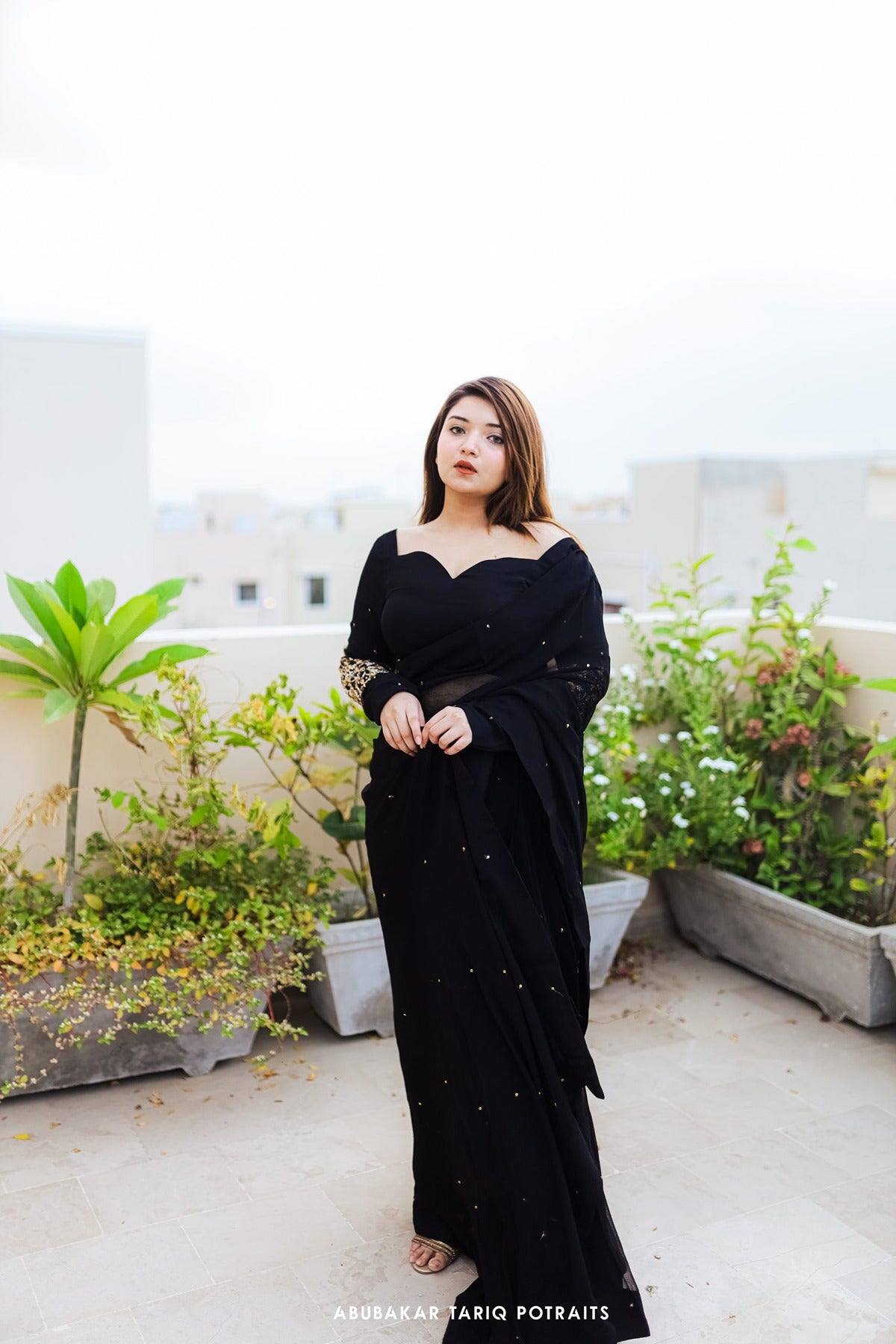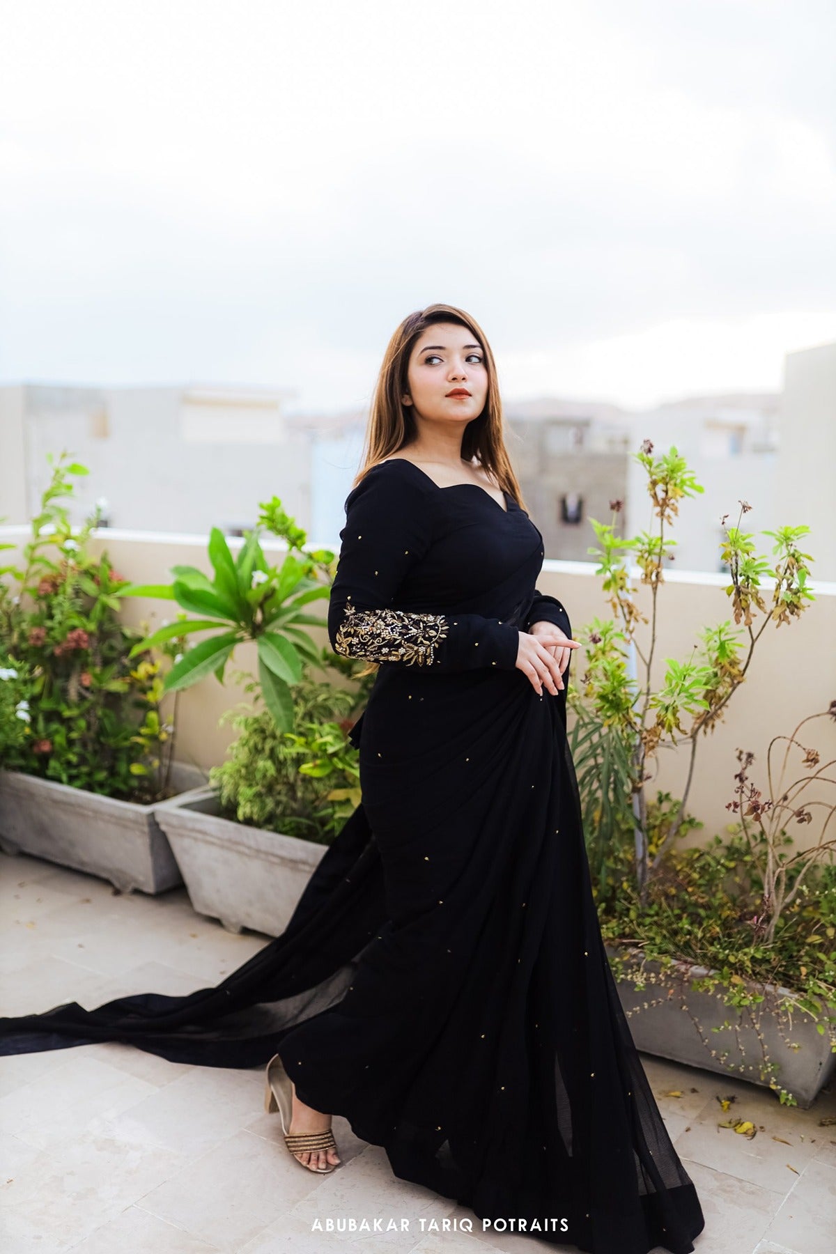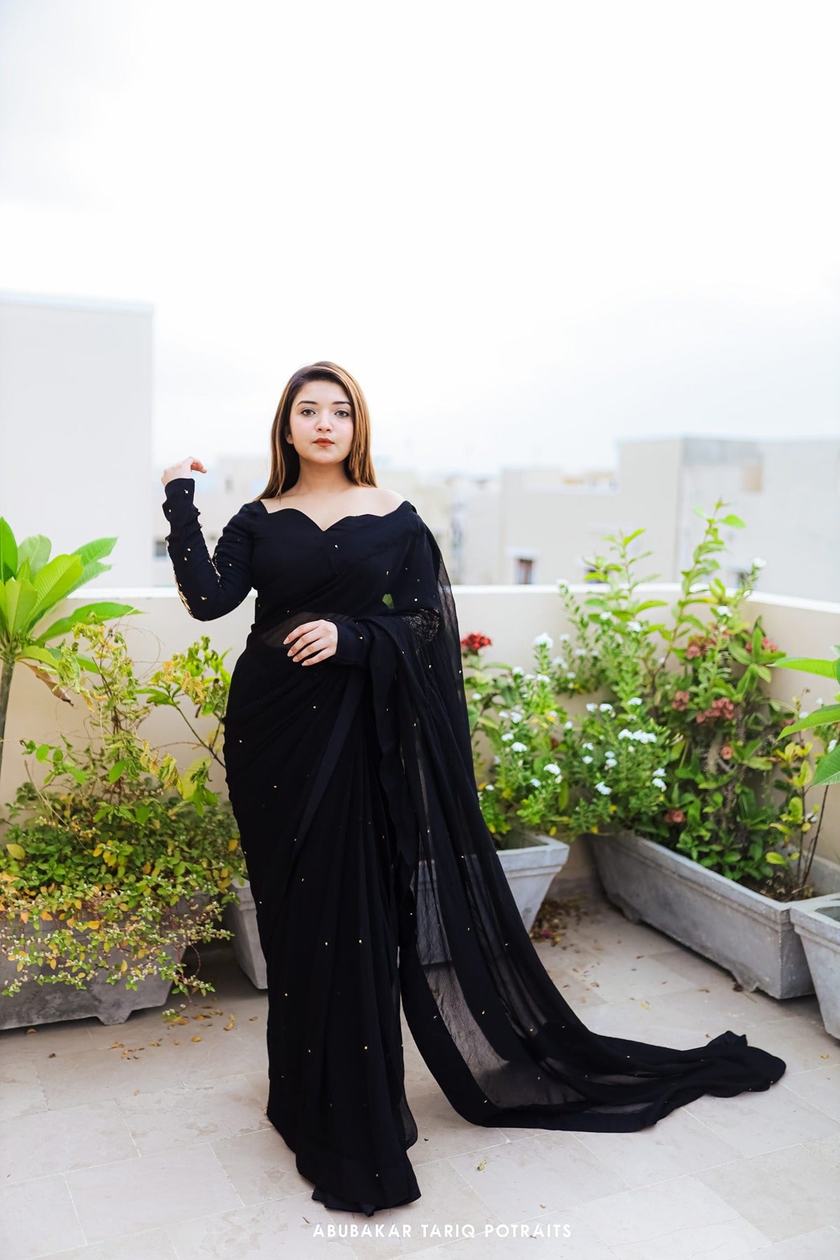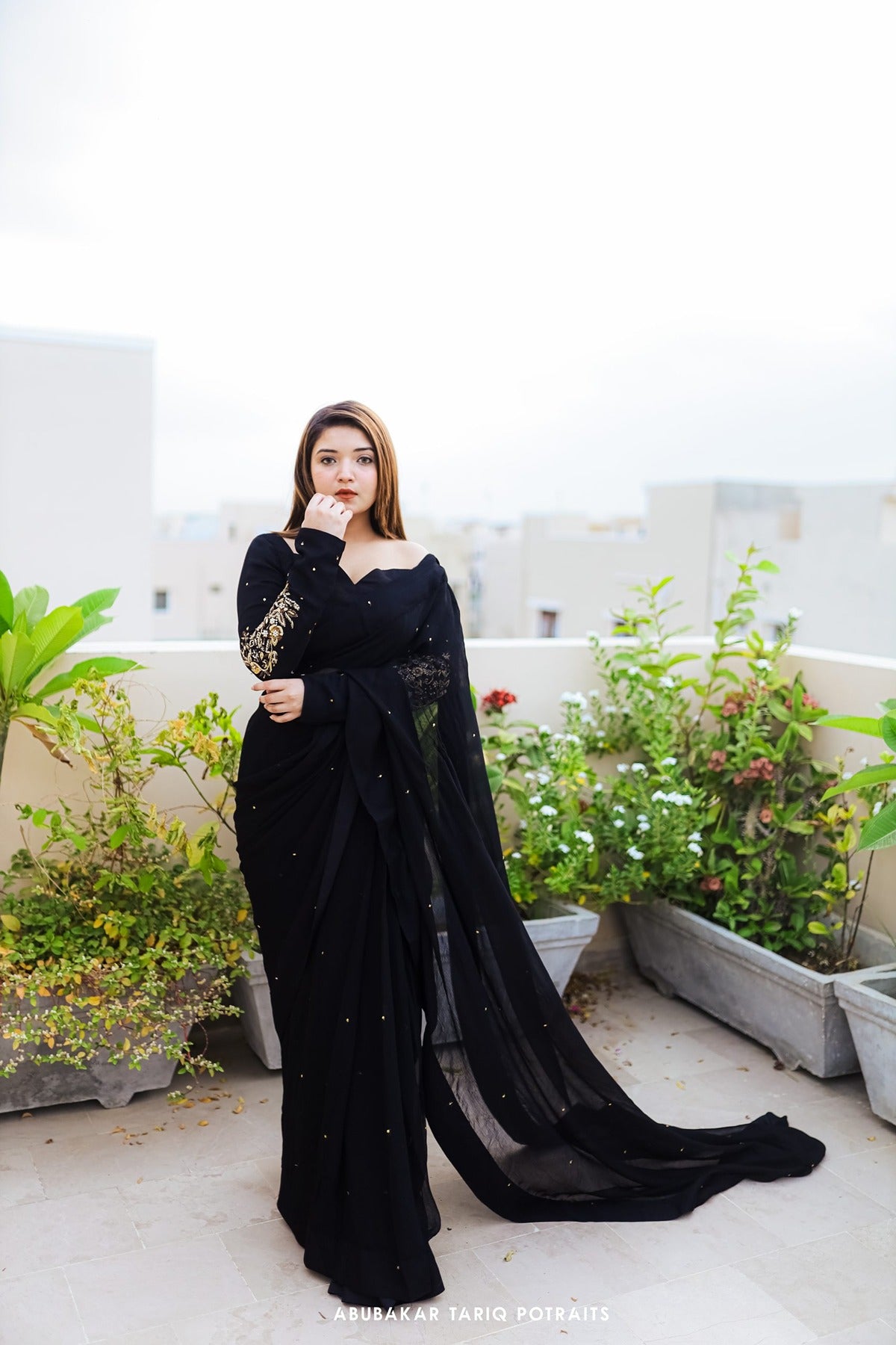 SAAD IBRAHIM | SAREES | SOLID BLACK HAND EMBELLISHED SAREE