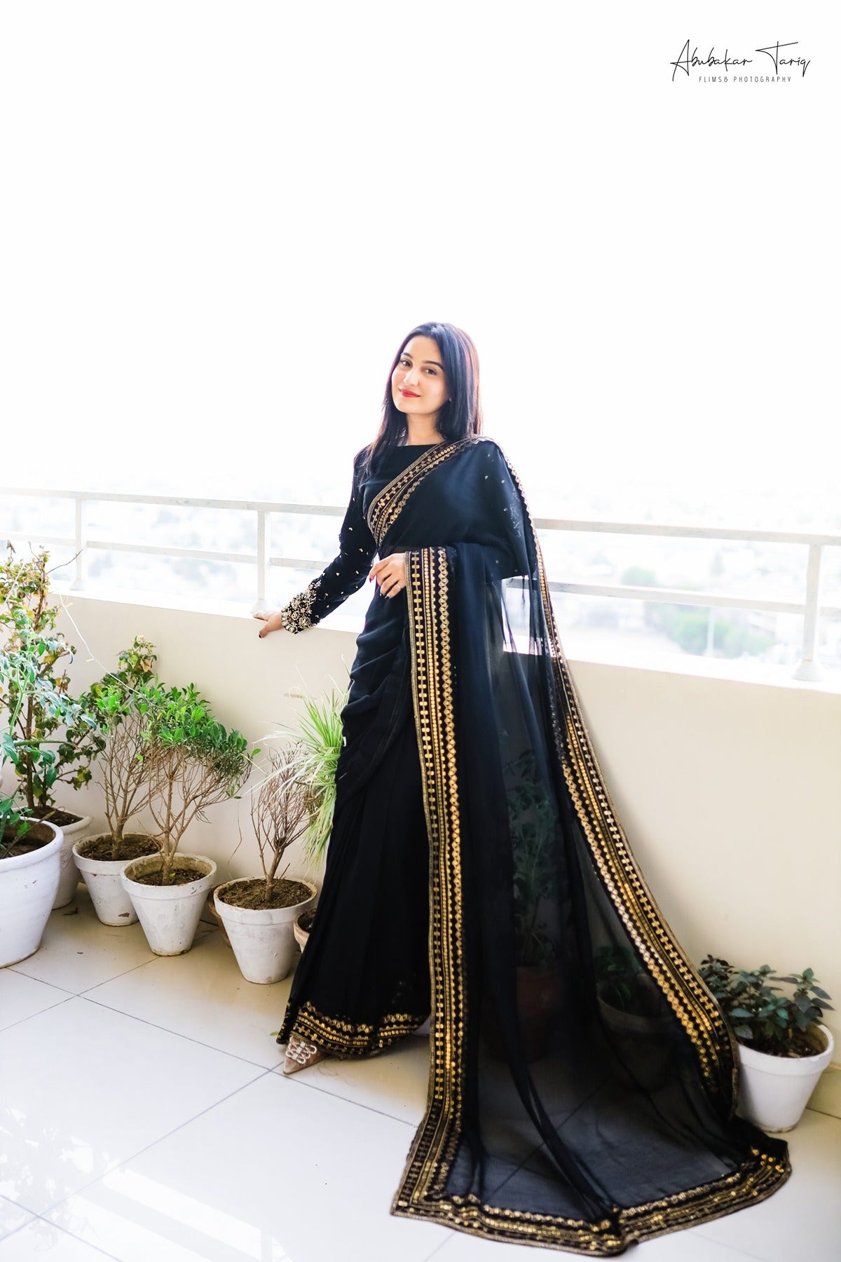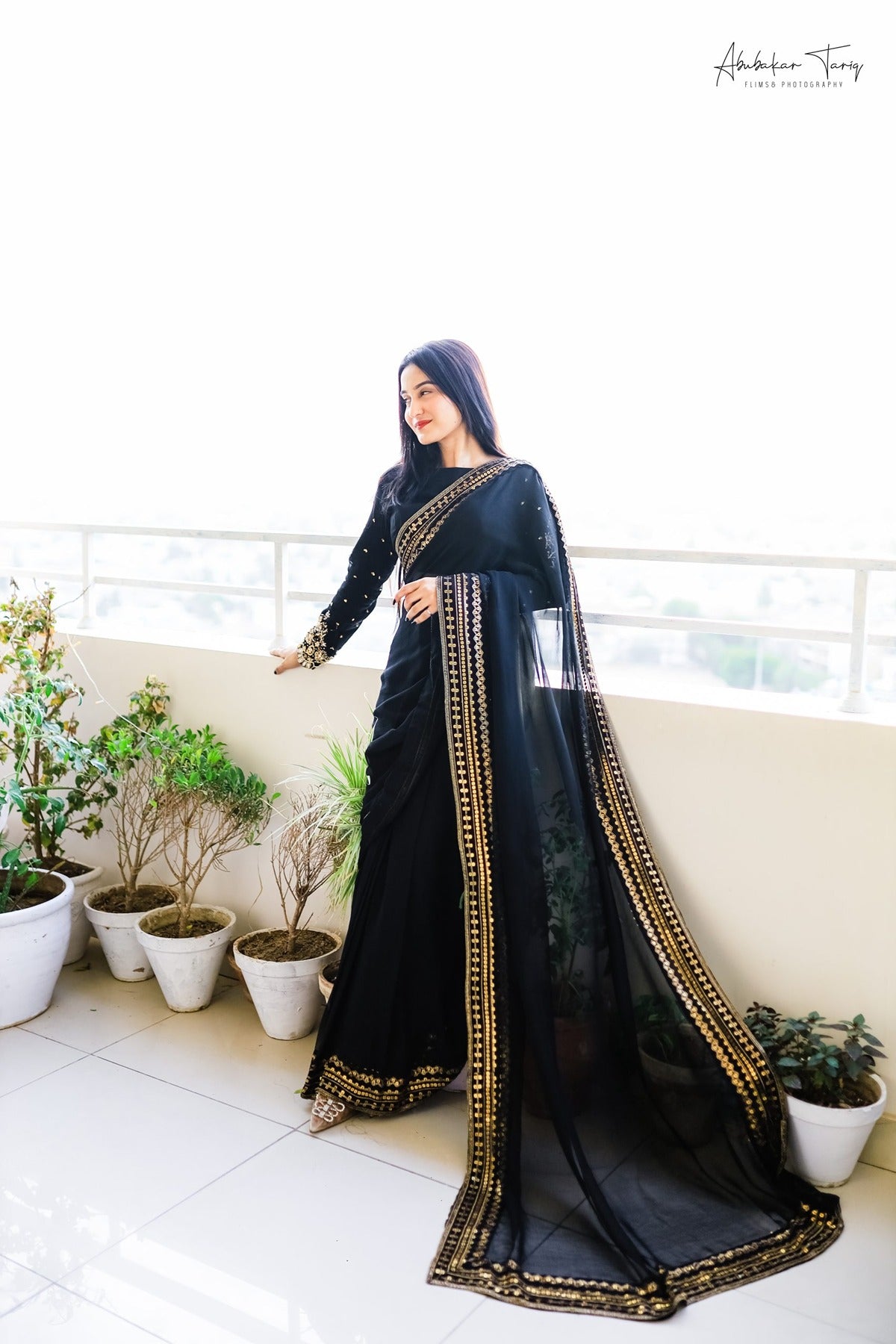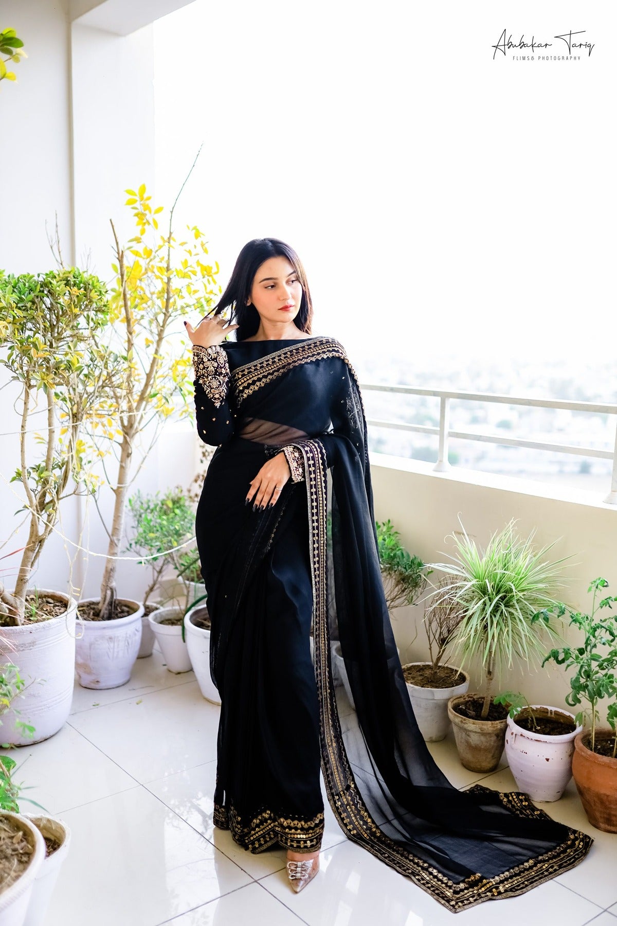 SAAD IBRAHIM | SAREES | SOLID BLACK HAND EMBELLISHED SAREE