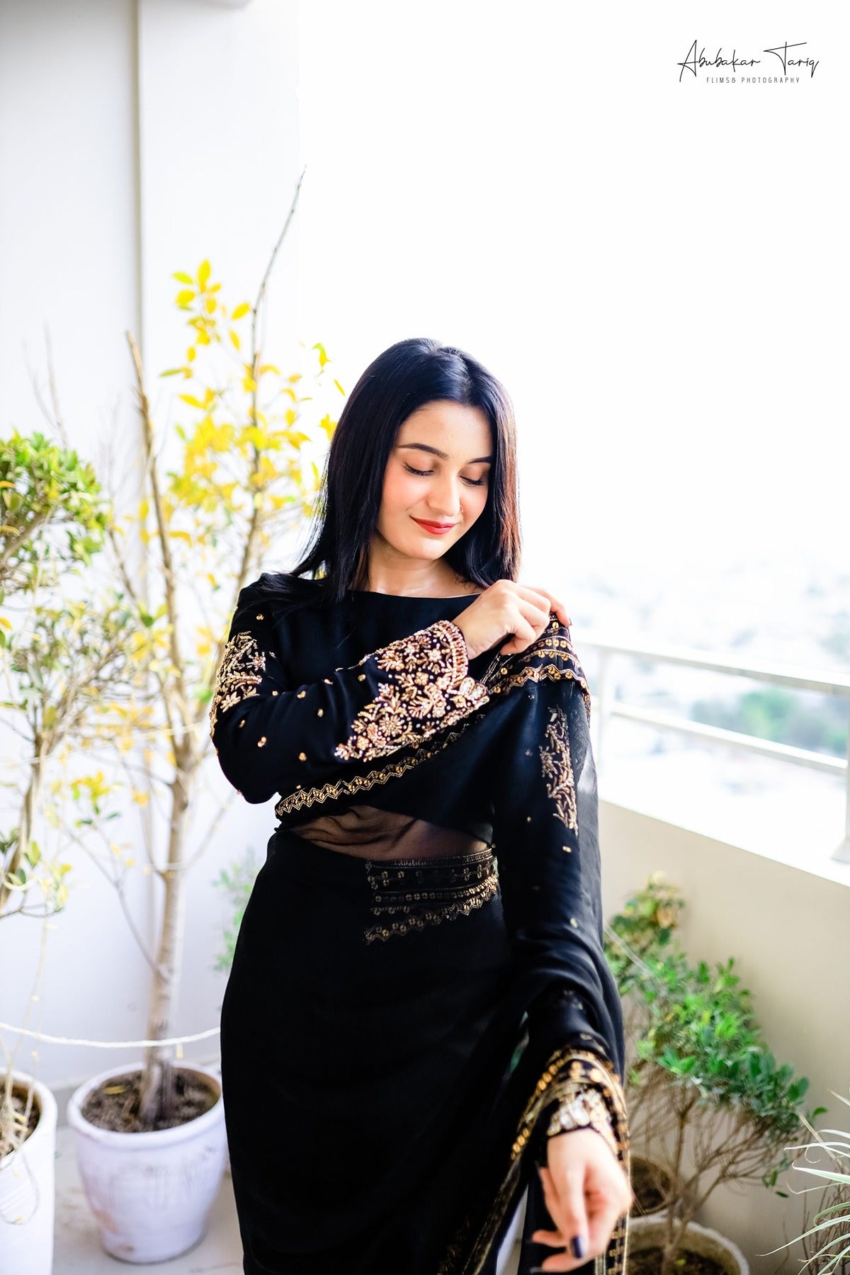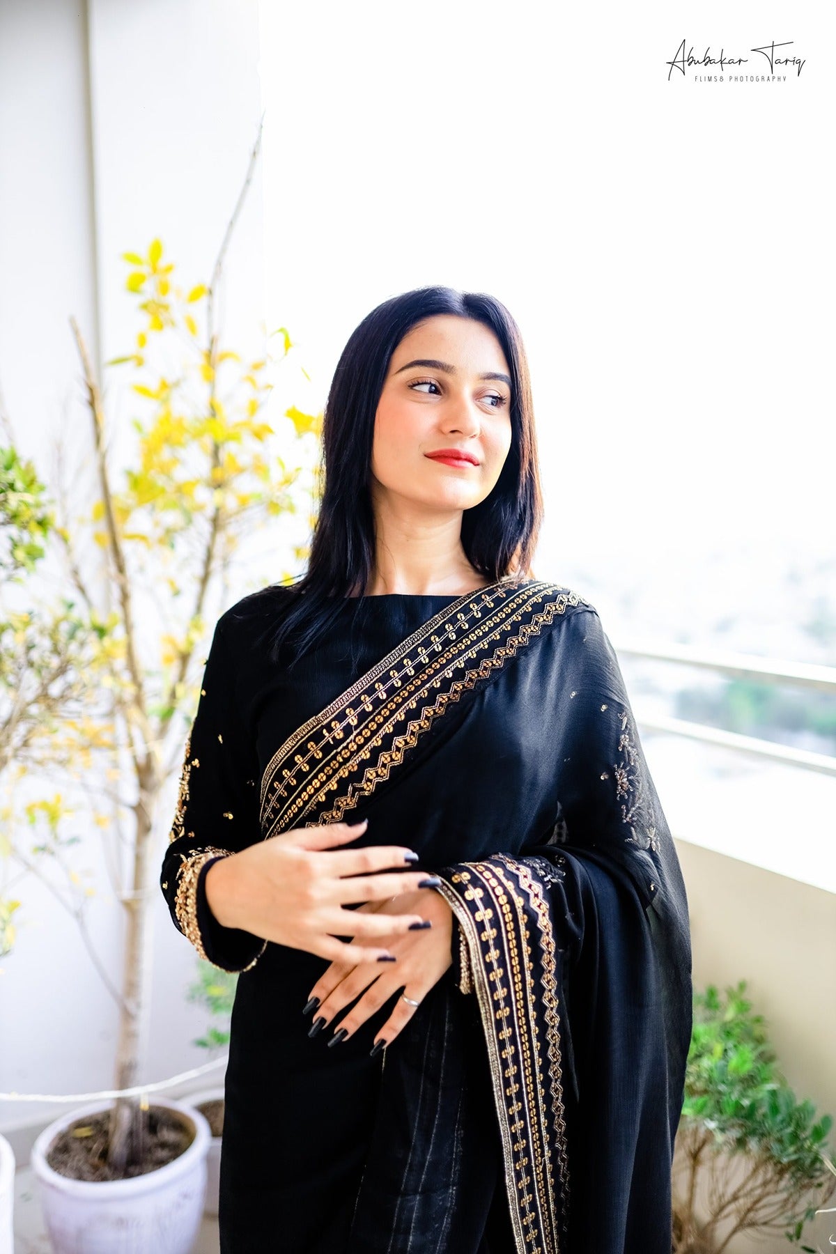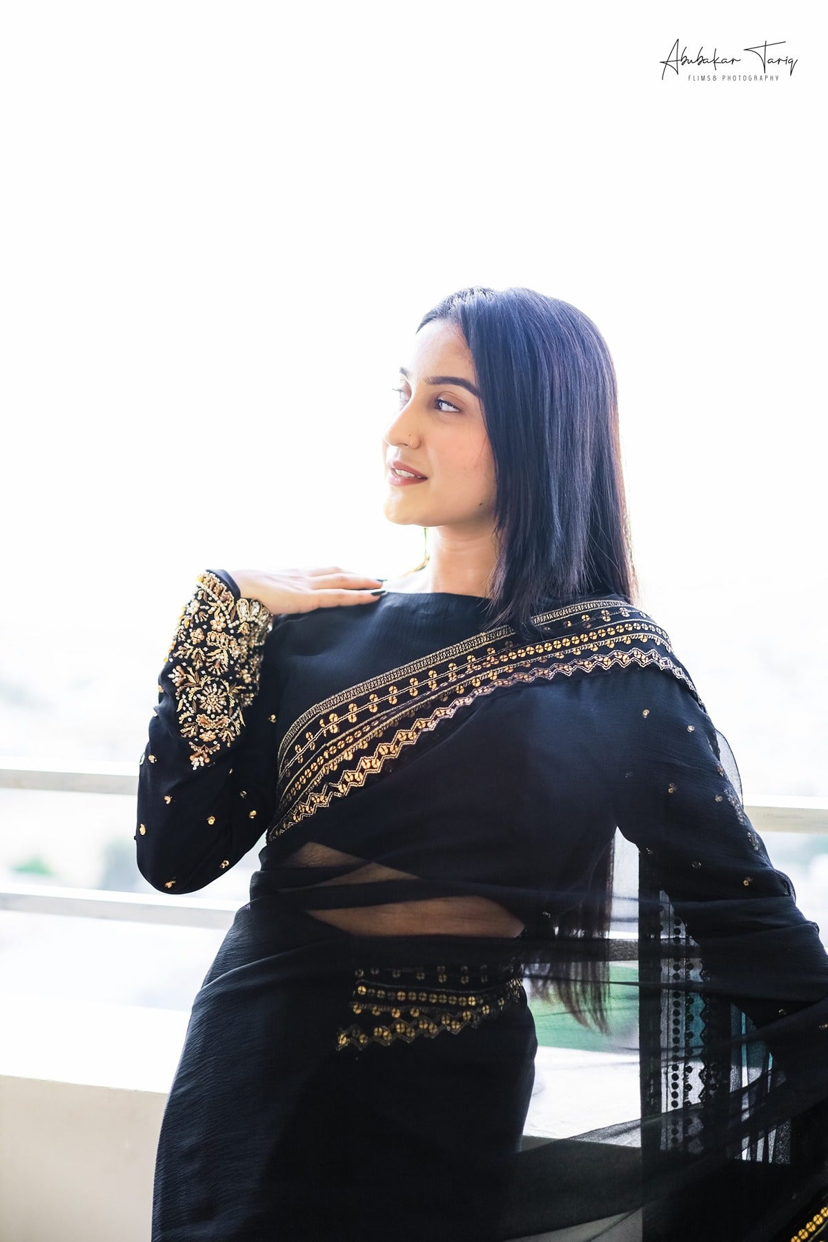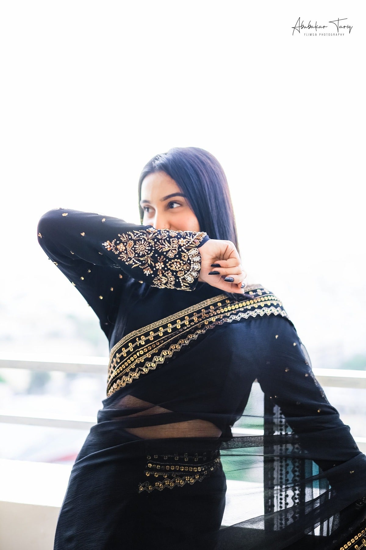 SAAD IBRAHIM | SAREES | SOLID BLACK HAND EMBELLISHED SAREE