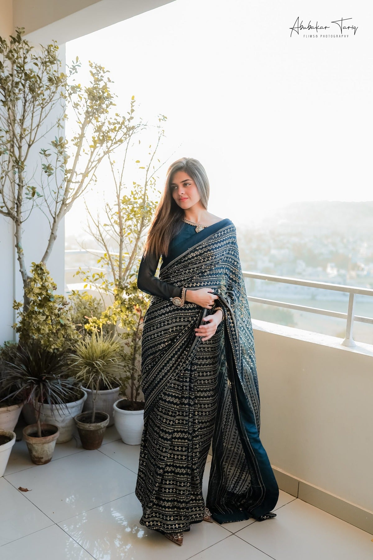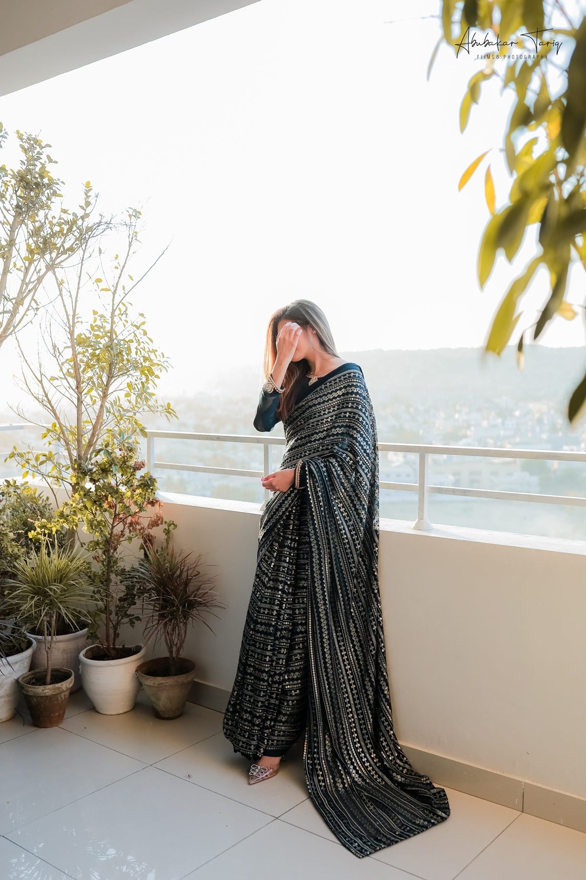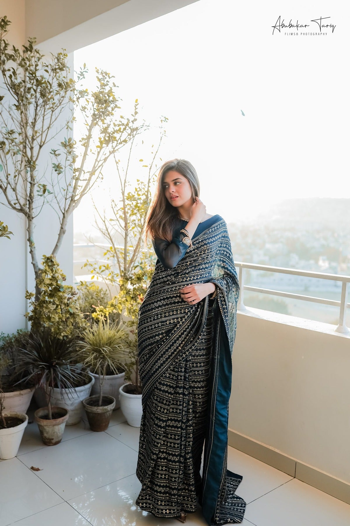 SAAD IBRAHIM | SAREES | SOLID GREEN CHIKANKARI SAREE