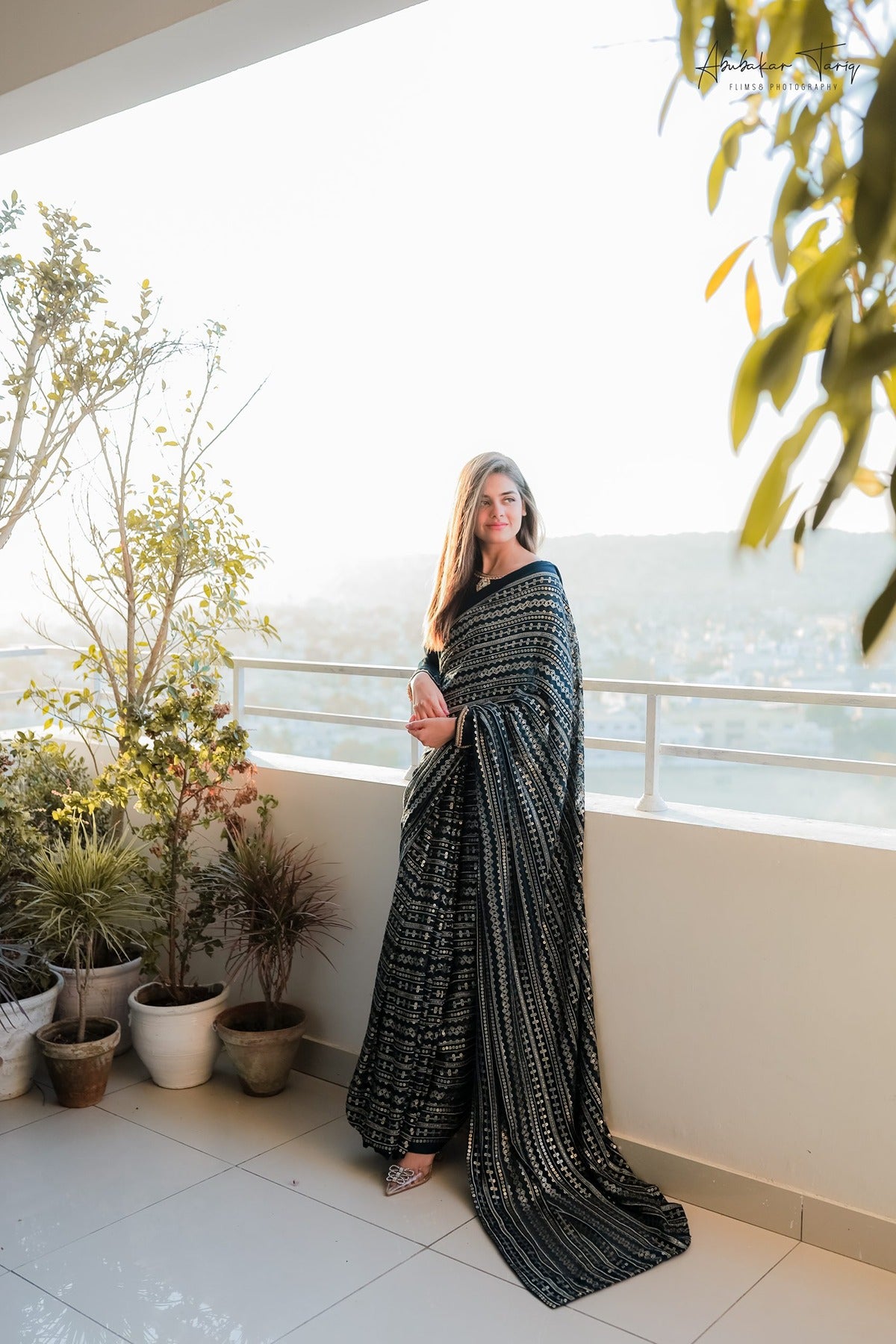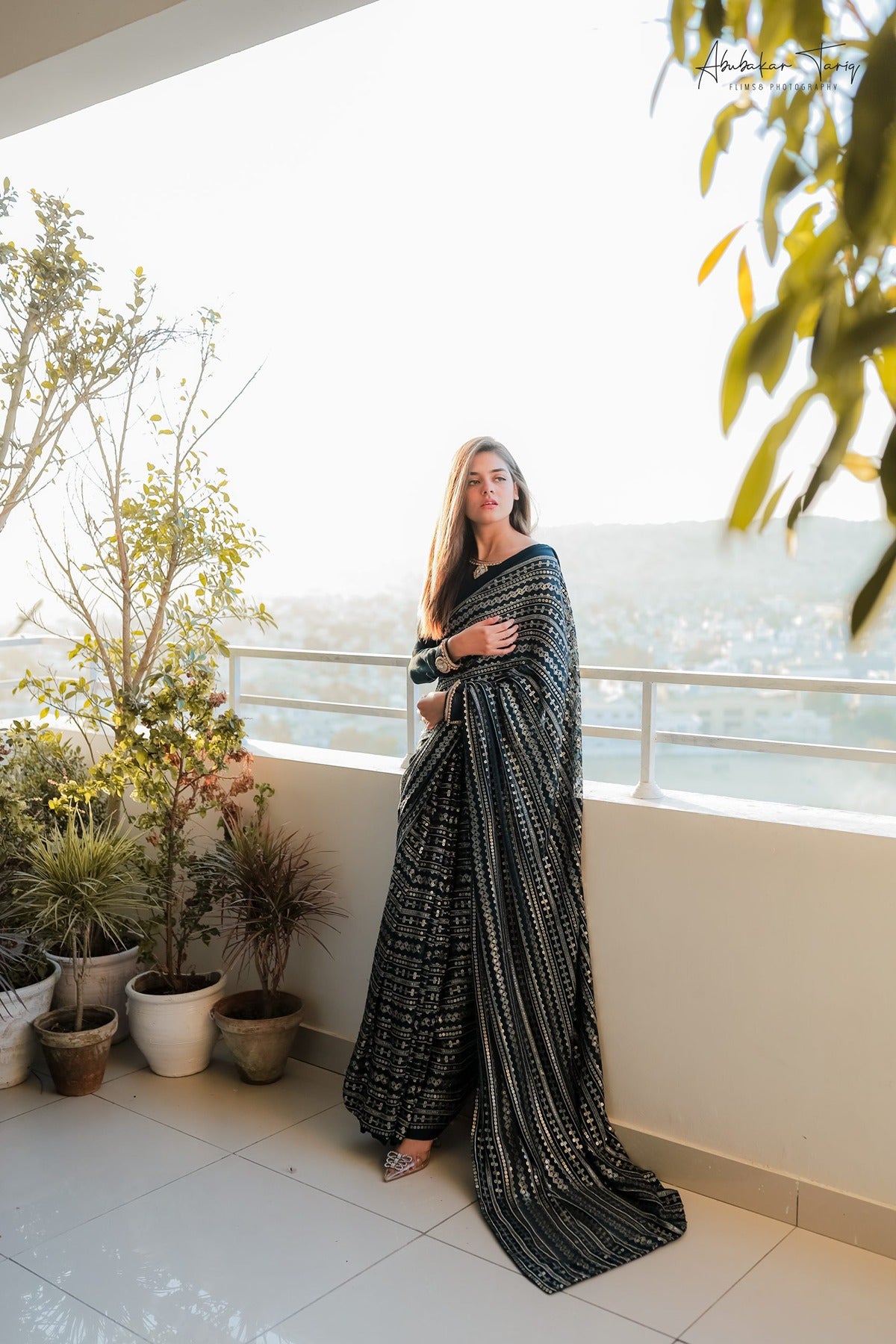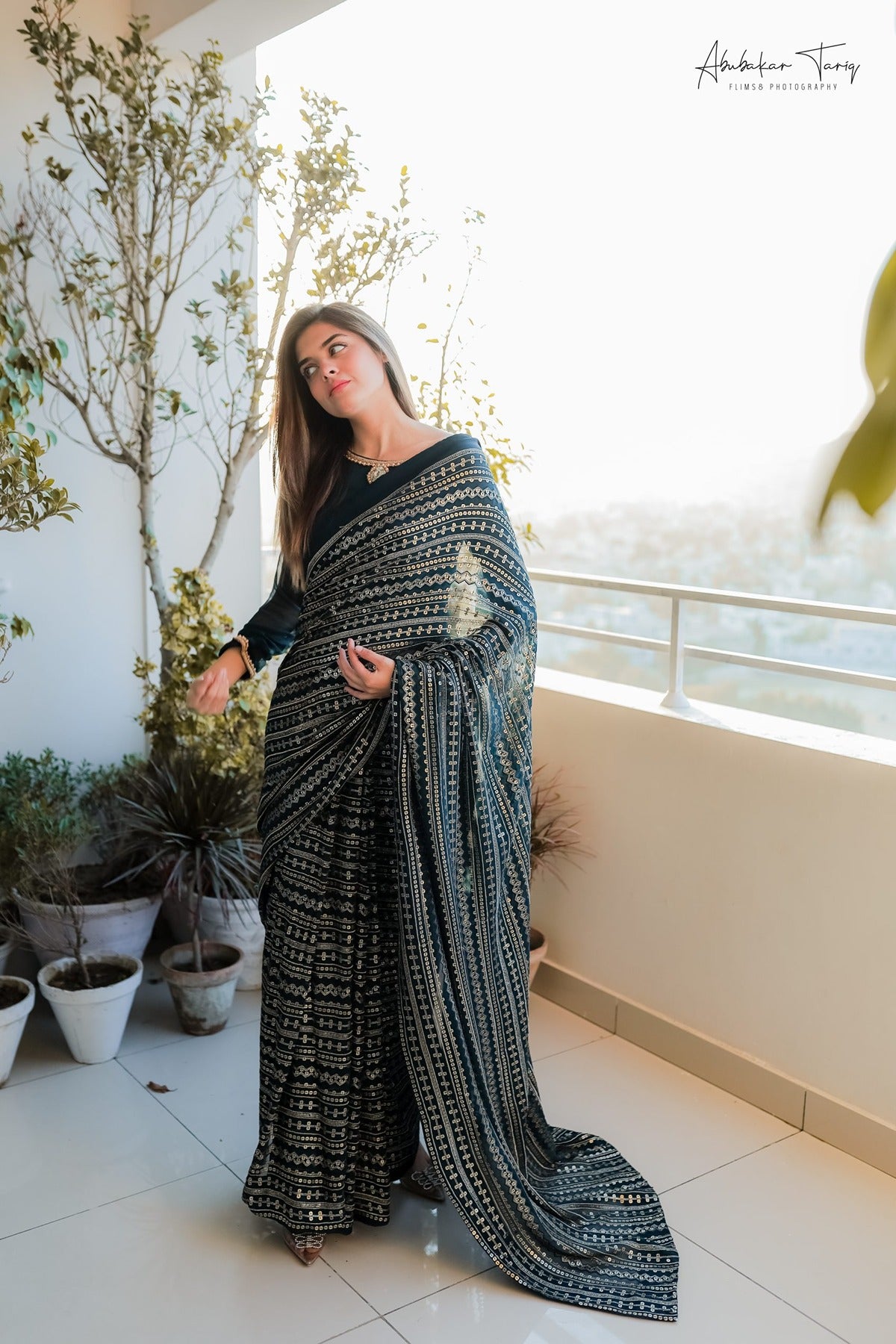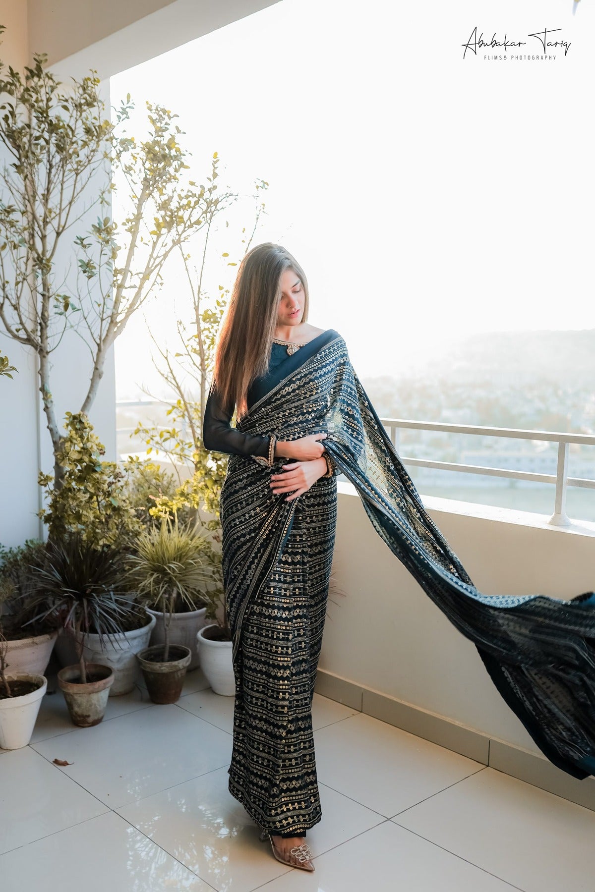SAAD IBRAHIM | SAREES | SOLID GREEN CHIKANKARI SAREE