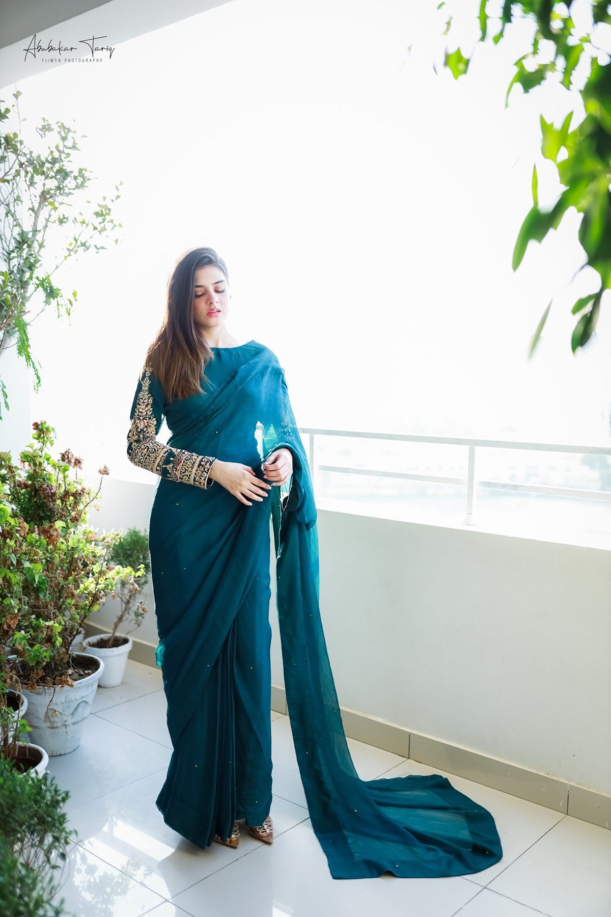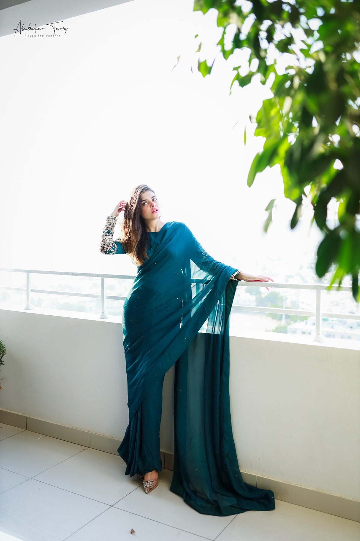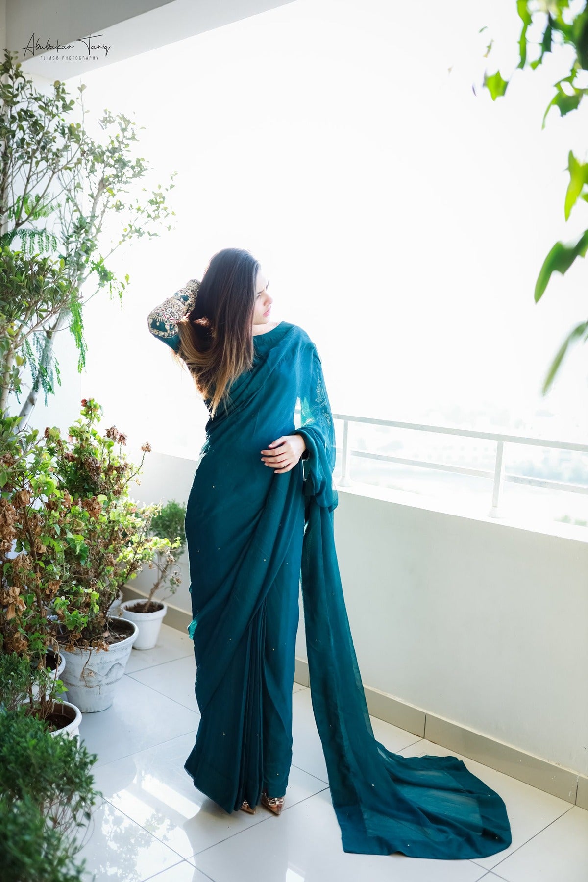 SAAD IBRAHIM | SAREES | SOLID GREEN HAND EMBELLISHED SAREE