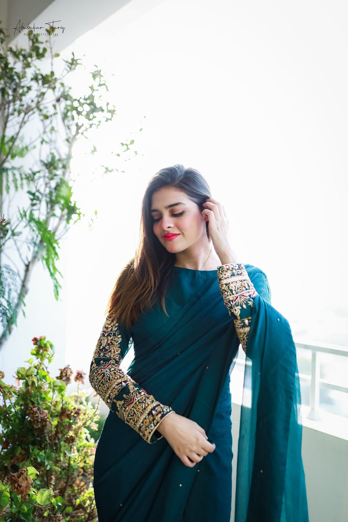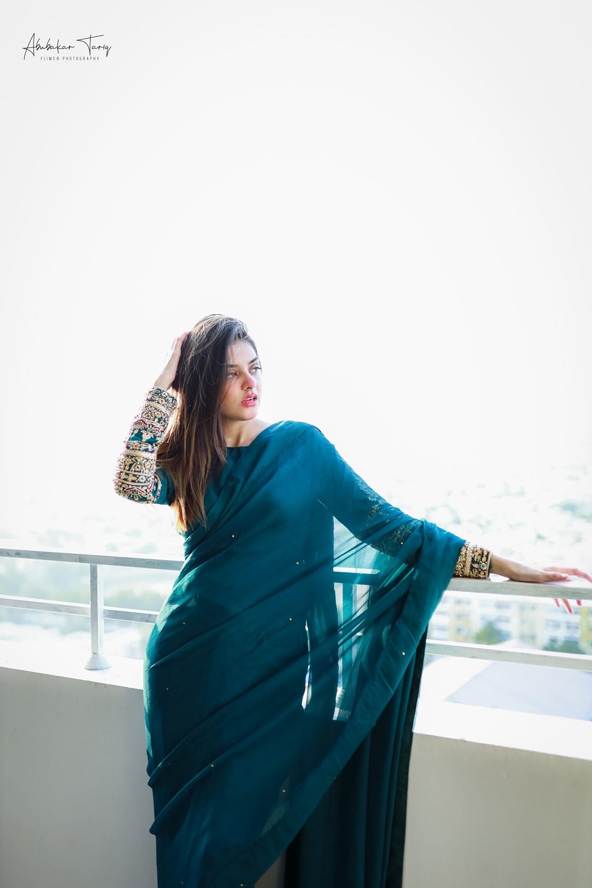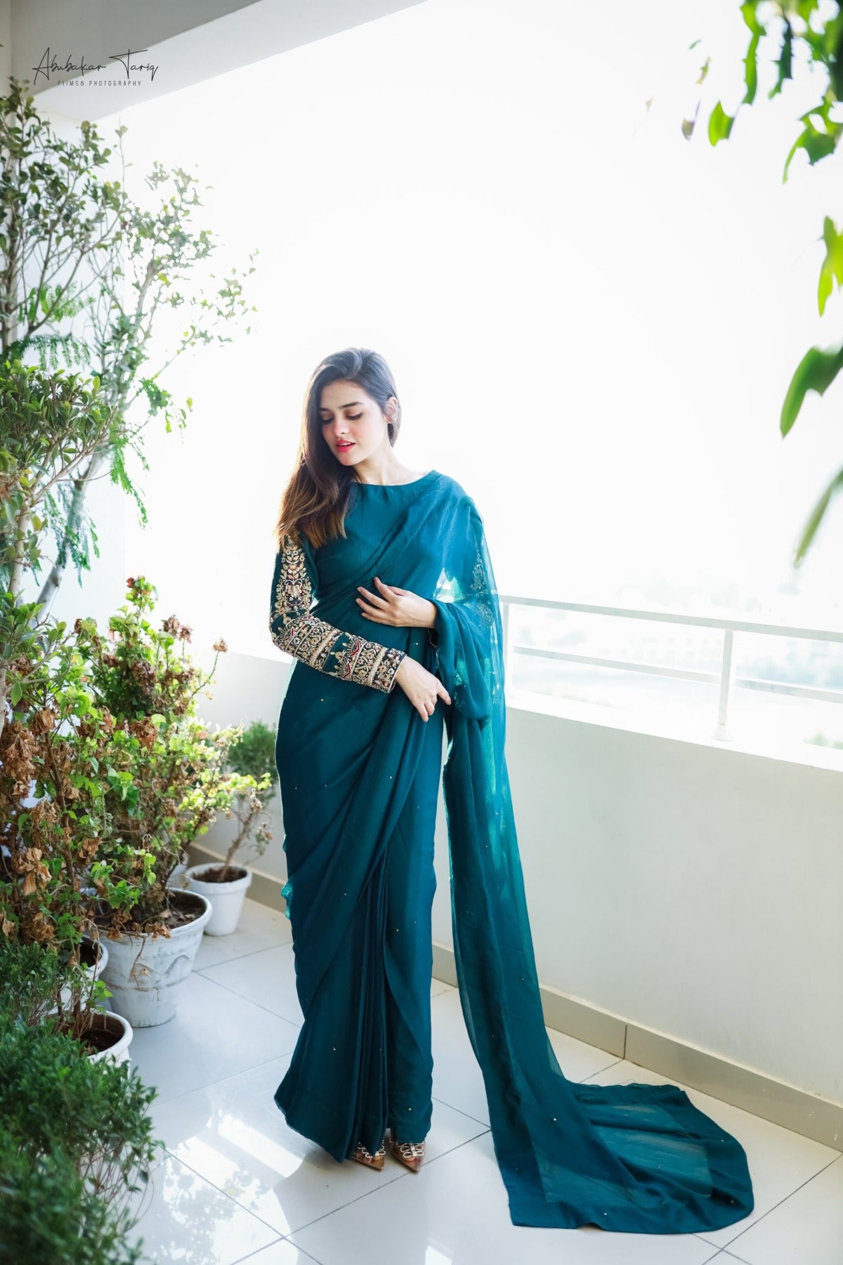 SAAD IBRAHIM | SAREES | SOLID GREEN HAND EMBELLISHED SAREE