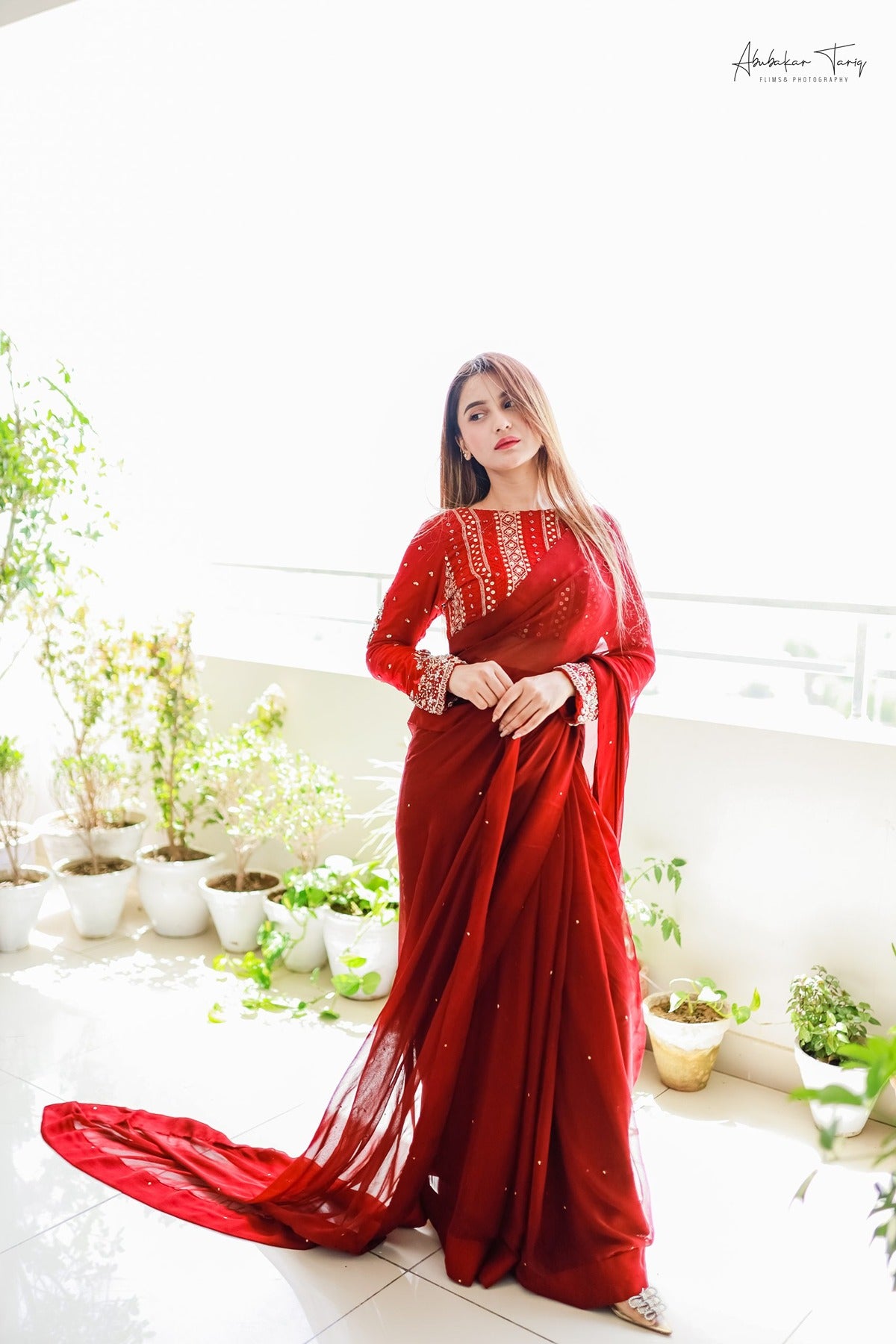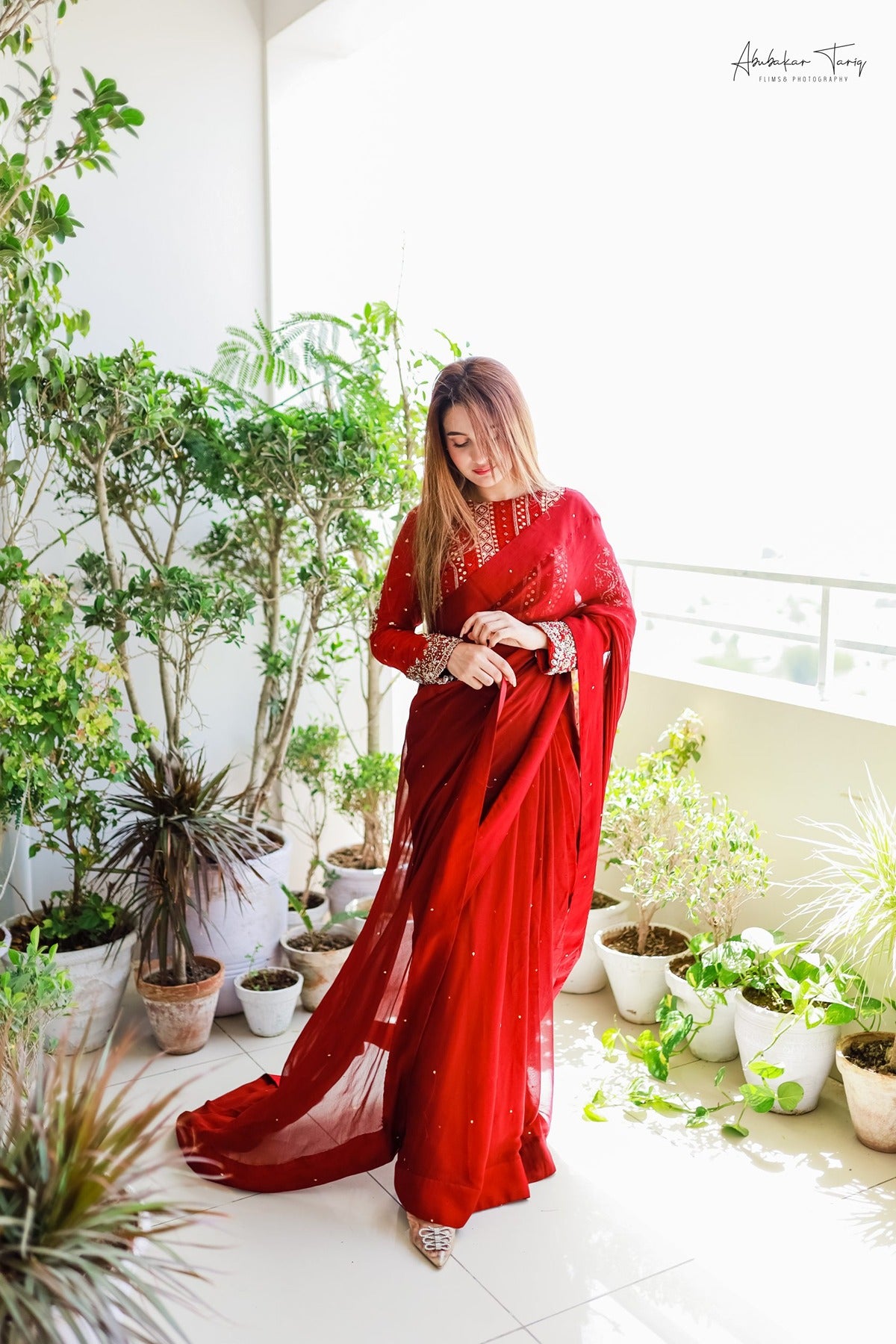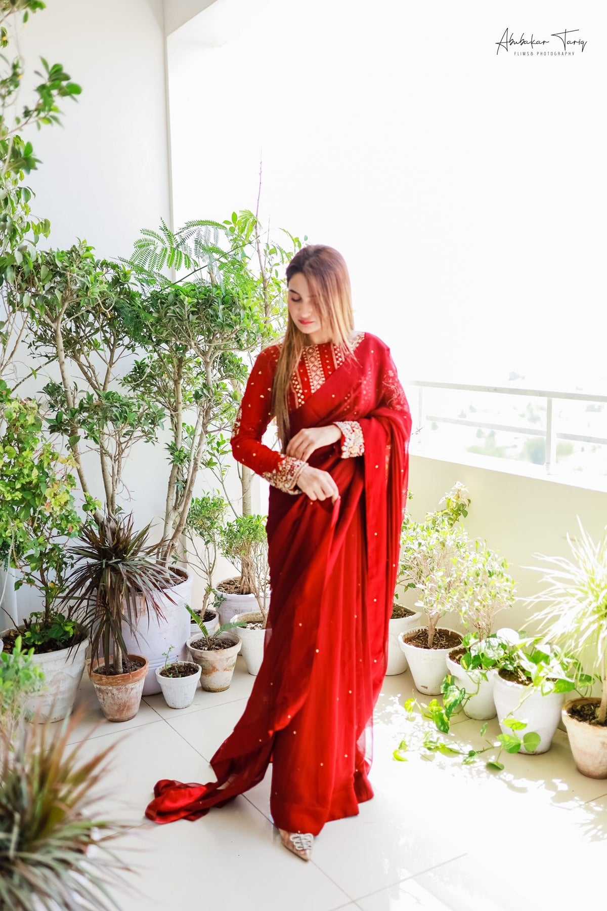 SAAD IBRAHIM | SAREES | SOLID MAROON HAND EMBELLISHED SAREE