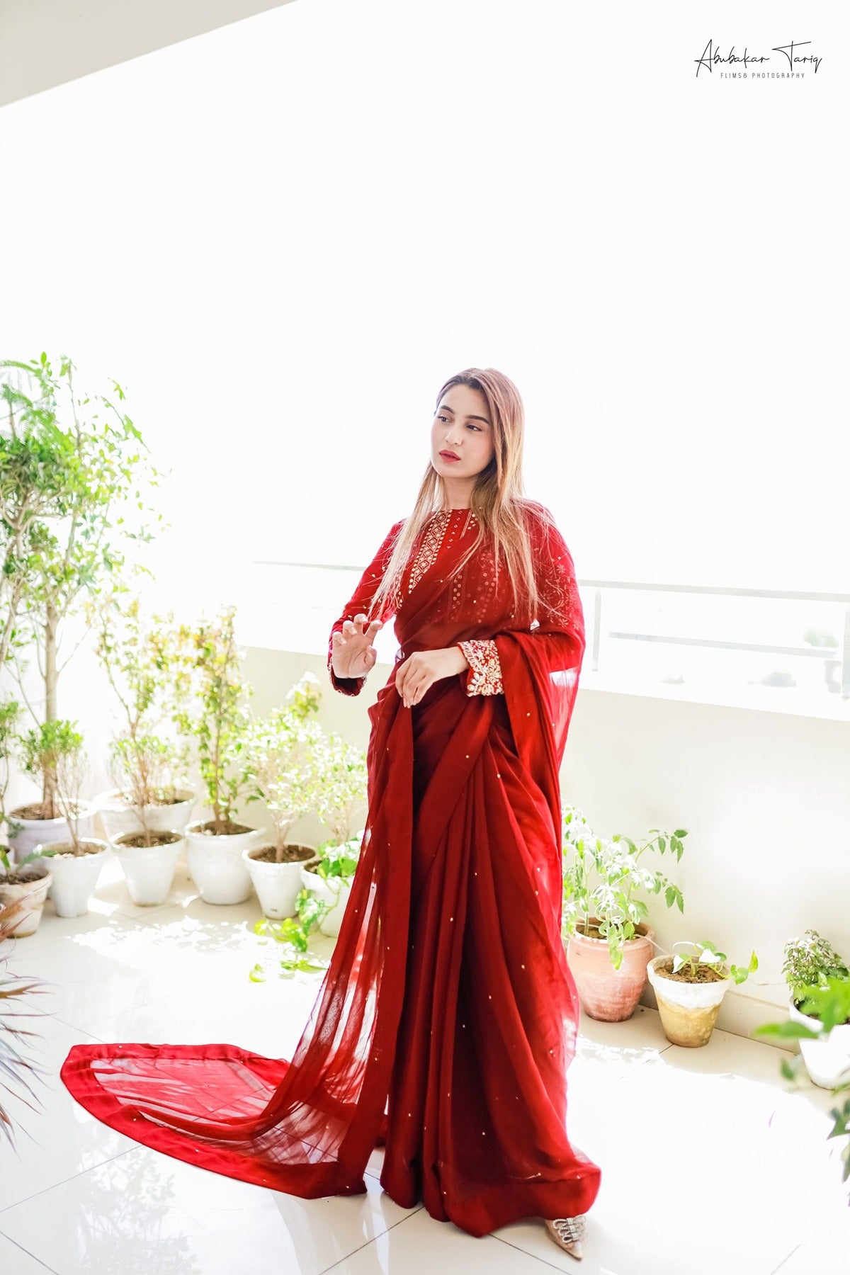 - Fabric: Chiffon Saree/ Chikankari Blouse