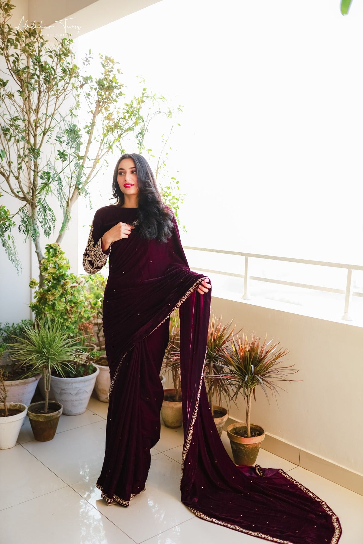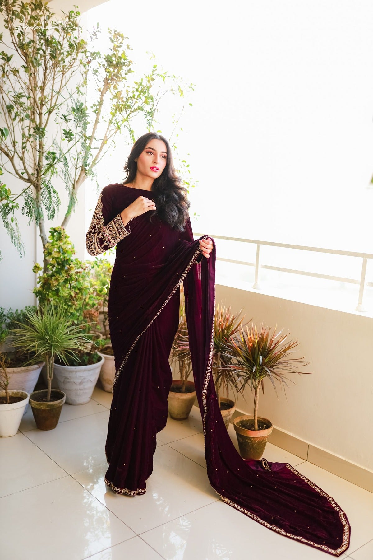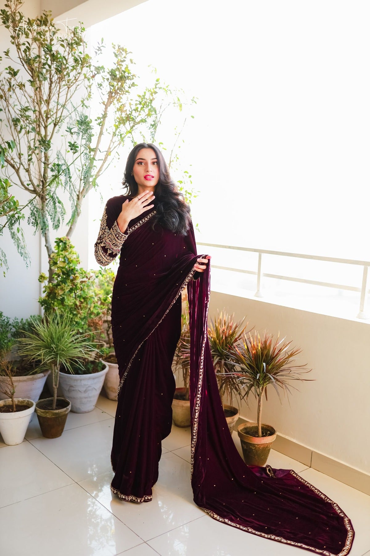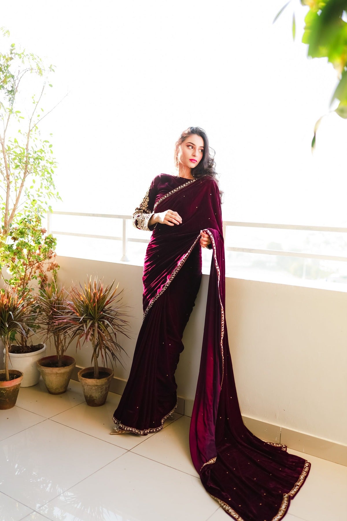 SAAD IBRAHIM | SAREES | SOLID PLUM VELVET SAREE