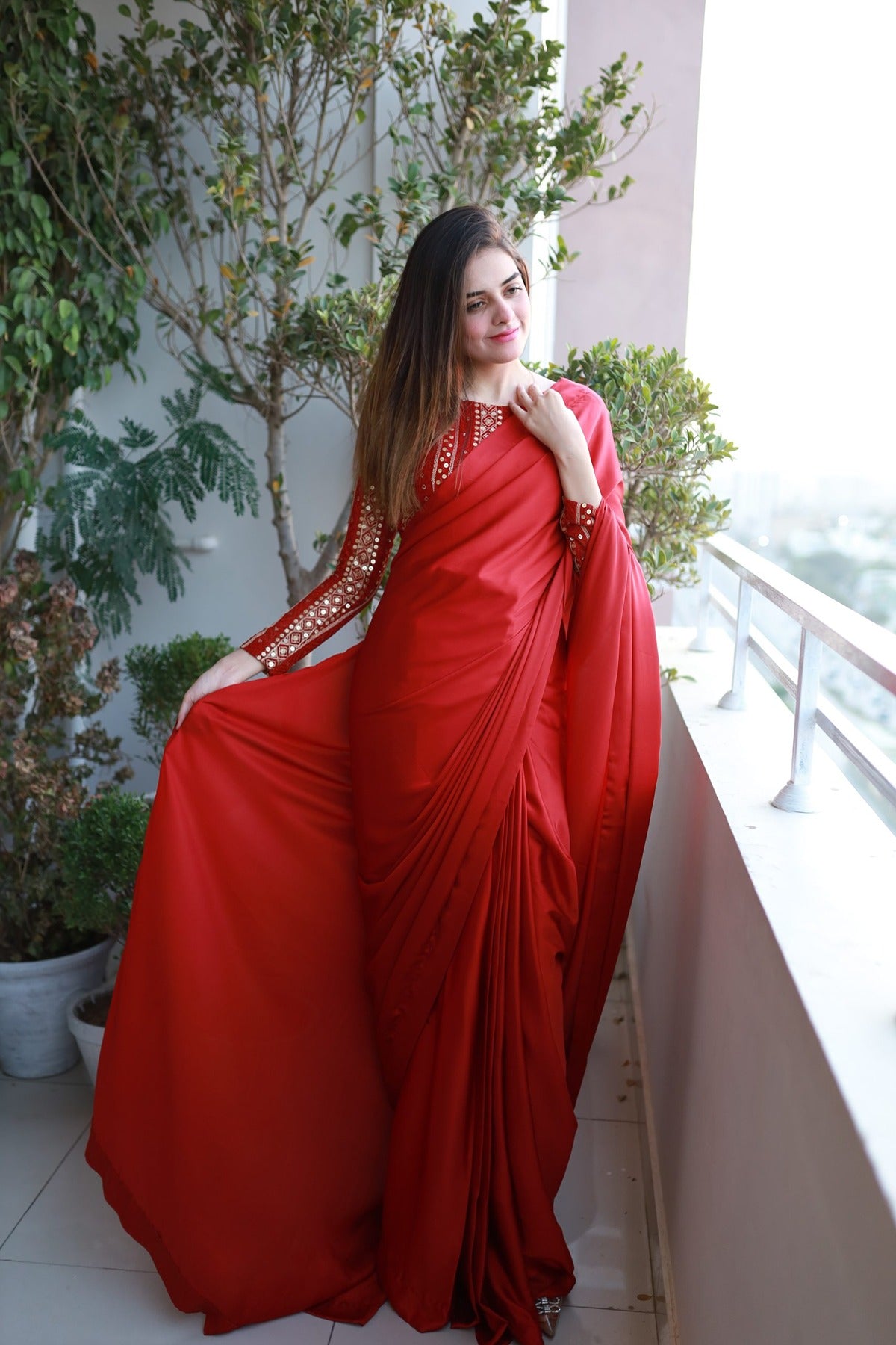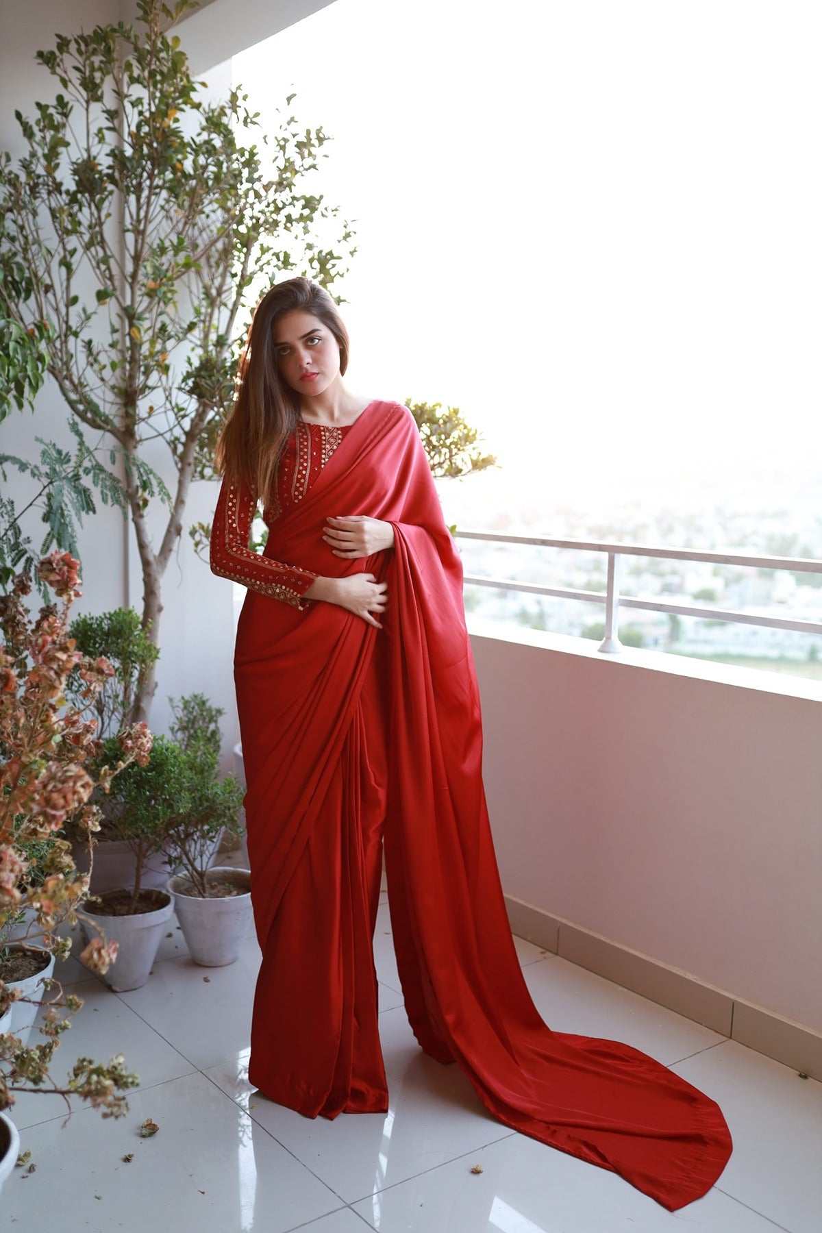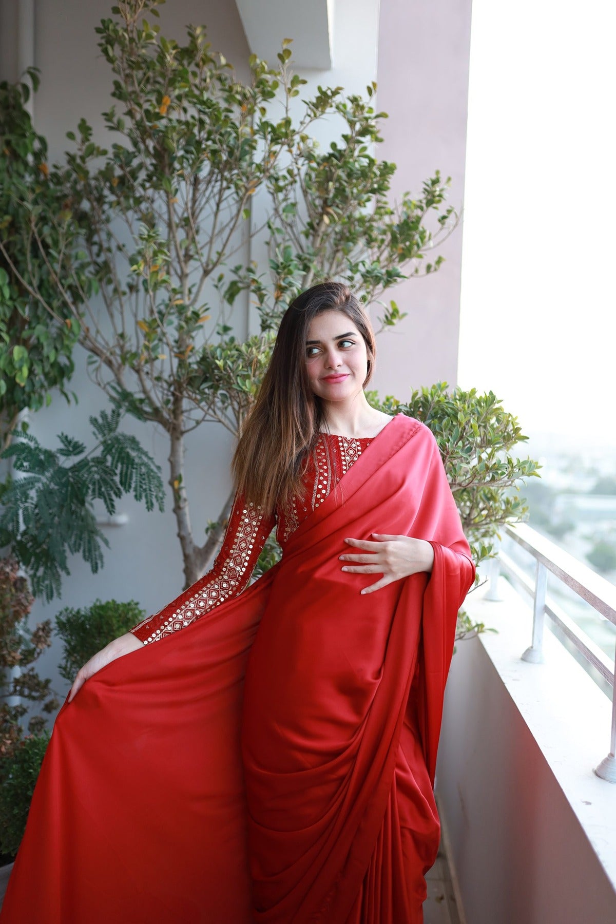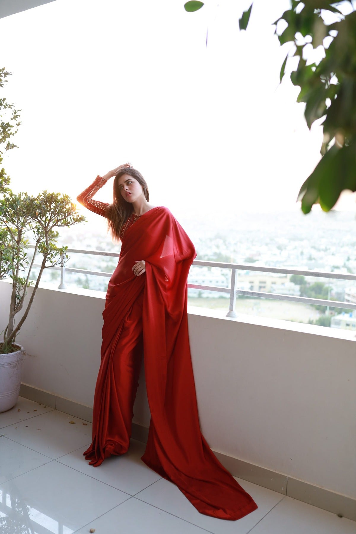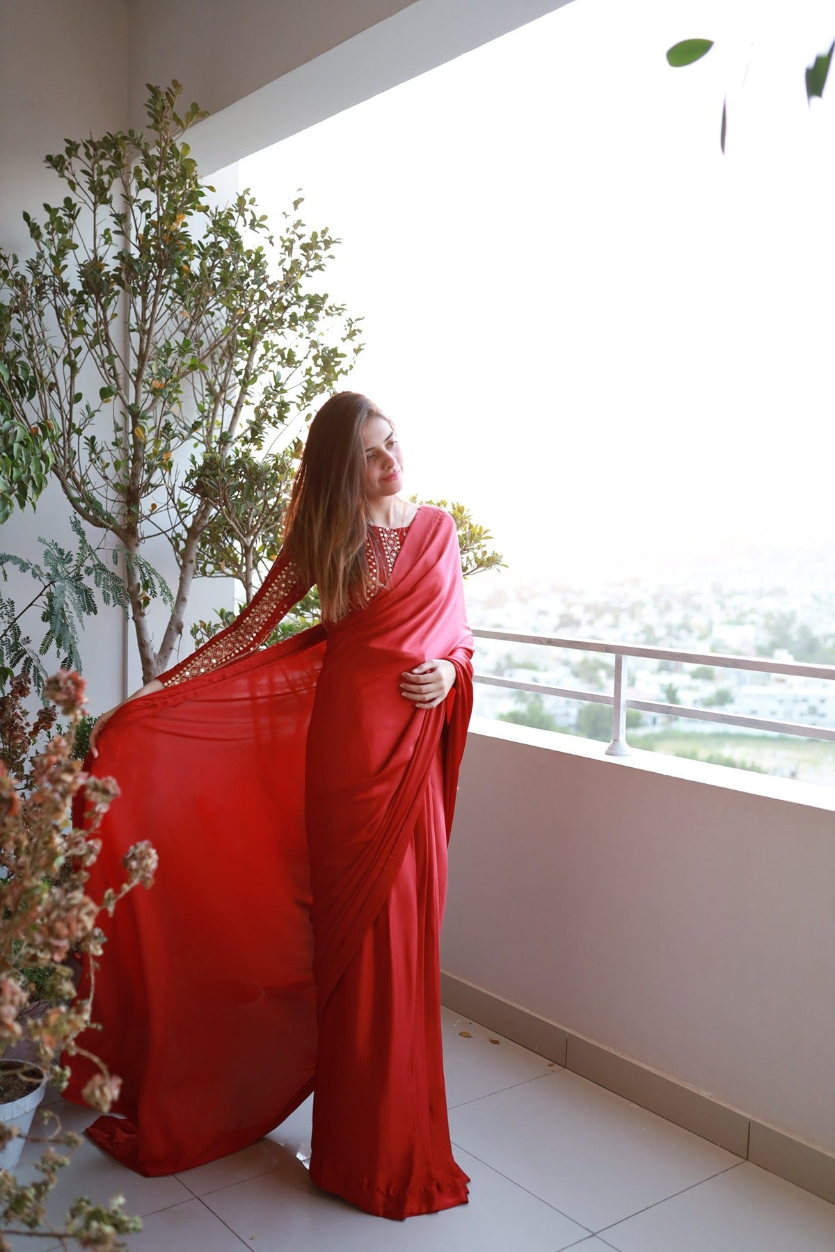 SAAD IBRAHIM | SAREES | SOLID RED SILK SAREE WITH CHIKANKARI BLOUSE