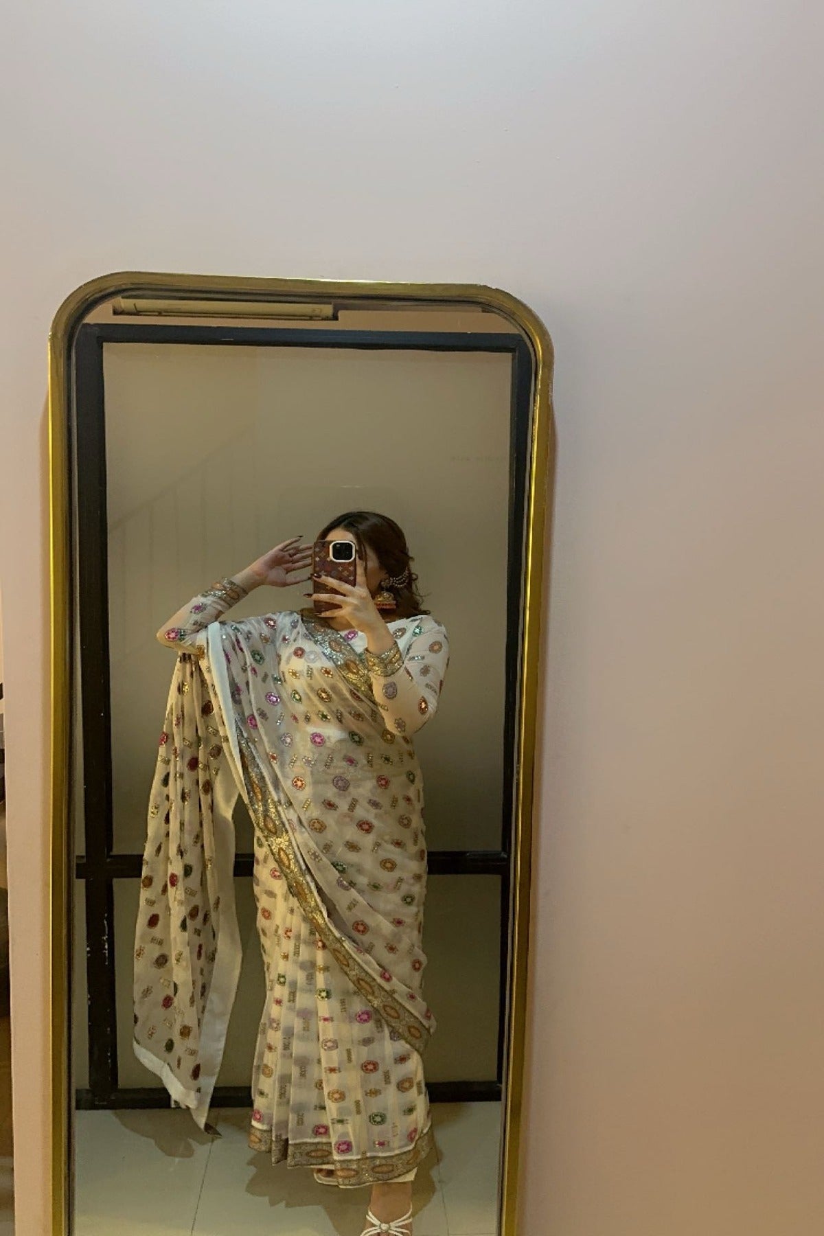 SAAD IBRAHIM | SAREES | SOLID WHITE INDIAN BANARSI SAREE